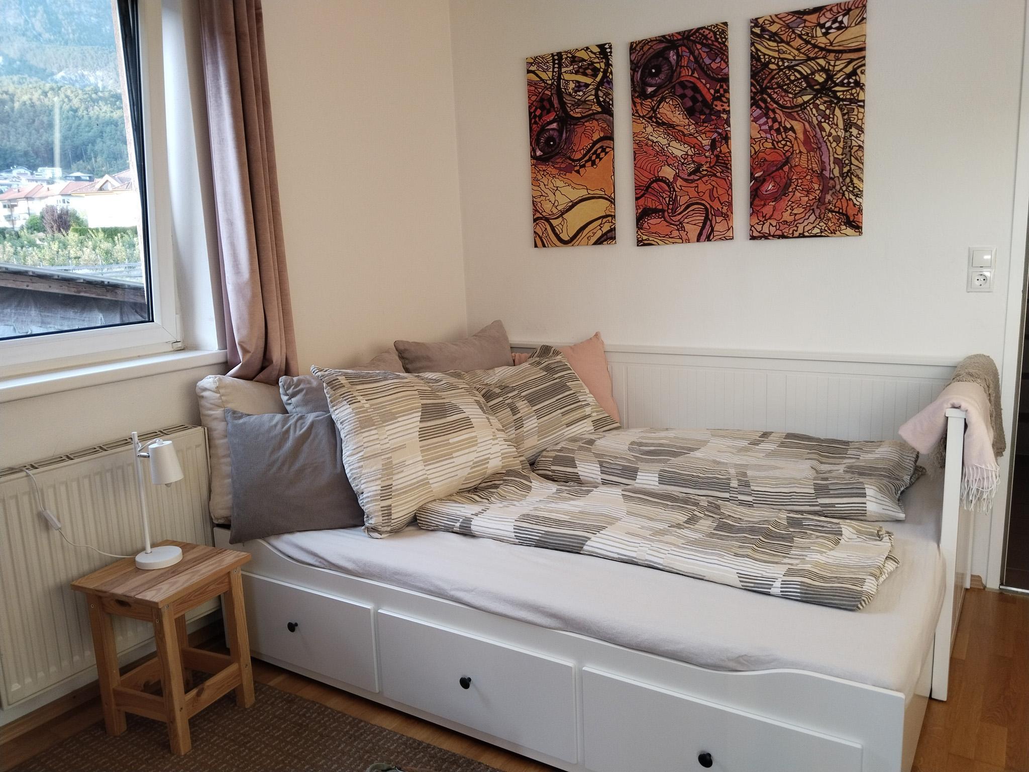 Das zentral in Telfs gelegene, charmante Eckreihenhaus bietet Platz für bis zu 10 Gäste. Im 1. Stock befinden sich 3 Schlafzimmer mit Doppelbetten und ausziehbaren Tagesbetten, während im 2. Stock ein großes Zimmer mit zwei Doppelbetten Platz für vier Personen bietet. Zwei Parkplätze direkt vor der Unterkunft sowie ein Babybay/Reisegitterbett, Schreibtische und WLAN stehen kostenlos zur Verfügung. Das Bad mit Badewanne, Waschmaschine sowie ein separates WC befinden sich ebenfalls im 1. Stock.