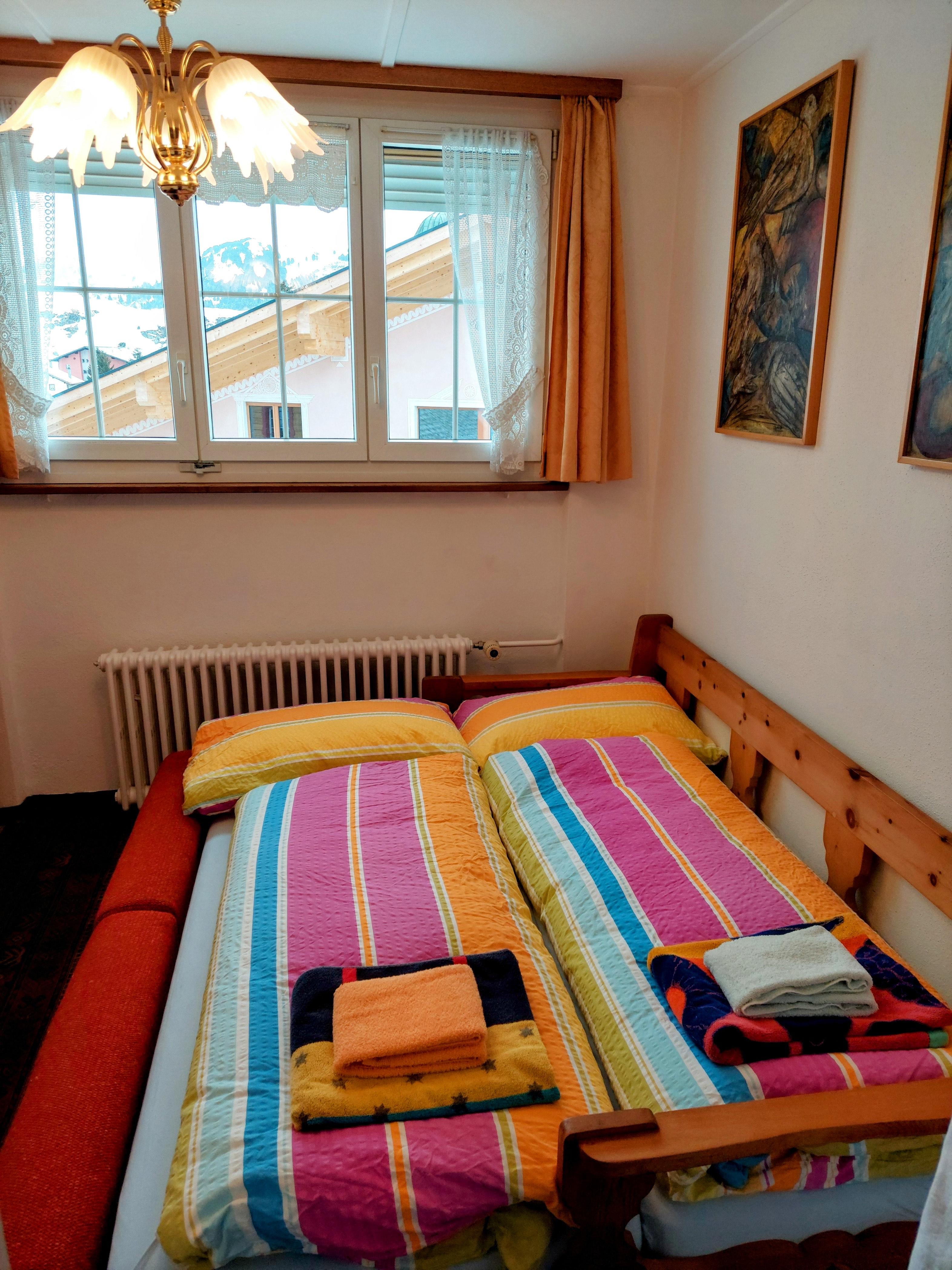 3-Zimmerwohnung ca. 52 m2. 2 Schlafzimmer mit 4 Einzelbetten. 1 Schlafsofa. Separate Wohn-Essküche mit Geschirrspüler, Backofen, Kühlschrank und Fondue-Rechaud. Dusche/WC. Fernseher. Telefon im Haus. Bettwäsche, Frottée- und Küchentücher vorhanden. Haustiere nicht erlaubt. Kinderbett mietbar. Zur Mitbenutzung: Skiraum. Öffentlicher Parkplatz. Unmittelbar beim Skilift.