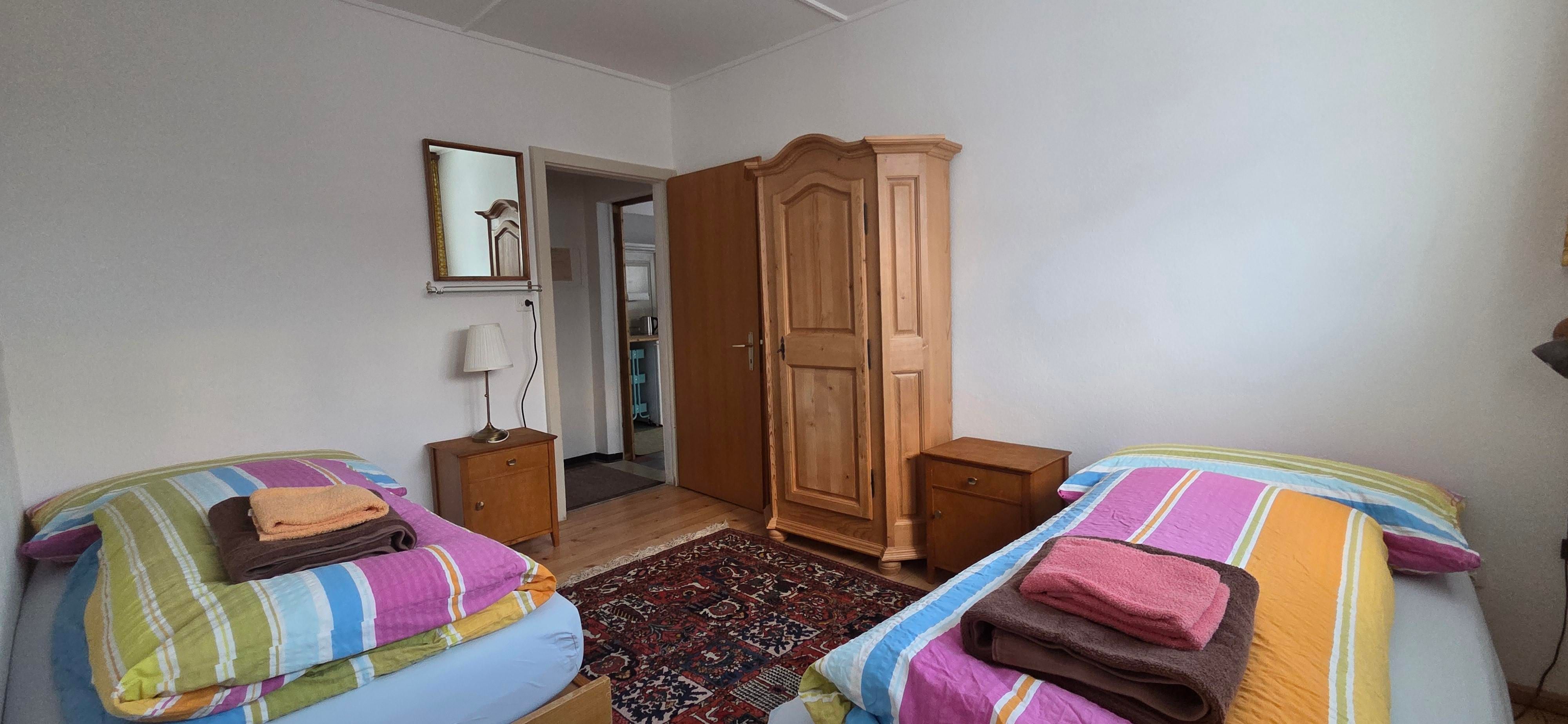 3-Zimmerwohnung ca. 52 m2. 2 Schlafzimmer mit 4 Einzelbetten. 1 Schlafsofa. Separate Wohn-Essküche mit Geschirrspüler, Backofen, Kühlschrank und Fondue-Rechaud. Dusche/WC. Fernseher. Telefon im Haus. Bettwäsche, Frottée- und Küchentücher vorhanden. Haustiere nicht erlaubt. Kinderbett mietbar. Zur Mitbenutzung: Skiraum. Öffentlicher Parkplatz. Unmittelbar beim Skilift.