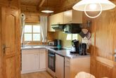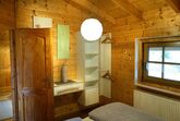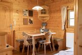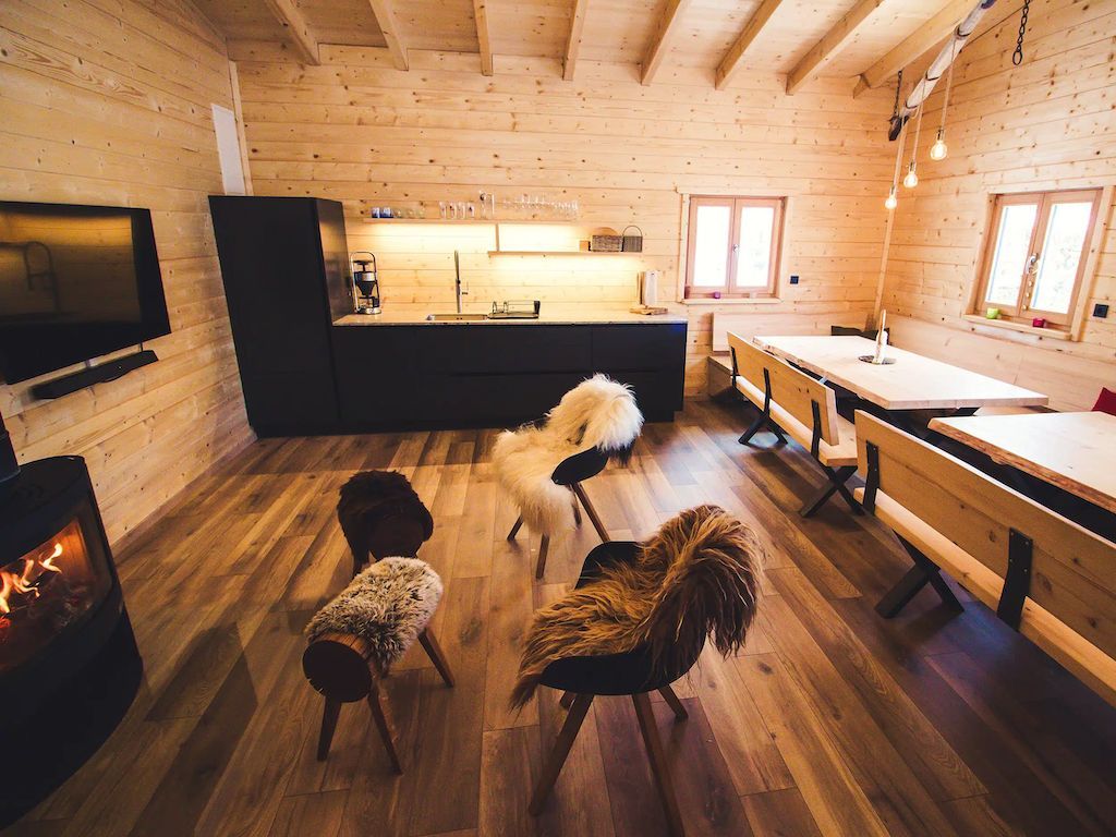 Zusätzlich buchbar: Separate Blockhütte mit finnischer Sauna, Infrarotkabine, Ruheraum mit Kaminofen sowie ein Aufenthaltsraum für befreundete Familien mit Küche, großen Tischen, Kaminofen und Smart-TV.