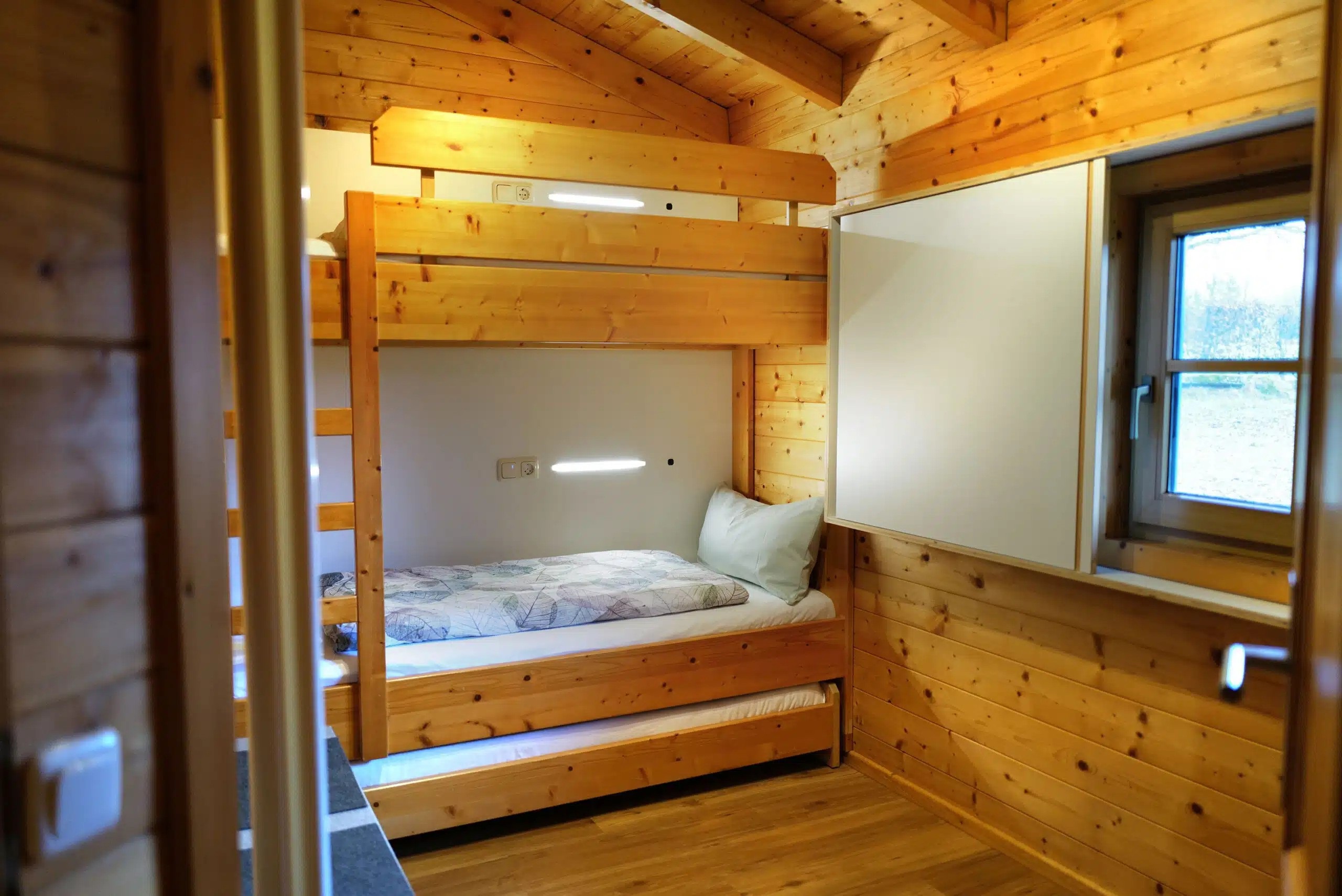 Das Holzhaus „Blumenwiese“ bietet einen wunderschönen Ausblick zur historischen Wallfahrtskirche Wollaberg eingerahmt von Blumenwiesen, Hecken, Obstbäumen und einem großen, eigenen Garten mit überdachter Terrasse der zum Frühstücken, Grillen und Sonnen einlädt. Optimale Belegung: Zwei Erwachsene und zwei Kinder. Auf 50qm Wohnfläche erwartet euch: Zwei getrennte Schlafzimmer: Elternschlafzimmer (Größe Bett 200x200cm) sowie ein Kinderzimmer mit Stockbett (Größe der Kinderbetten jeweils 80x180 cm). Gemütliche Wohnküche mit allen Annehmlichkeiten. Bad mit ebenerdiger Dusche. Die Holzbauweise hat ein ausgleichendes Wohnklima: im Sommer kühlend und im Winter kuschelig warm.