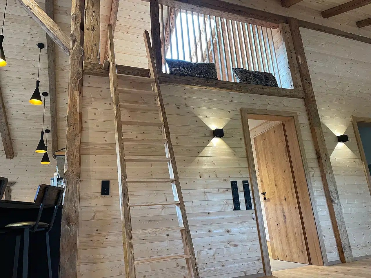 Urlaub. Kuschelboden mit Dachfenster ist über eine wegklappbare Leiter