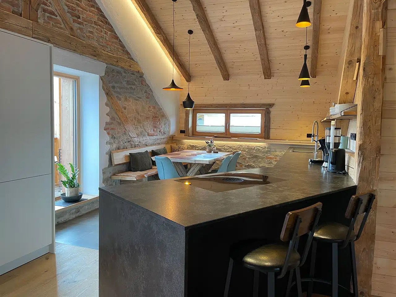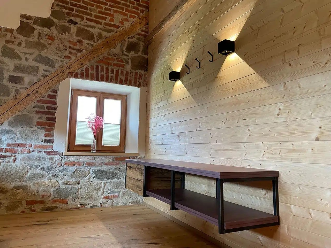 Uriges, saniertes Bauernhaus mit viel Liebe eingerichtet, eigener Eingang - 1. Stock; es befinden sich KEINE weiteren Wohneinheiten in diesem Gebäude. Ein geräumiger und überdachter Balkon in Südausrichtung überblickt den Hof und die weiten Wiesen. Die zusätzliche Terrasse davor kann zum Grillen und Relaxen genutzt werden.