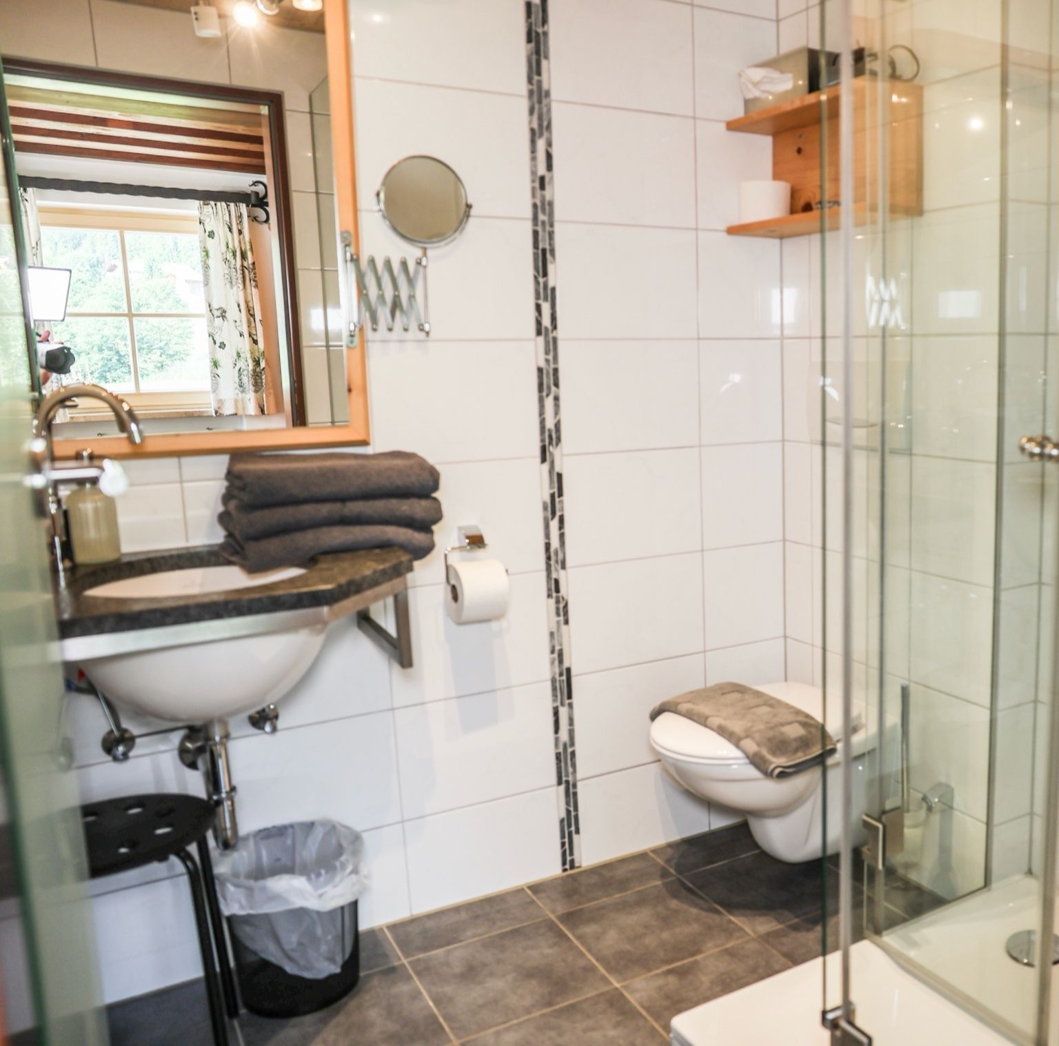Das Zimmer verfügt über ein Bad mit Dusche und WC sowie kostenloses WLAN.