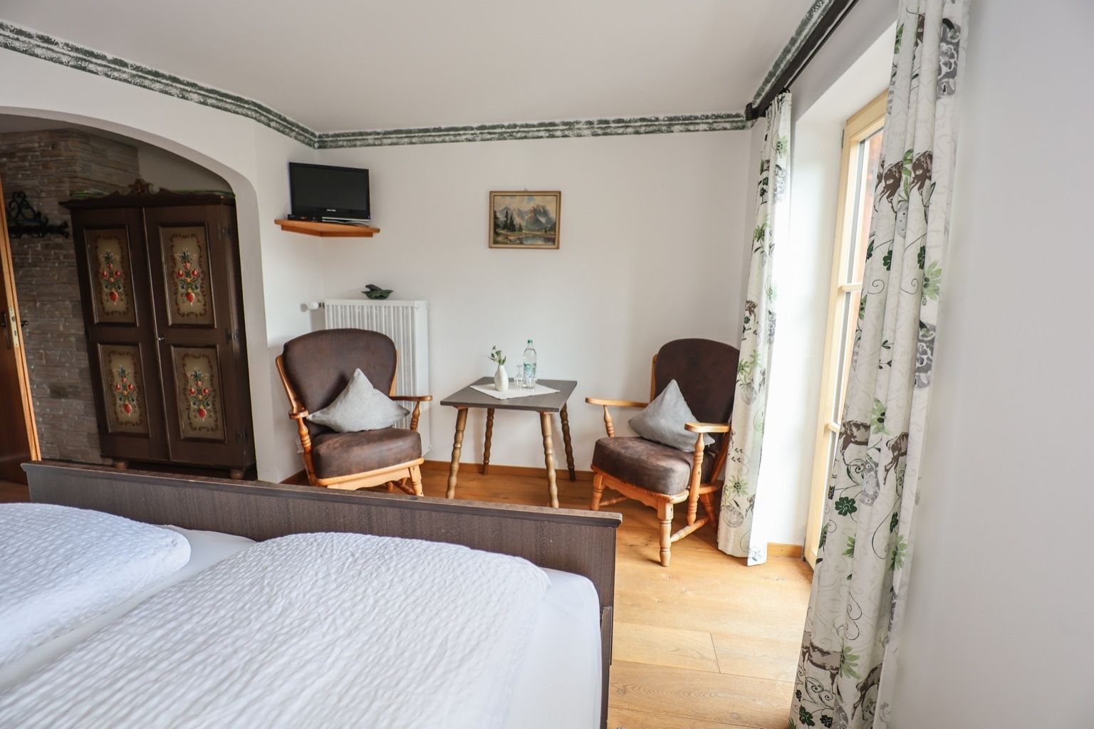 Unsere gemütlichen Zimmer sind liebevoll ausgestattet mit eigenem Bad, WLAN - und vom Balkon aus erwartes Sie ein traumhafter Blick in die Berge.