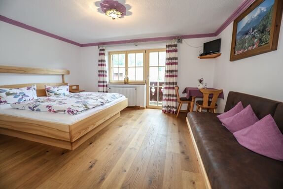 Gemütliches Doppelzimmer mit Balkon und herrlichem Bergblick.