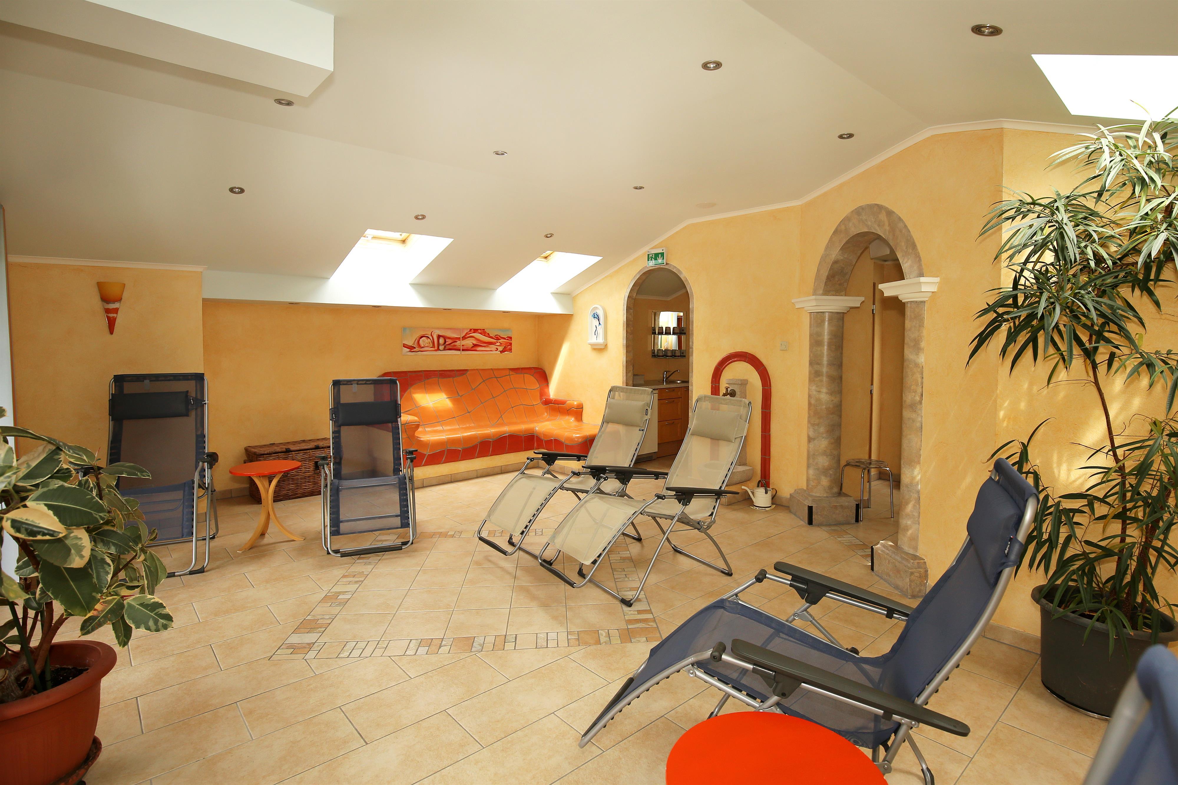 Zum Loslassen können Sie unseren Wellnessbereich nutzen. Hier haben Sie im Winter drei Mal in der Woche die Möglichkeit, im Ruheraum, in der finnischen Sauna, in der Infrarotkabine, im Dampfbad, auf der Wärmebank oder unter der Grottendusche auszuspannen. Im Sommer NICHT in Betrieb.