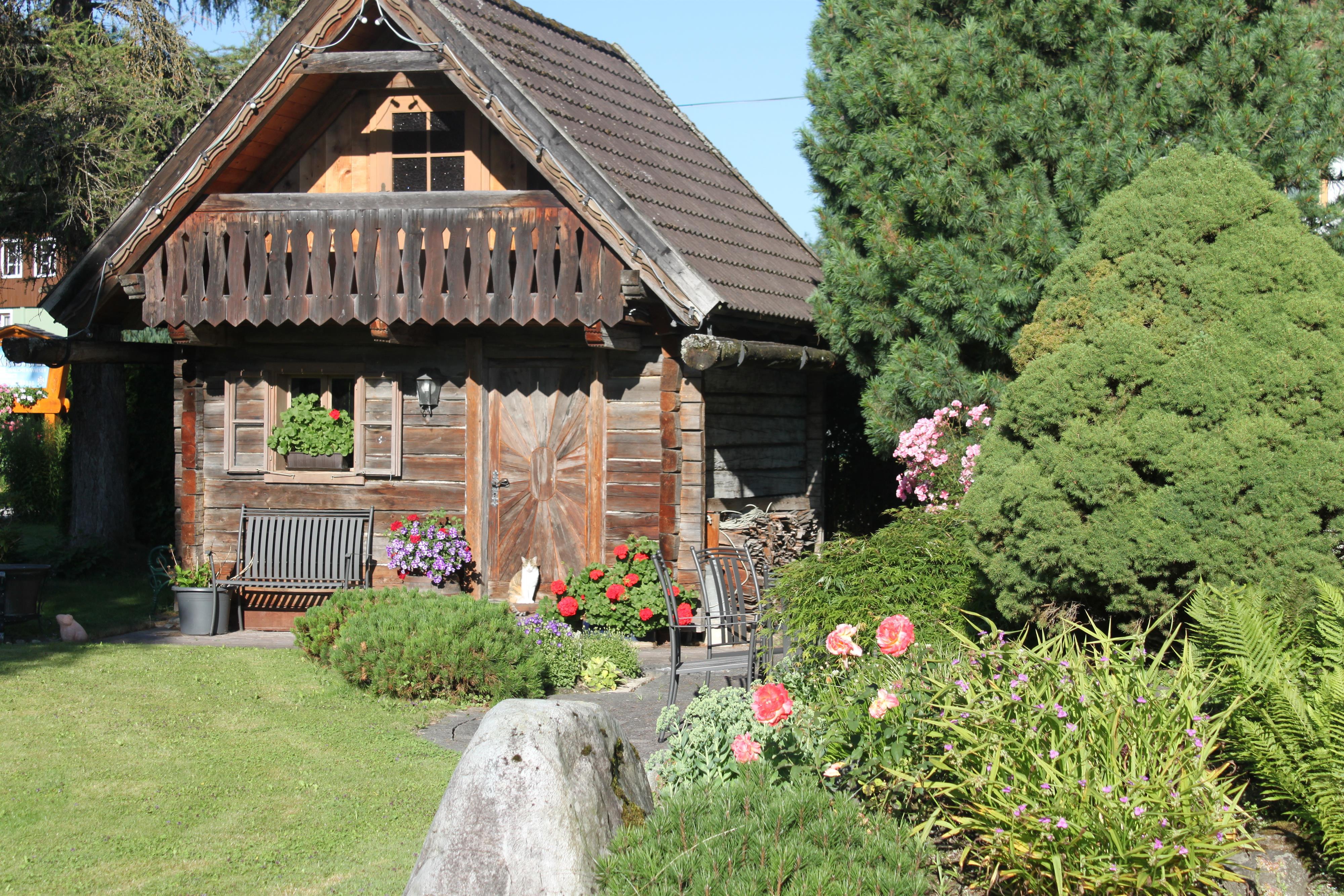 Natürlich können Sie auch auf unserer Liegewiese entspannen oder sich vor unserem Gartenhaus sonnen.