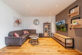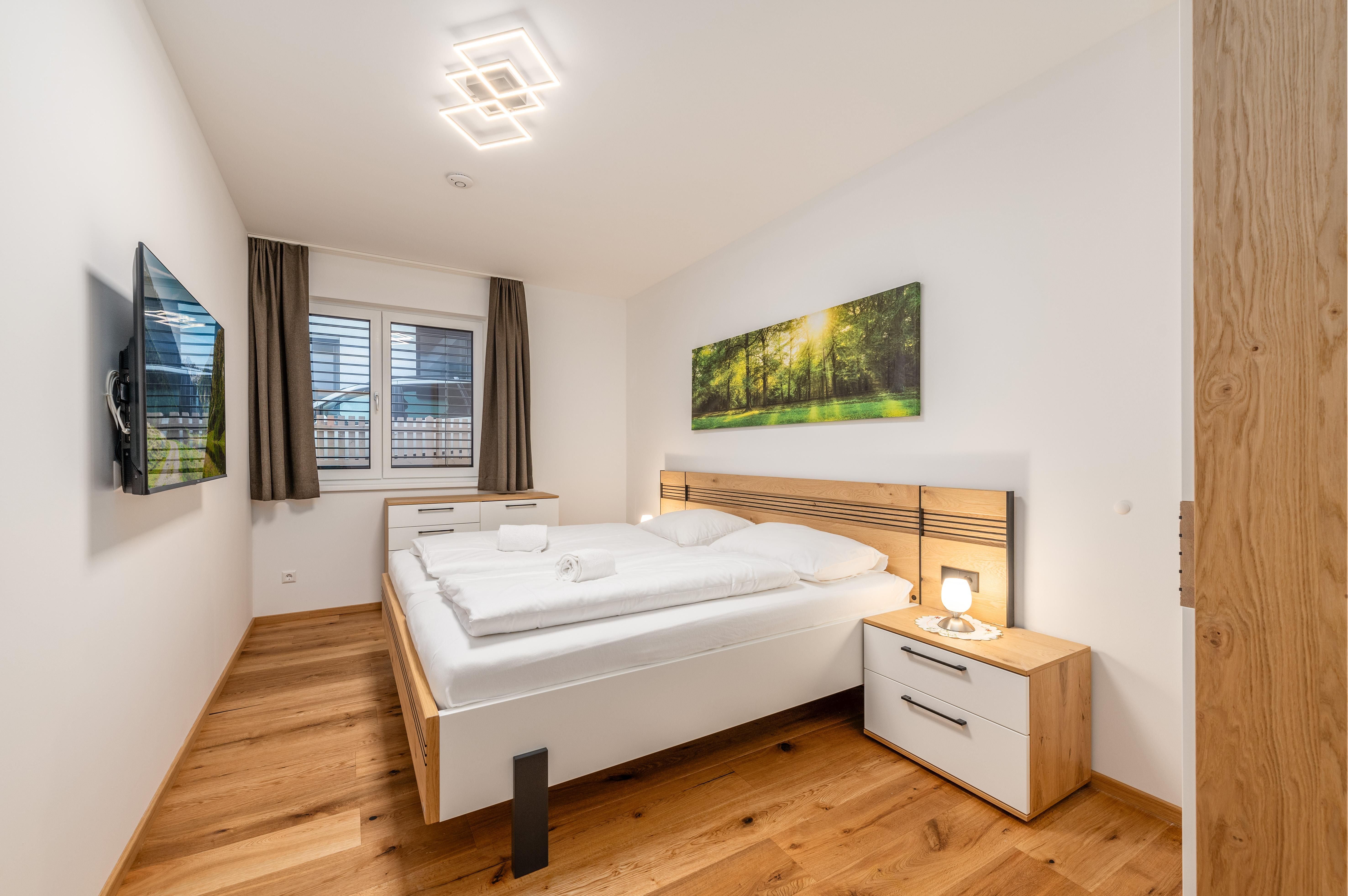Das stilvoll eingerichtete Appartement mit 2 Schlafzimmern mit je einem Doppelbett sowie einer Couch im Wohnzimmer, bietet ingesamt Platz für bis zu sechs Personen. Jedes Zimmer verfügt über einen Smart-TV. Das großzügige Badezimmer ist ausgestattet mit einer großen Dusche und Doppelwaschbecken – ideal für Paare oder Familien.