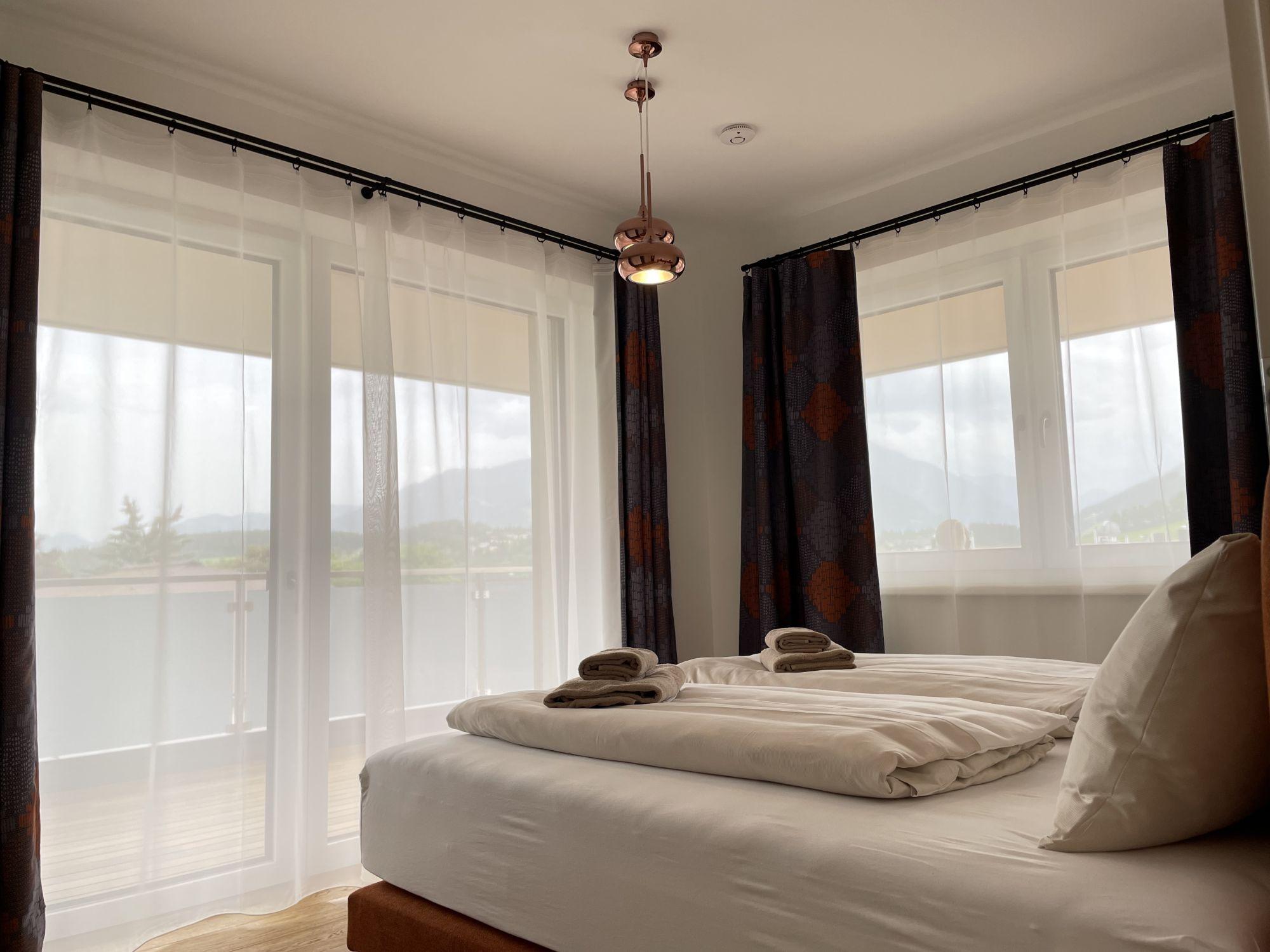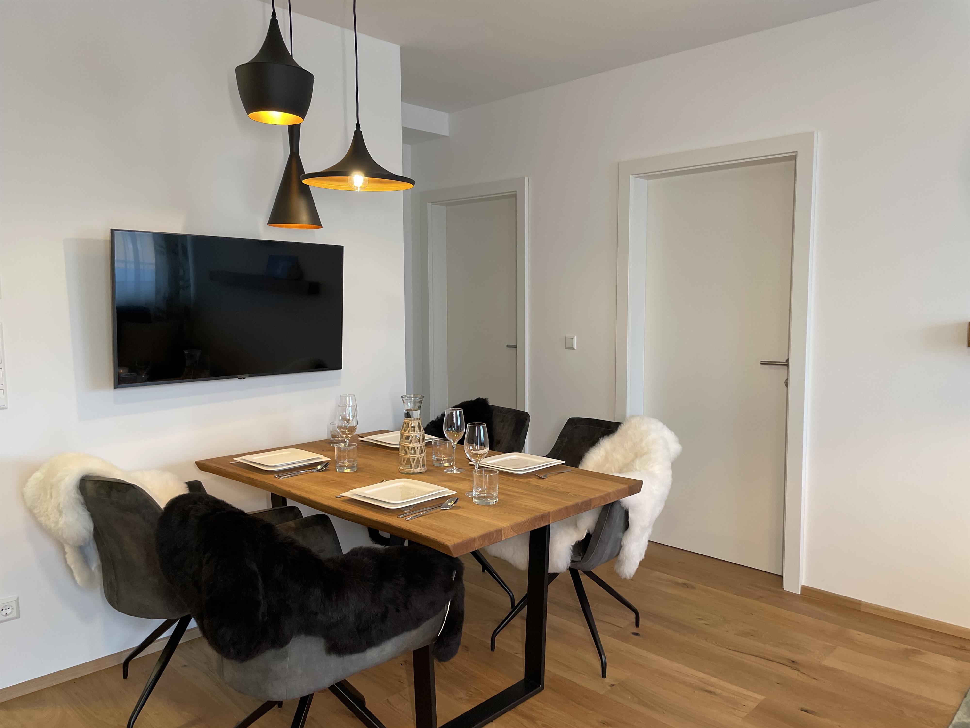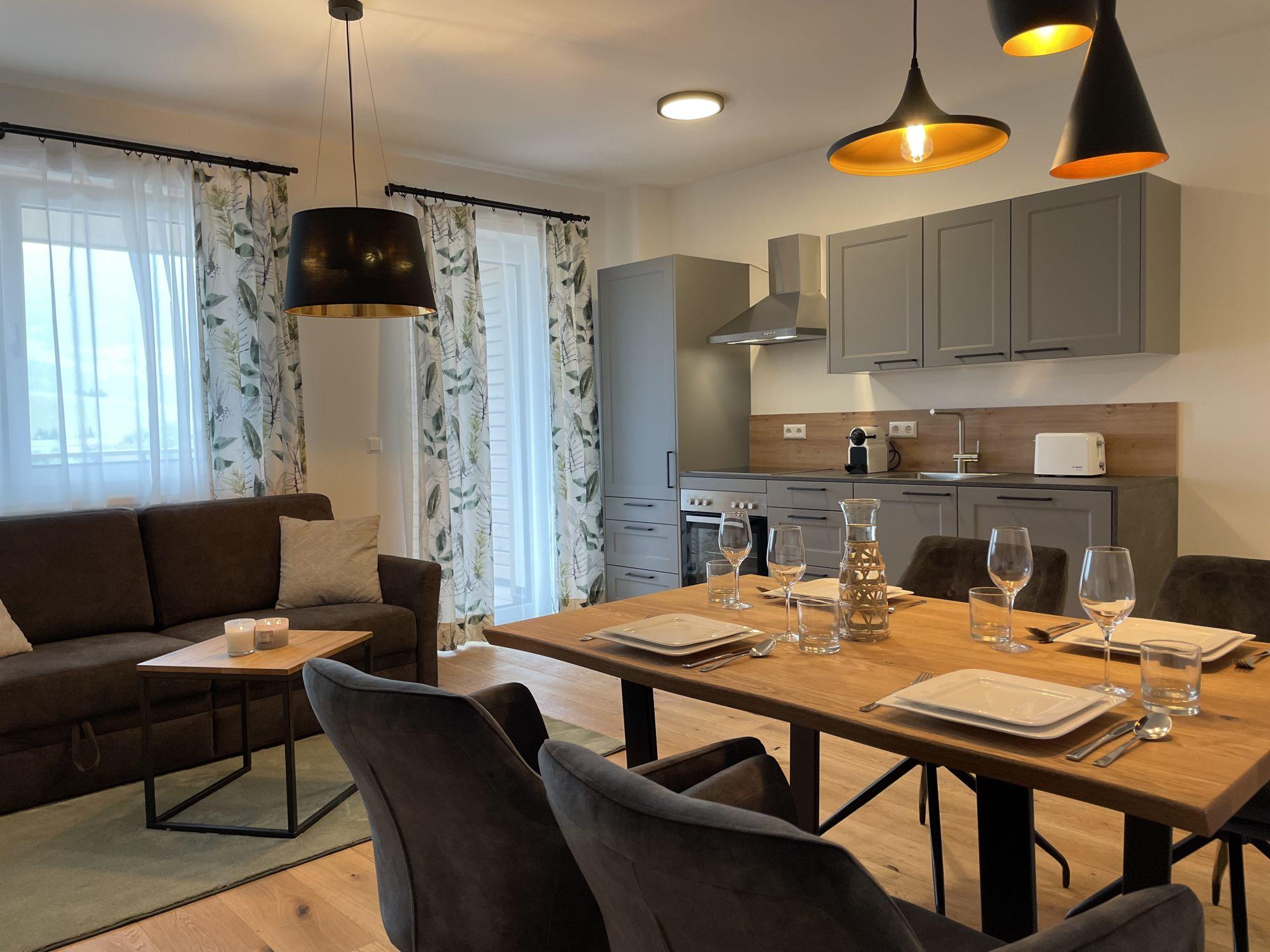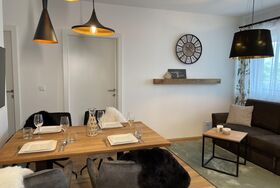 Mit seinem rustikal modernen Charme biete das Apartment eine gemütliche entspannende Atmosphäre. Einen wunderschönen Ausblick auf die Berge haben sie auf der großzügigen Terrasse.
