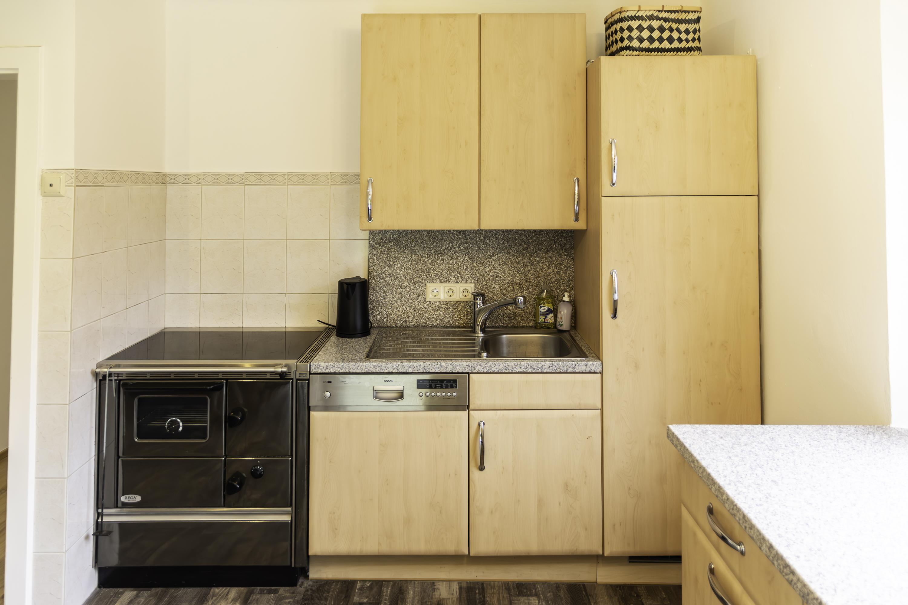 Unsere 90 m² großes Apartment 1 im Obergeschoss bietet Platz für bis zu 6 Personen. Es verfügt über 3 getrennte Schlafzimmer (jeweils mit Flat-TV) und eine voll ausgestattete Küche mit gemütlicher Essecke. Zwei der Schlafzimmer befinden sich auf einer Ebene, das dritte Schlafzimmer erreicht man über eine Treppe. Die Wohnung verfügt außerdem über ein Badezimmer mit großer Dusche und Blick auf das Dachstein-Massiv. Das WC ist separat. Der kleine Balkon mit Sitzgelegenheit, erreichbar über die Küche, bietet einen Blick in unseren schönen Garten.