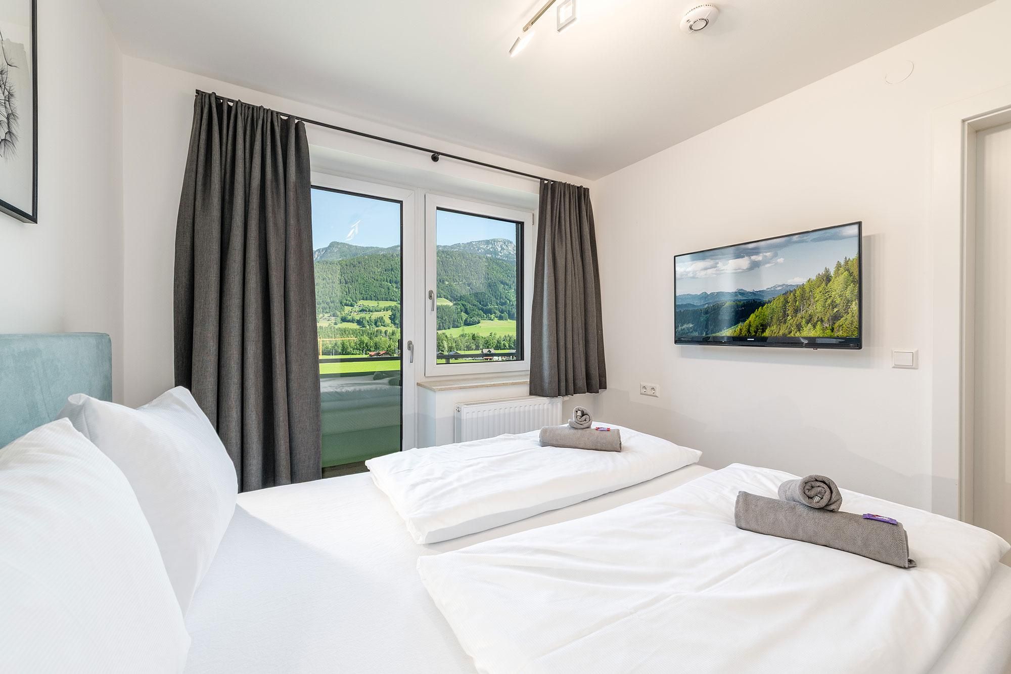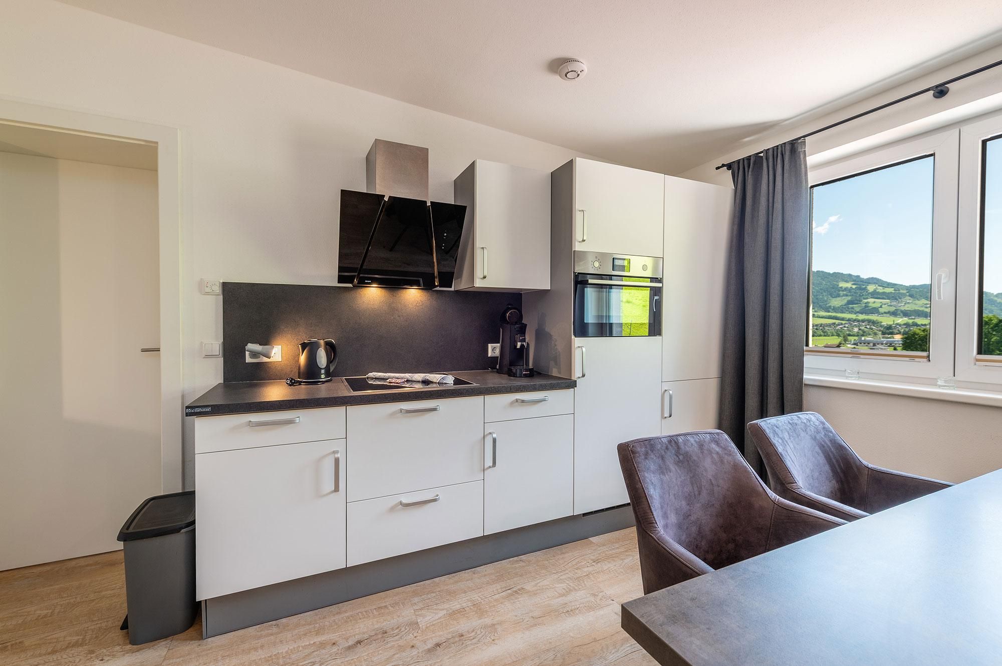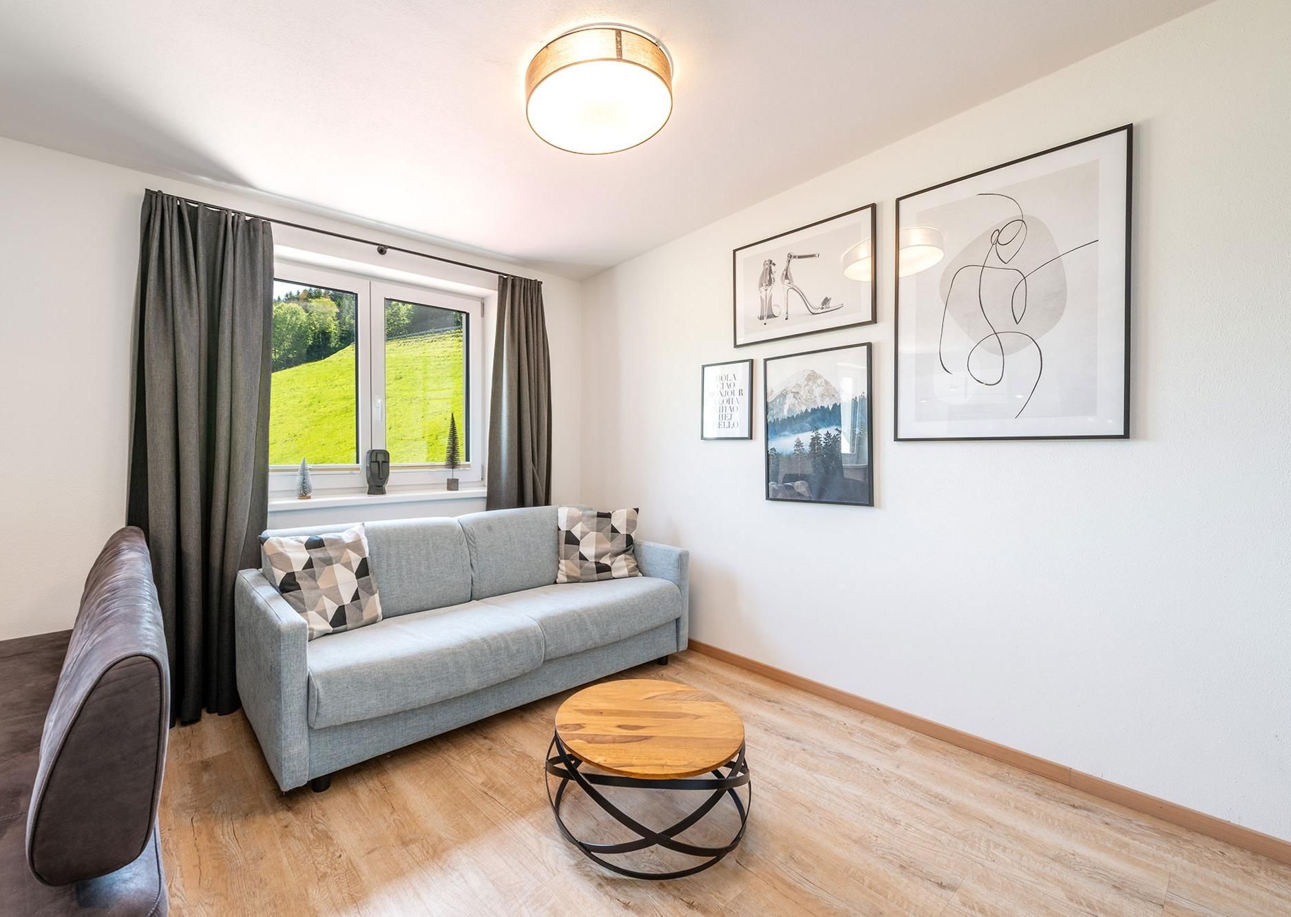 Unser 70 m² großes Mountain Love Appartement I im 1. OG bietet Ihnen einen großen Wohn-/Essraum mit voll eingerichteter Küche, ein Badezimmer mit Dusche sowie ein separates WC. Die Ferienwohnung verfügt über zwei getrennte Schlafzimmer mit Doppelbett, sowie einer hochwertigen Schlafcouch mit inkludierter Matratze für zwei weitere Personen. Für Ihr Baby oder Kleinkind stellen wir gerne ein Bettchen kostenlos zur Verfügung!