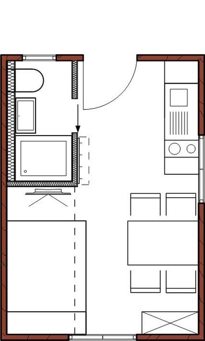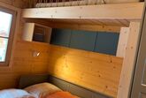 Unser kuscheliges Appartement 3 ist besonders gut geeignet für 2 Erwachsene und 1 Kind. Der Wohn-Schlafbereich verfügt über eine vollausgestattete Küchenzeile, einen Essbereich sowie ein Doppelbett, Bad mit Dusche und WC. Das Tüpfelchen auf dem „i“ ist jedoch das Hochbett über dem Doppelbett, das besonders bei Kindern sehr beliebt ist.Raumaufteilung: Gemütliches Wohn-Schlafraum-Appartement mit komfortabler und gut ausgestatteter Küchenzeile, Esstisch sowie einem Doppelbett mit Hochbett für eine weitere Person. Bad mit Dusche und WC. Sat-TV mit Netflix und gratis W-Lan.