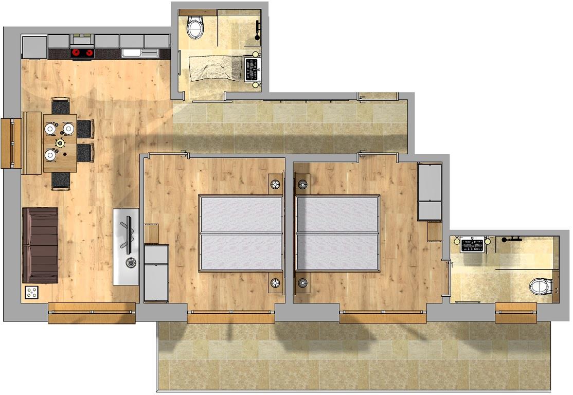 In der Ferienwohnung befinden sich 2 Doppelschlafzimmer mit je einem Bad. Komplett ausgestattete Küche mit hochwertigen Elektrogeräten - Backrohr, Herd, Kühlschrank mit Tiefkühlfach, Spülmaschine, Nespresso-Kaffeemaschine und Wasserkocher. TV in jedem Schlafzimmer und in der Küche. Gratis W-Lan.