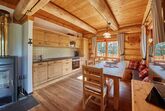gemütliche Wohnküche mit Schwedenofen, Backofen, Elektroherd, Geschirrspüler, Kaffeemaschine, Kühlschrank mit Gefrierfach, Mikrowellenherd, Mixer, Toaster sowie Wasserkocher