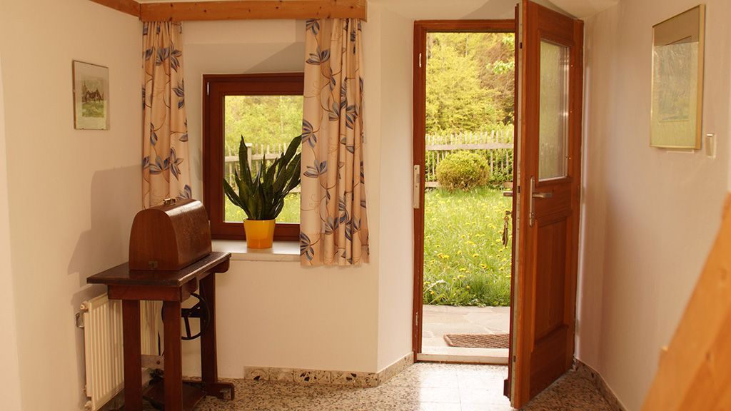 Die alten Steinmauern des Hauses kühlen herrlich an heißen Sommertagen. Das Appartement ist in einem geschmackvollen Landhausstiel eingerichtet. Es verfügt in den Wohnräumen über geölte Holzböden und Fliesenböden in den restlichen Räumlichkeiten. Die traditionelle Raumhöhe von 2 m ist Bestandteil der bäuerlichen Bauweise.