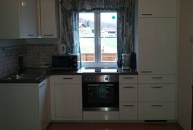 Diese große Ferienwohnung bietet eine voll ausgestattete Küche mit einem Geschirrspüler, Mikrowelle, 2 Schlafzimmer, zwei Duschen, WC sowie einen Balkon mit Bergblick. WLAN steht kostenfrei zur Verfügung.