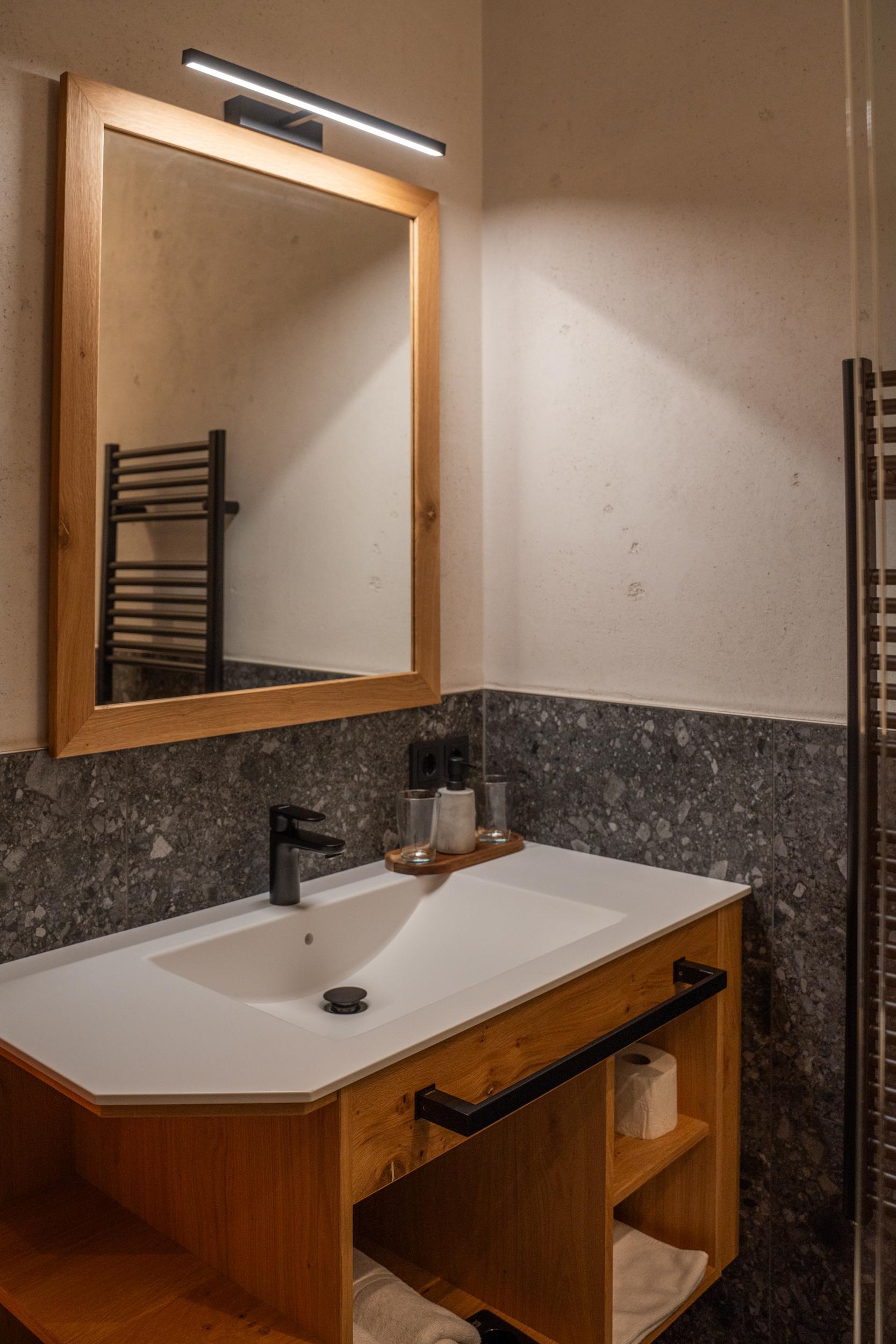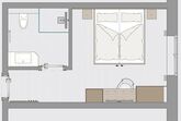 Genießen Sie zu zweit das großzügige Schlafzimmer mit Doppelbett und fühlen Sie sich im schönen Bad mit Dusche und Waschtisch rundum wohl.