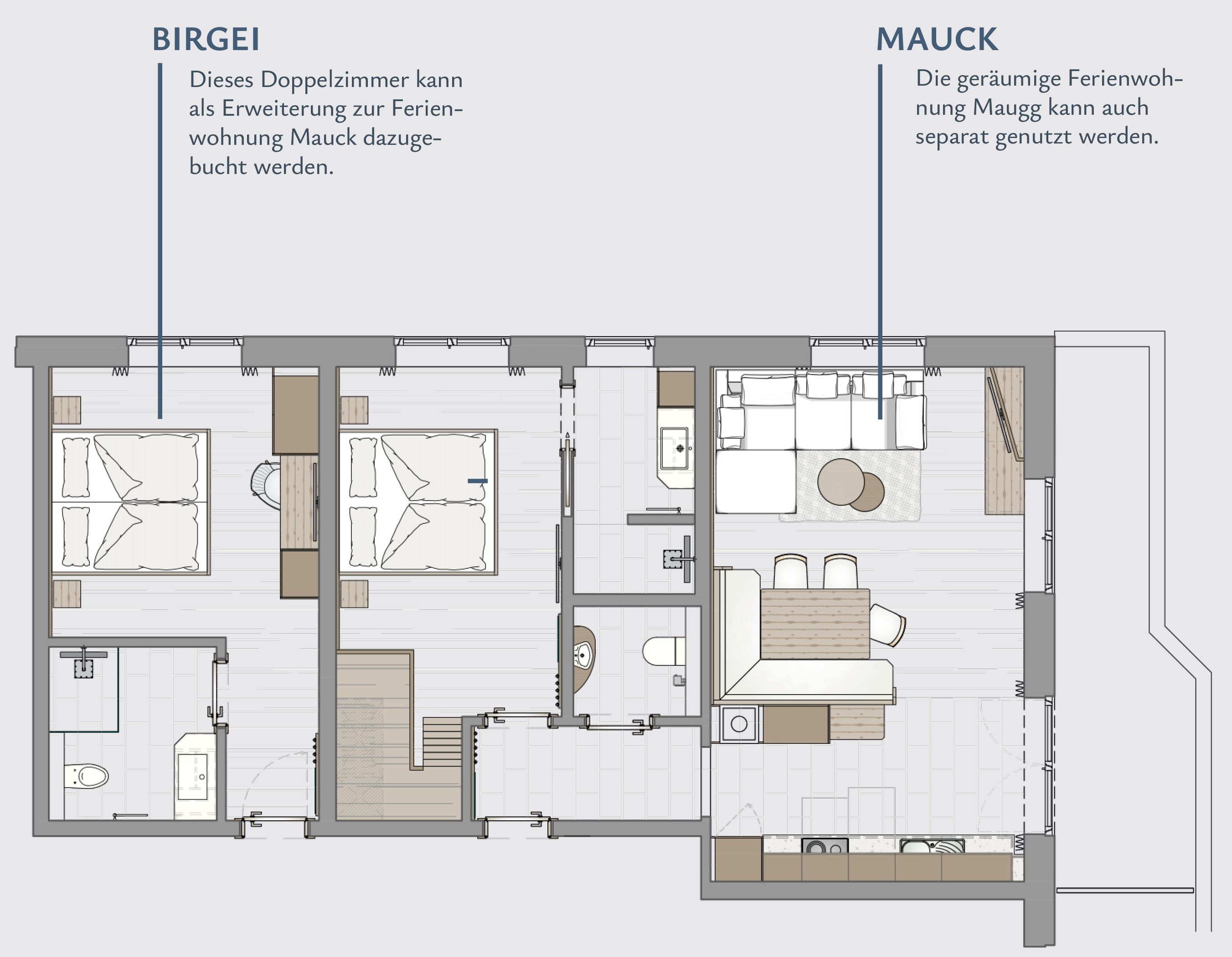 Dieses Zimmer ist für bis zu 4 Personen durch Erweiterungen mit Wohnung Mauk möglich. Sprechen Sie uns gerne an.