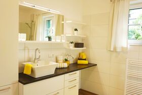 1 Ferienwohnung mit 75 m²: wie oben nur ein Schlafzimmer, eigener Hauseingang, Terrasse mit eigenem Garten
