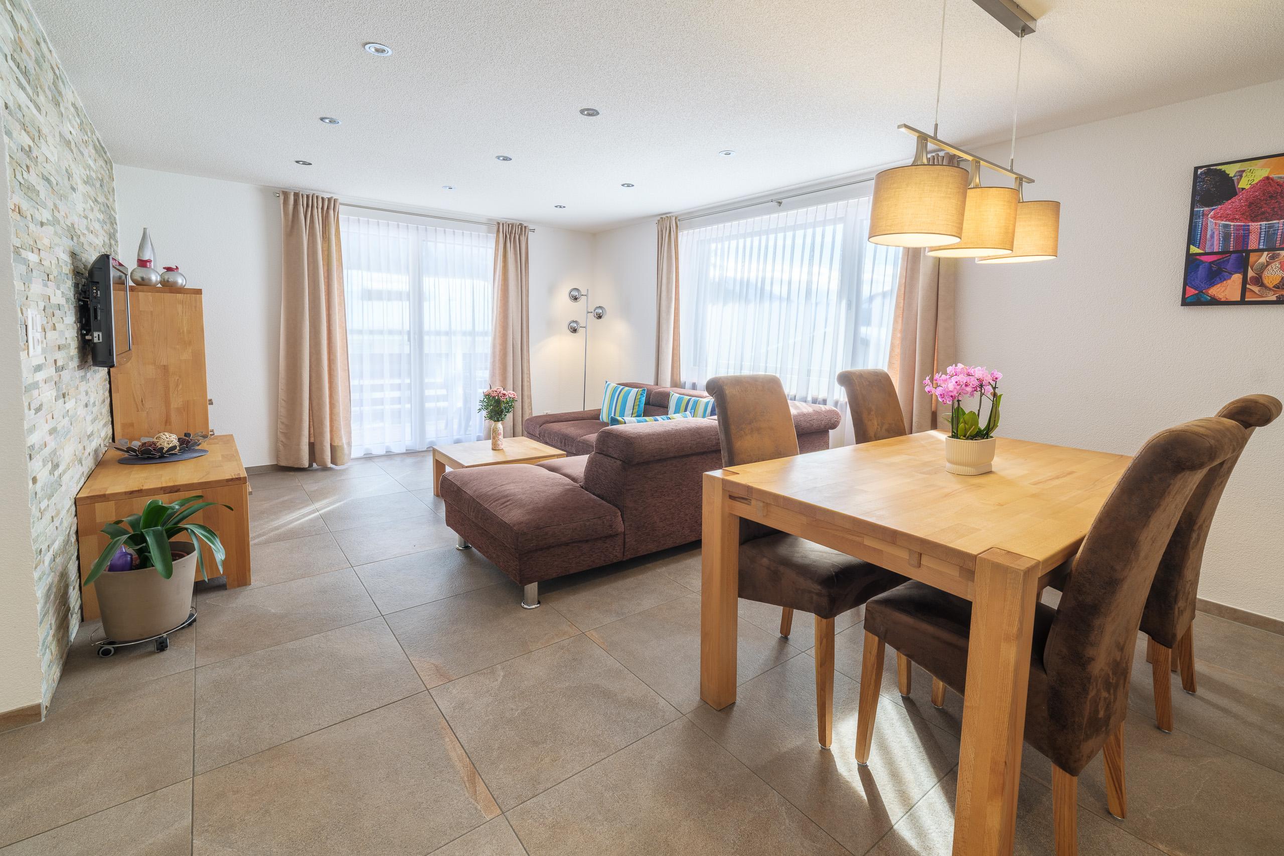 Die familienfreundlichen 1-Zimmer- bis 3-Zimmerwohnungen sind modern und komfortabel ausgestattet. Gratis WiFi im ganzen Haus verfügbar. Garage / Aussenparkplatz vorhanden. Ihre gemütliche Ferienadresse an ruhiger Lage mit garantiertem Wohlfühl- und Erholungsfaktor. Ausgangspunkt für etliche Wander- und Bikerouten. In nächster Nähe: Haltestelle Ortsbus (Ring-Jet), Talstation Gemmi-Bahnen, Snowpark mit Kinderparadies & Sportzentrum Sportarena. Thermalbäder, Dorfzentrum sowie Einkaufsläden in 10 Min. Fussweg erreichbar.