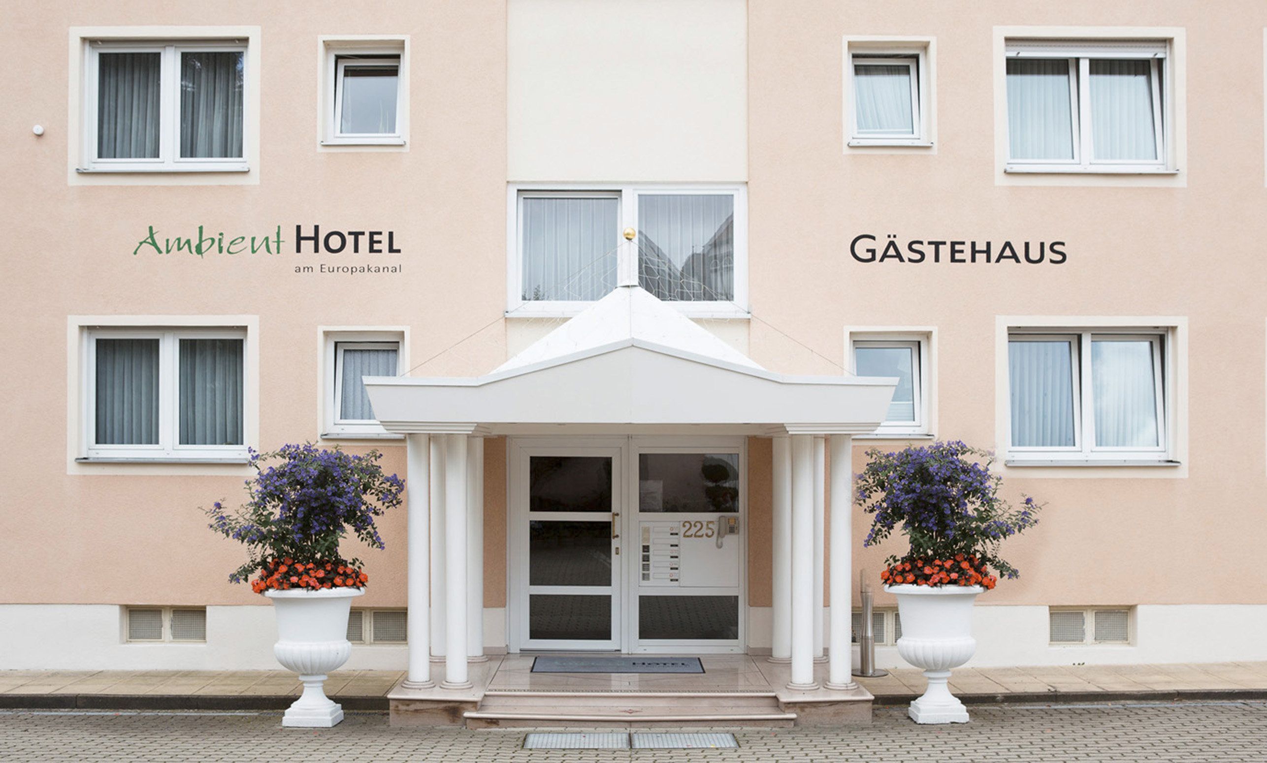 Ihr Wohlfühl-Hotel inmitten in der Metropolregion Nürnberg · Fürth · Erlangen. Das Ambient Hotel am Europakanal mit einem stilvollen und außergewöhnlichen Ambiente liegt in einer angenehm ruhigen und dennoch verkehrsgünstiger Lage. Das Hotel bietet verschiedene Zimmerkategorien, Appartements und Suiten verteilt auf unser Haupt- und Nebengebäude, welches sich direkt auf der gegenüberliegenden Straßenseite befindet. Es gibt Themenzimmer wie Hochzeit, Toskana, Safari und Ferrari. Sowie Zimmer für Allergiker und 1 Rollstuhlfahrer-freundliches Zimmer. Für E-Fahrzeuge stehen 2 E-Ladestationen zur Verfügung ( bitte bei Buchung anmelden). Parkplätze stehen den Gästen kostenfrei zur Verfügung.