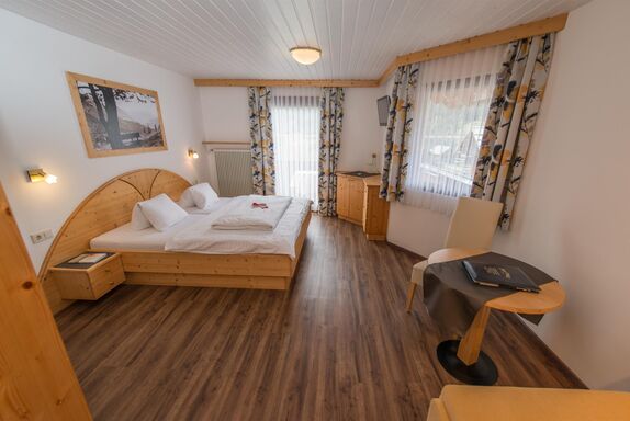 Schönes großes Doppelzimmer mit Frühstücksbuffet, Sitzecke, Naturholzmöbel mit liebe zum Detail, Balkon mit Blick über den Weissensee. (auch als Dreibettzimmer möglich) Dusche WC getrennt, Föhn, Sat-TV, Radiowecker, Tresor