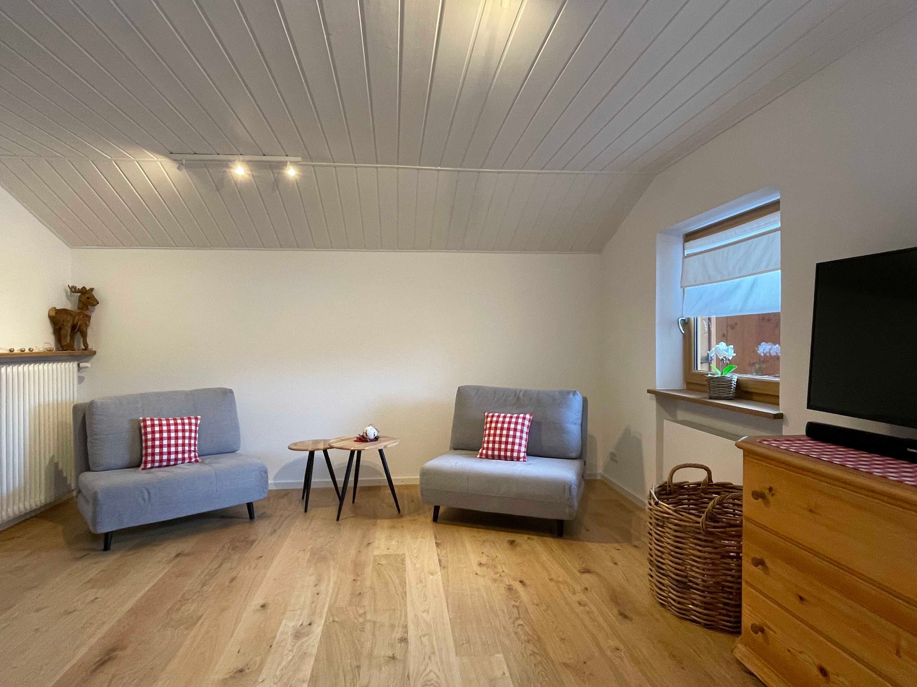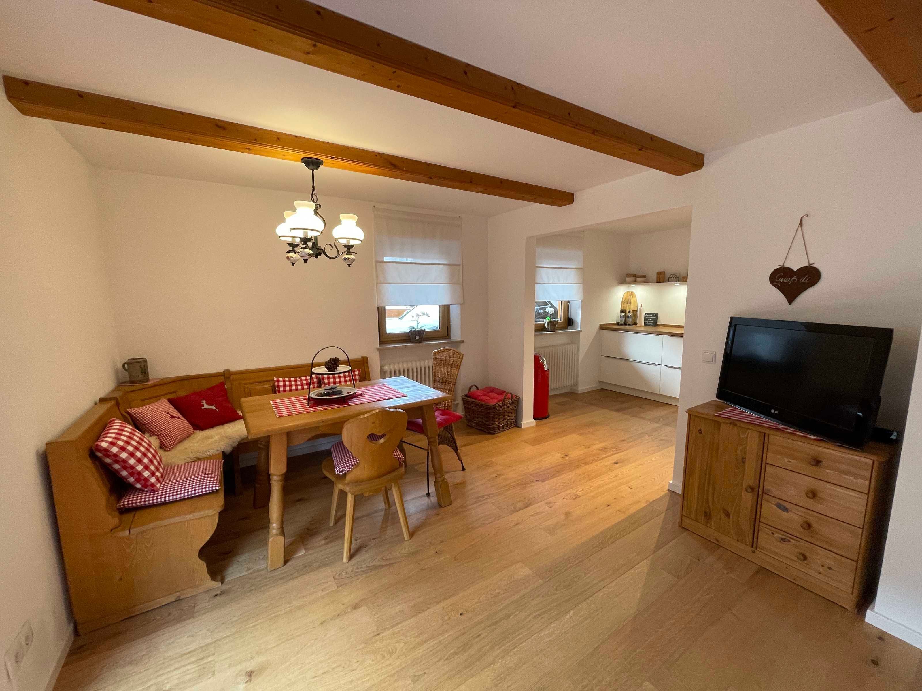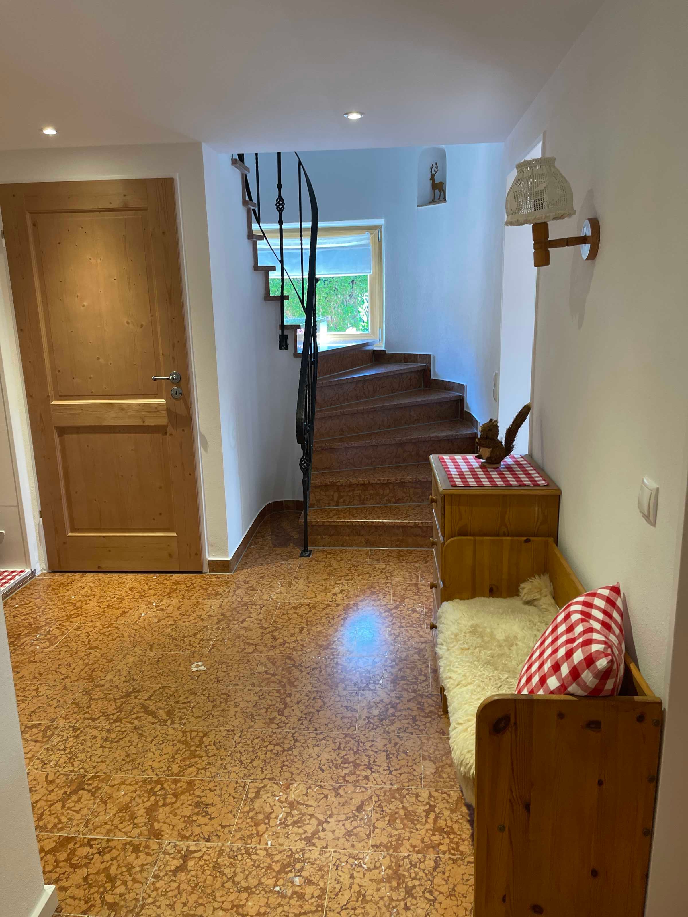 Im Erdgeschoss befindet sich ein Wohnraum mit einer gemütlichen bayrischen Sitzecke sowie einen Fernseher, eine neue offene Küche, die keine Wünsche offen lässt, sowie ein Gäste WC. Im Obergeschoss befindet sich ein neues modernes Bad mit Fußbodenheizung, einer begehbaren Dusche sowie ein geräumiges Schlafzimmer mit Doppelbett ( 200x200 ) und Fernseher. Dort befinden sich zwei gemütliche ausklappbare Sessel für einen gemütlichen Fernsehabend oder für zwei zusätzliche Schlafgelegenheiten. ( ideal für Kinder ) Die Abendsonne lässt sich am angrenzenden überdachten Balkon genießen. Ein Autostellplatz befindet sich direkt am Haus mit einem Durchgang zur Terrasse wo Fahrräder gesichert abgestellt werden können.