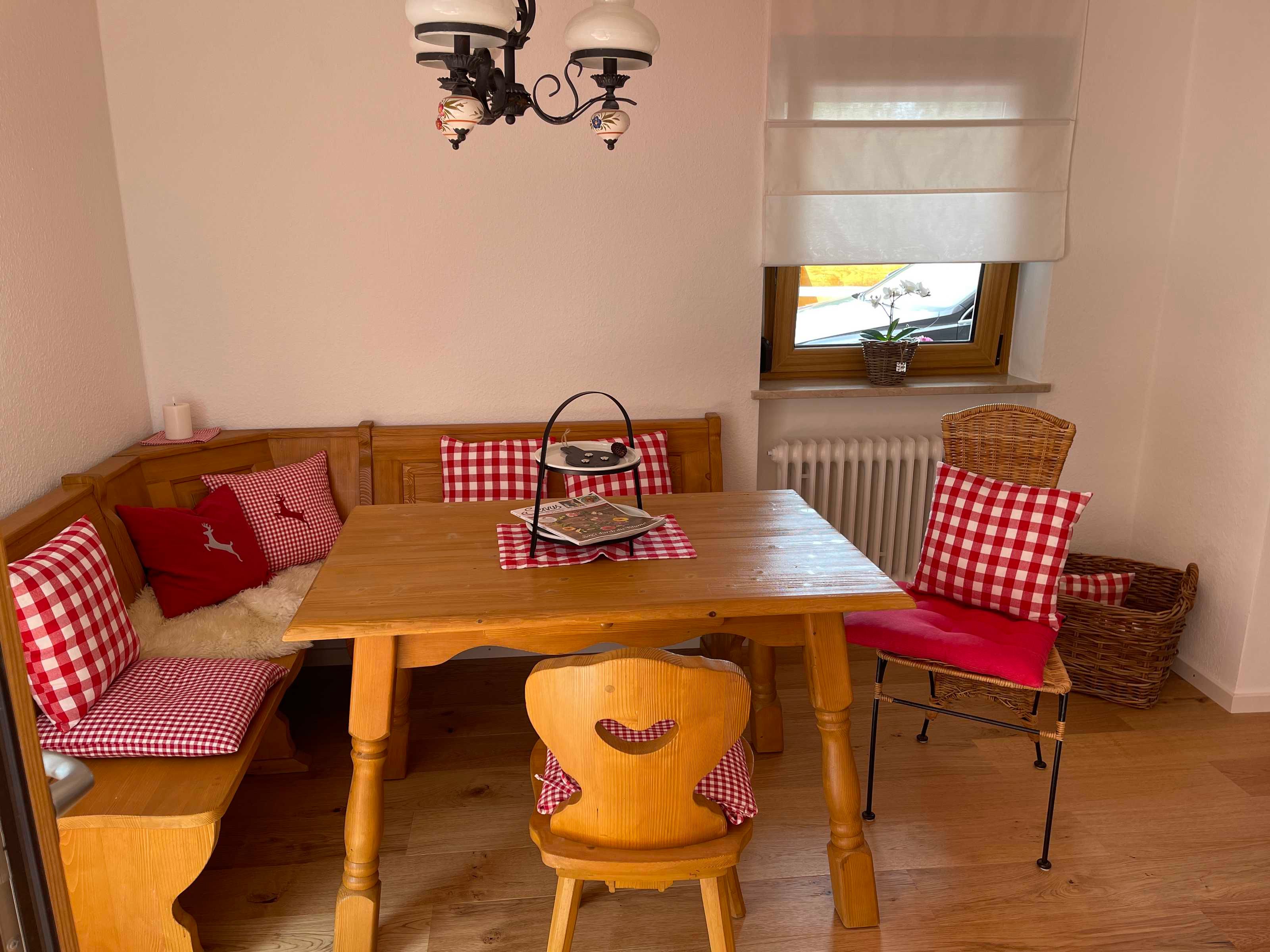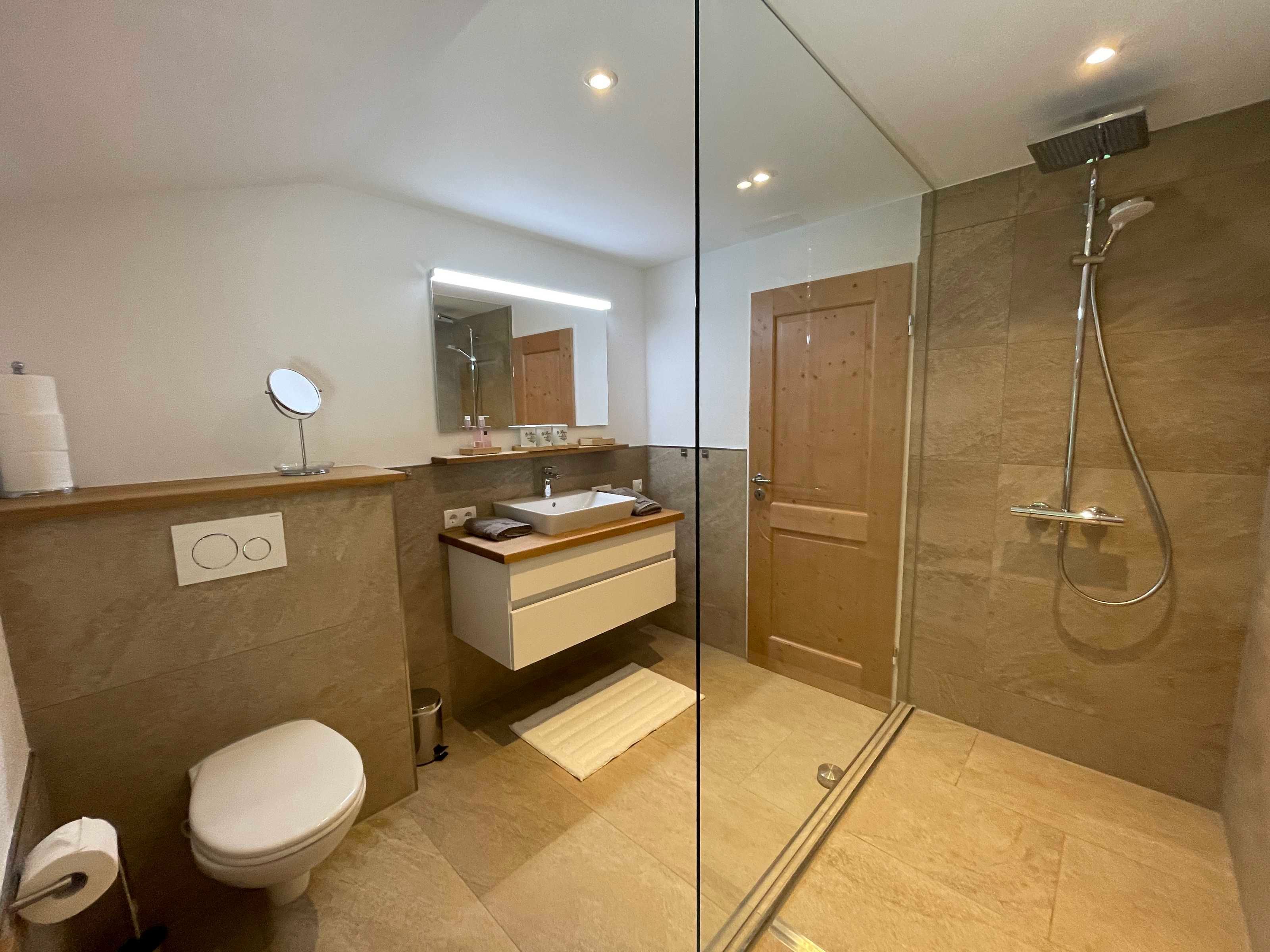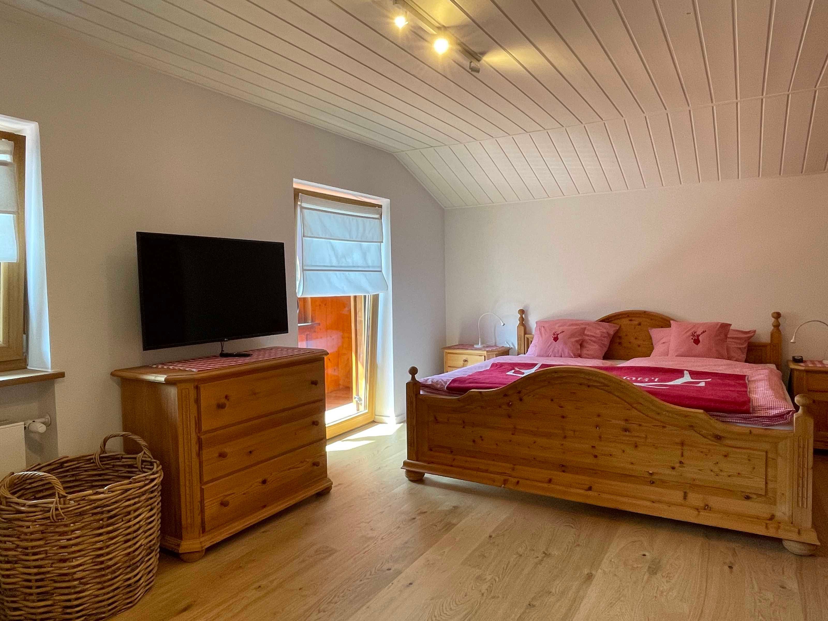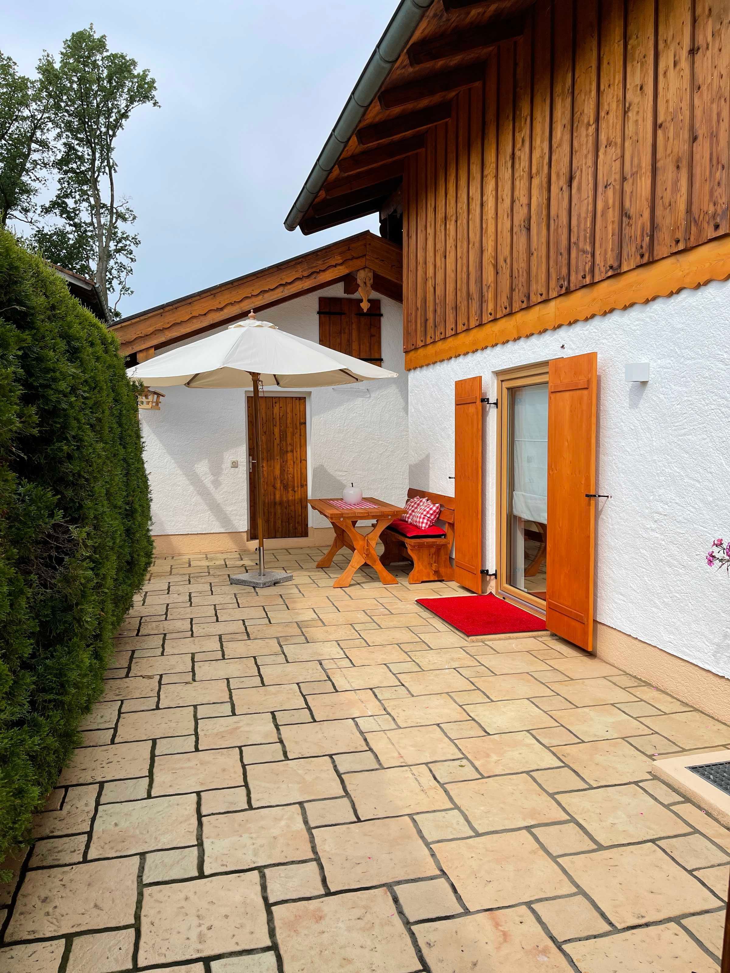Im Erdgeschoss befindet sich ein Wohnraum mit einer gemütlichen bayrischen Sitzecke sowie einen Fernseher, eine neue offene Küche, die keine Wünsche offen lässt, sowie ein Gäste WC. Im Obergeschoss befindet sich ein neues modernes Bad mit Fußbodenheizung, einer begehbaren Dusche sowie ein geräumiges Schlafzimmer mit Doppelbett ( 200x200 ) und Fernseher. Dort befinden sich zwei gemütliche ausklappbare Sessel für einen gemütlichen Fernsehabend oder für zwei zusätzliche Schlafgelegenheiten. ( ideal für Kinder ) Die Abendsonne lässt sich am angrenzenden überdachten Balkon genießen. Ein Autostellplatz befindet sich direkt am Haus mit einem Durchgang zur Terrasse wo Fahrräder gesichert abgestellt werden können.