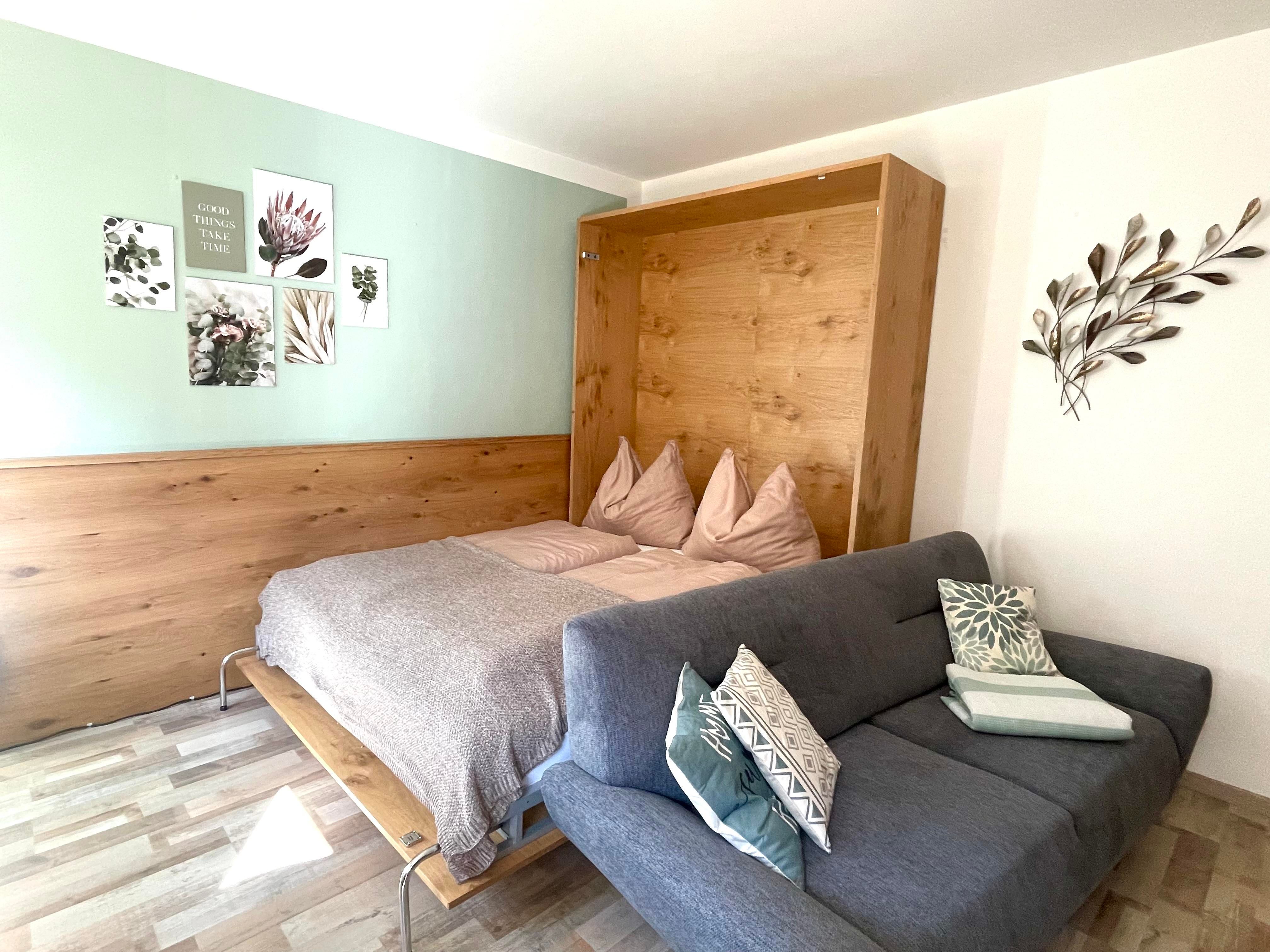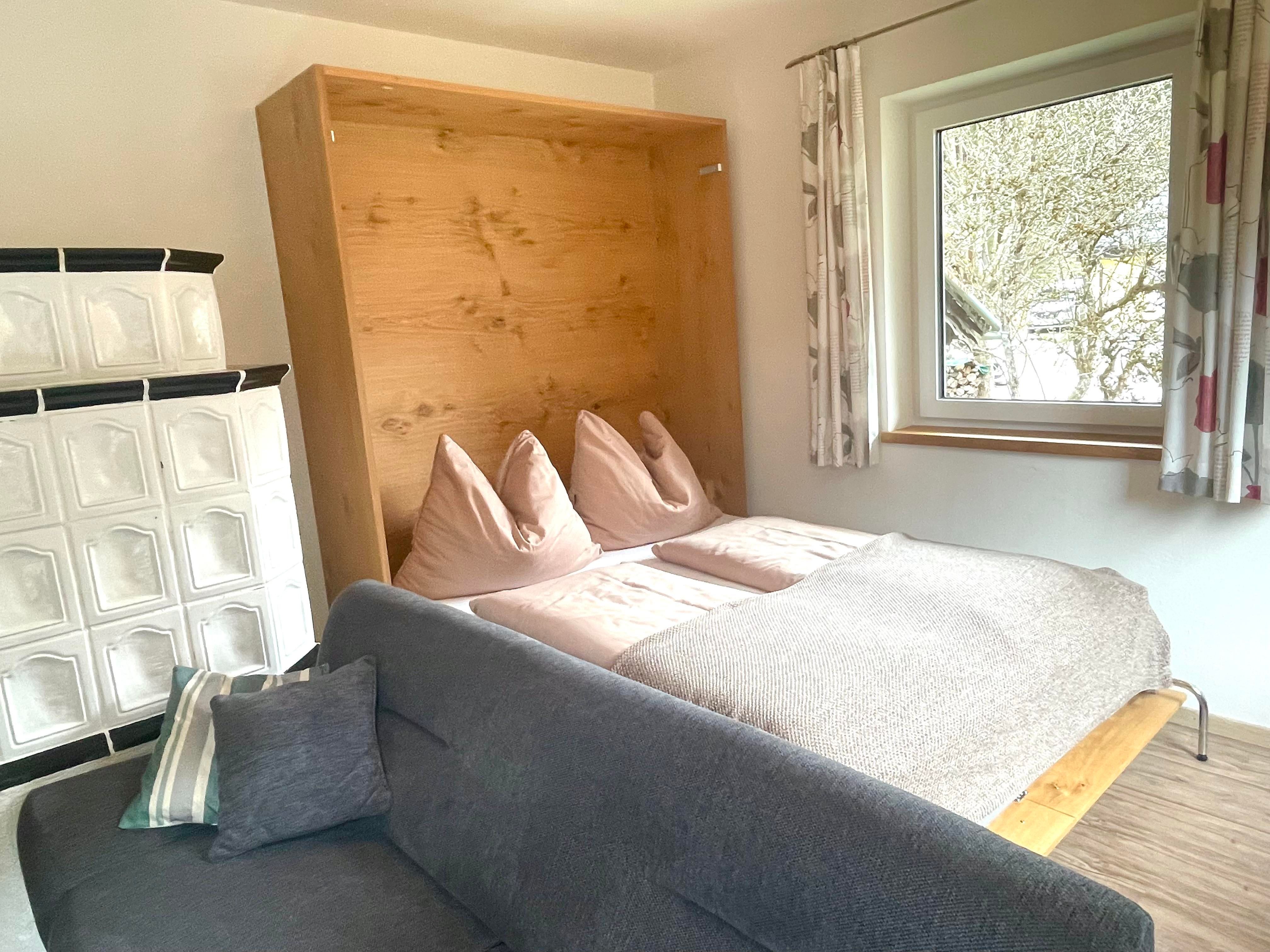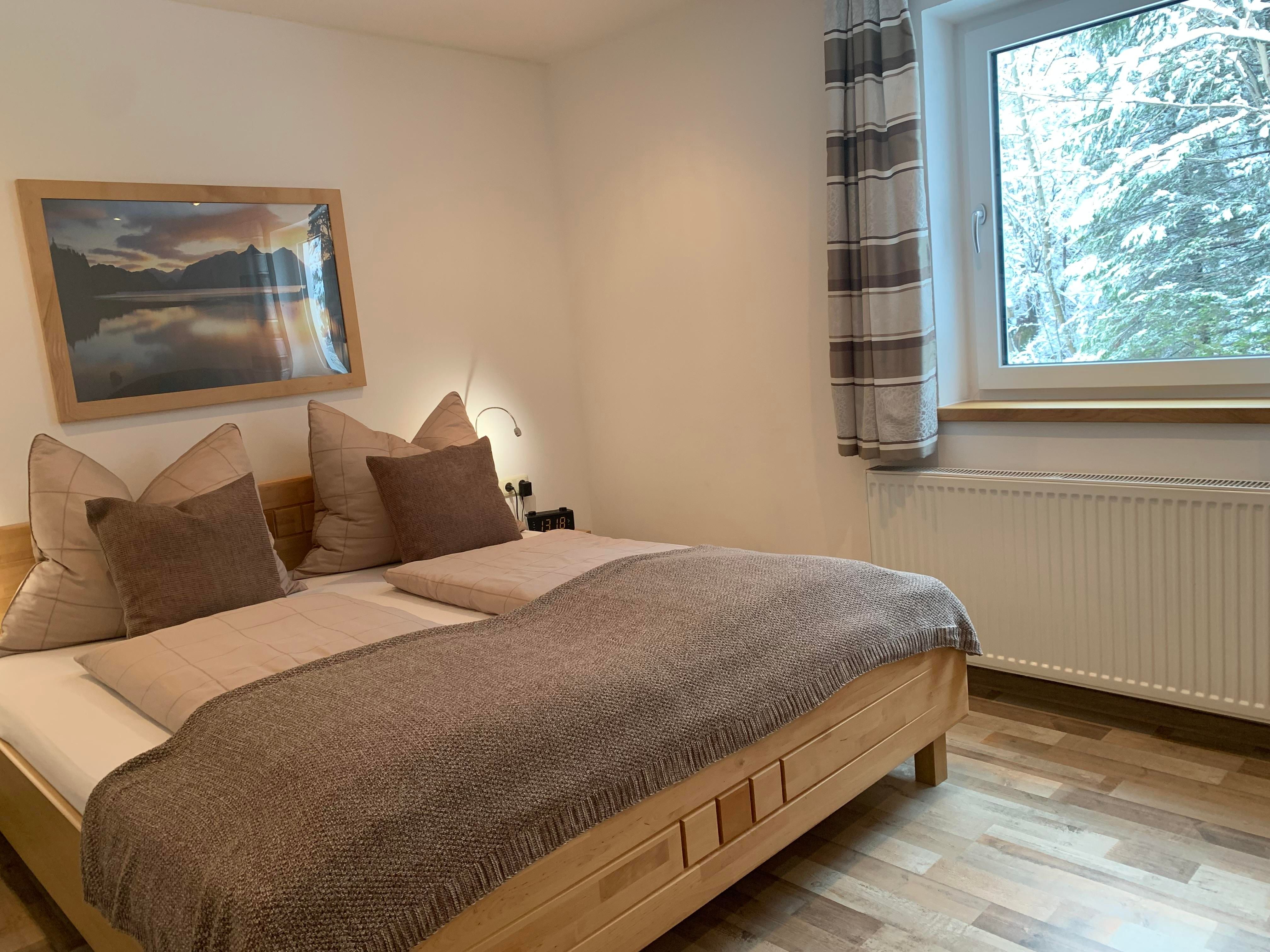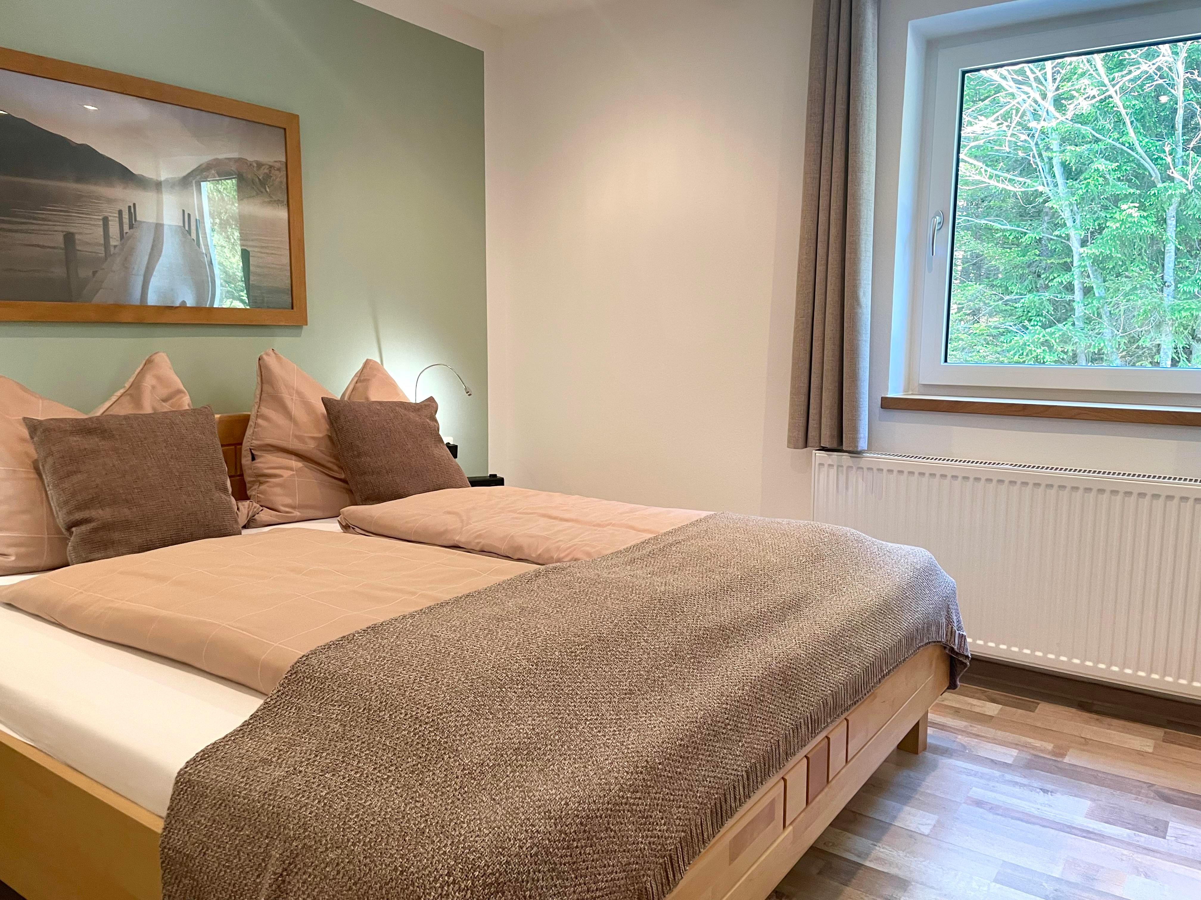 Die Ferienwohnung im Haus Füsslmühle wurde neu renoviert. Das Schlafzimmer der Wohnung 1 ist auf der Waldseite gelegen.