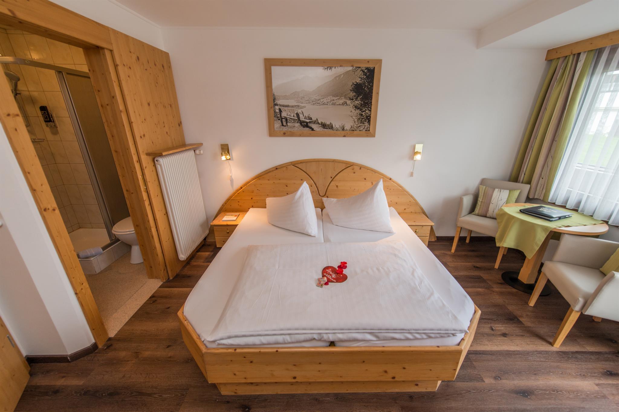 Schönes Doppelzimmer mit Frühstücksbuffet, Naturholzmöbel mit Liebe zum Detail, Balkon mit Seeblick, Dusche /WC, Föhn, Sat-TV, Radiowecker, Tresor.