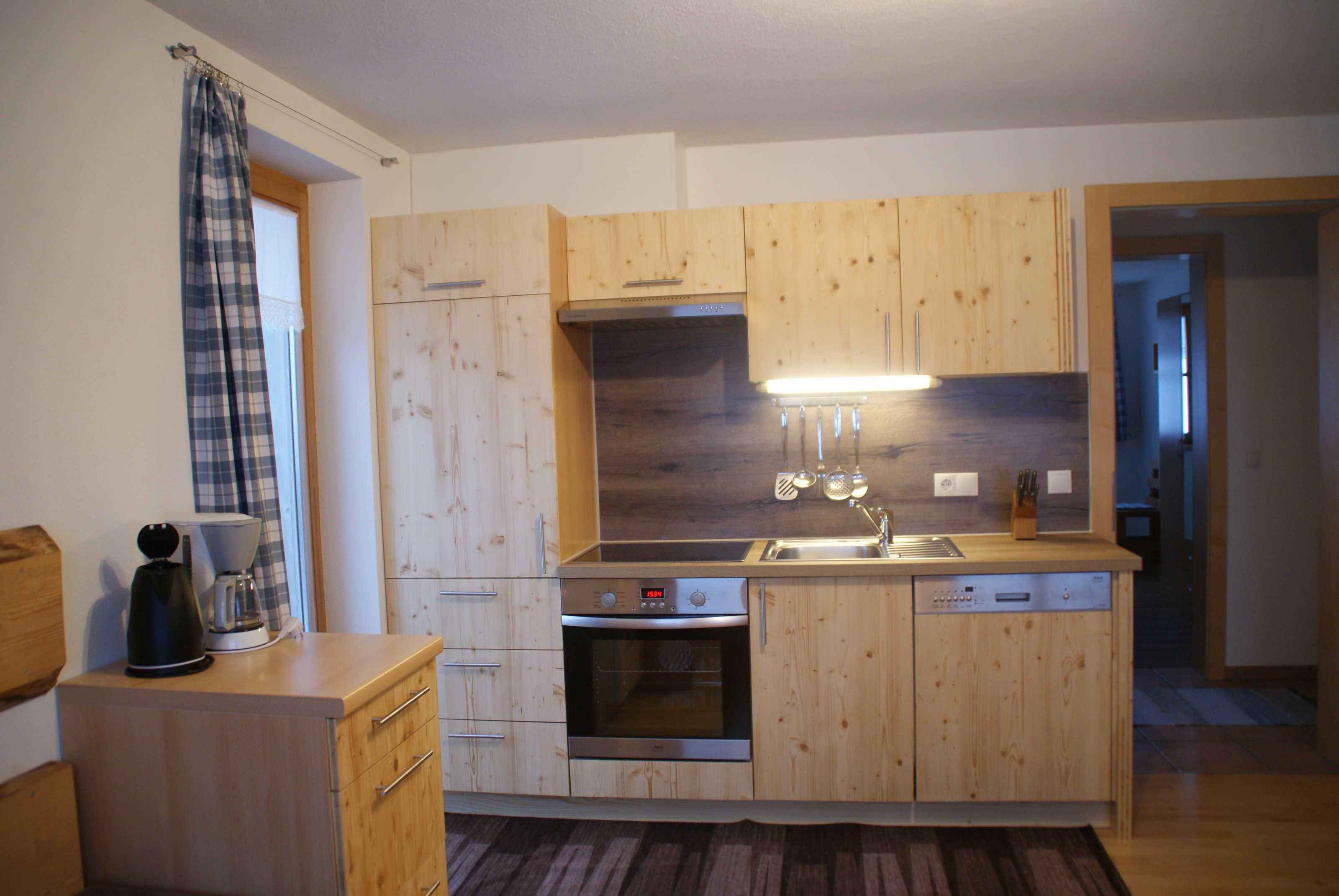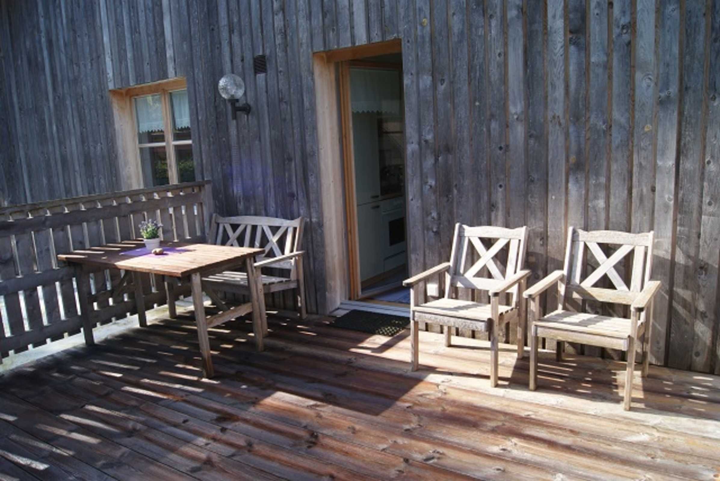 Unsere Wohnung 2 hat ca. 40 m². Sie besteht aus einem Doppelzimmer, einer Wohnküche mit Couch und einer Dusche mit WC. Außerdem verfügt sie über eine große Terrasse.