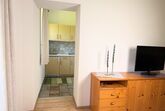 Das stilvolle Apartment (45qm) im modernen Landhausstil besteht aus einem Wohnraum mit Eckbank und Holztisch, Flat-Screen-TV und Schlaf-Sofa (180 x200), einem separaten gemütlichen Schlafzimmer mit Doppelbett (180x200), Schrank, einer kleinen Küchenzeile sowie einem Bad mit Dusche.