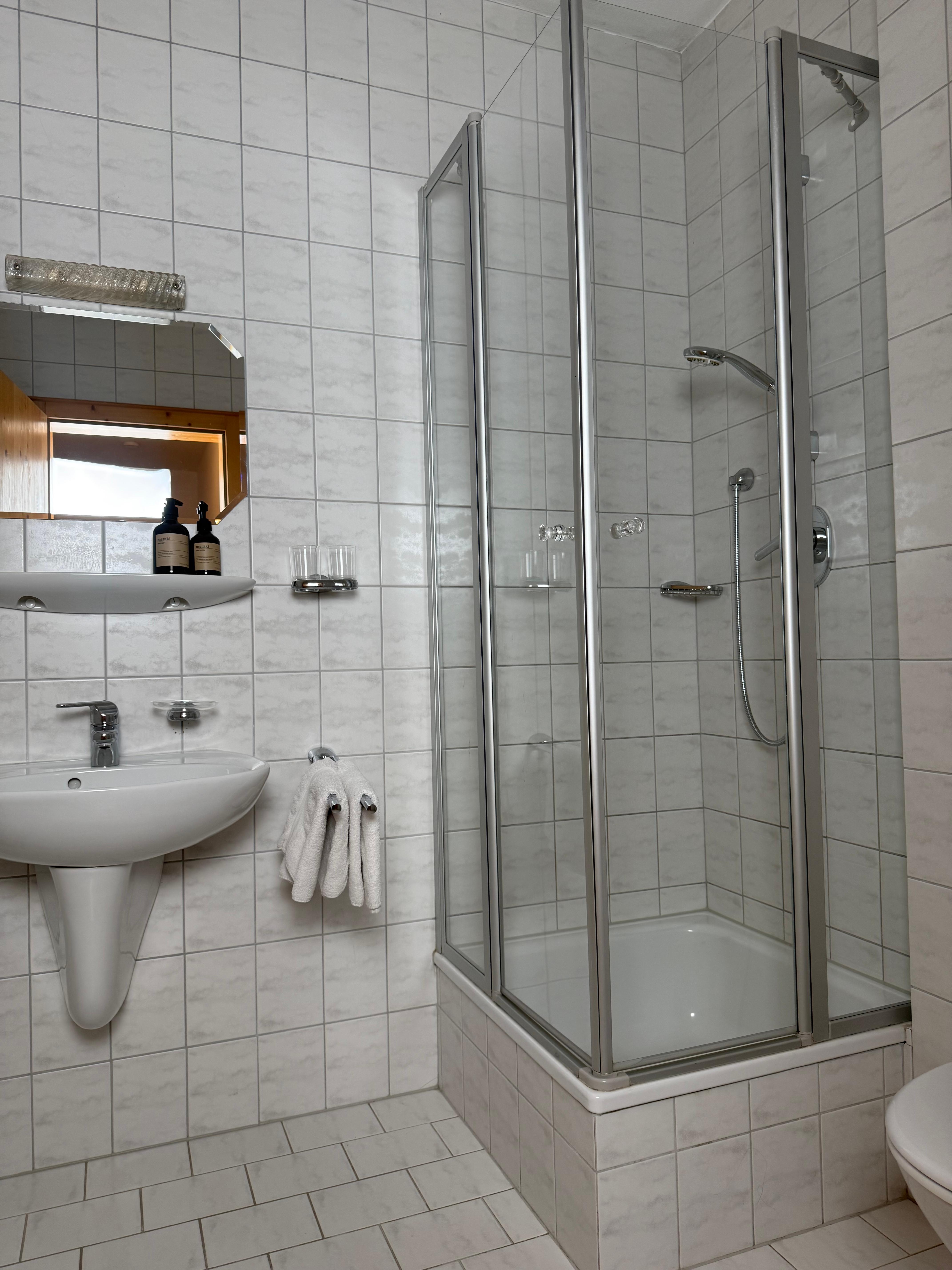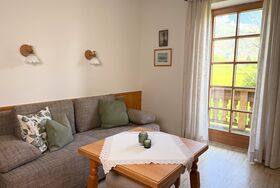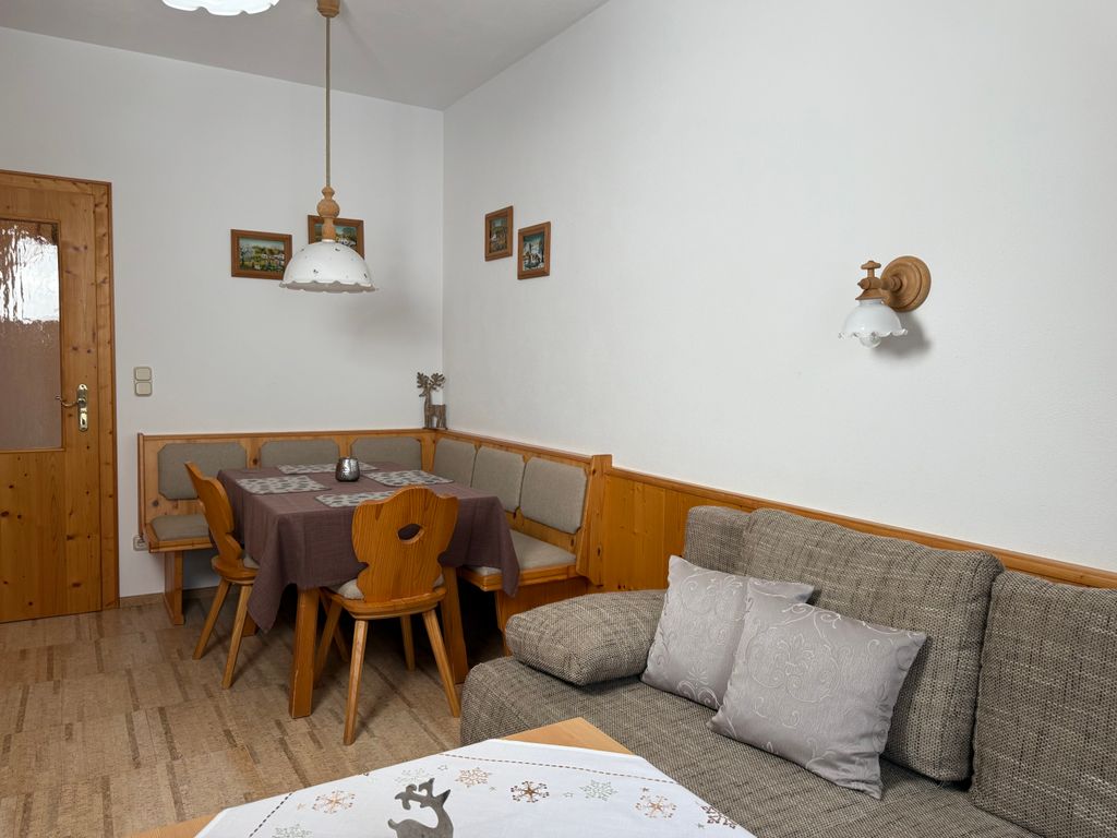 Das Apartment liegt im ersten Stock und verfügt über einen, nach Osten ausgerichteten möblierten Balkon (xx qm) mit Bergblick auf das Wetterkreuz. Es ist für zwei Erwachsene oder eine Familie mit ein/zwei kleinen Kindern ausgelegt.