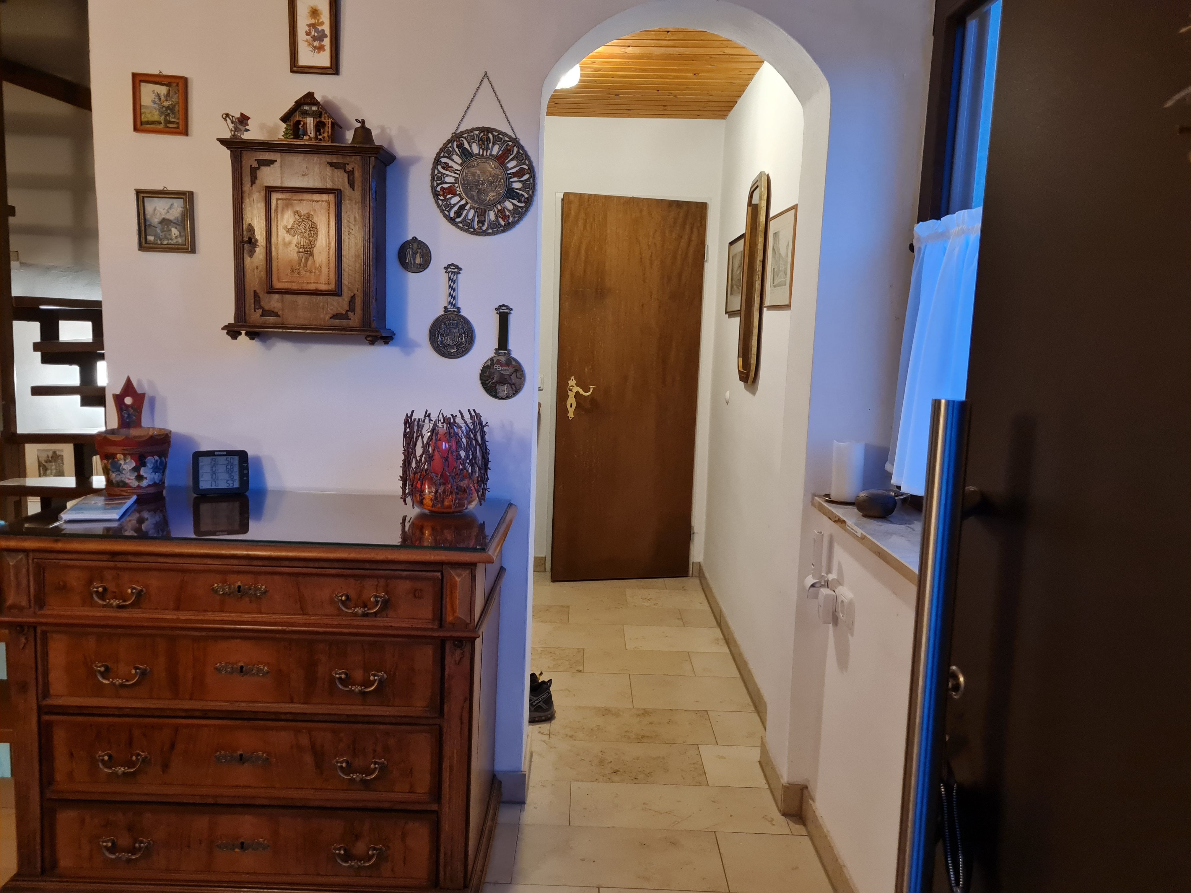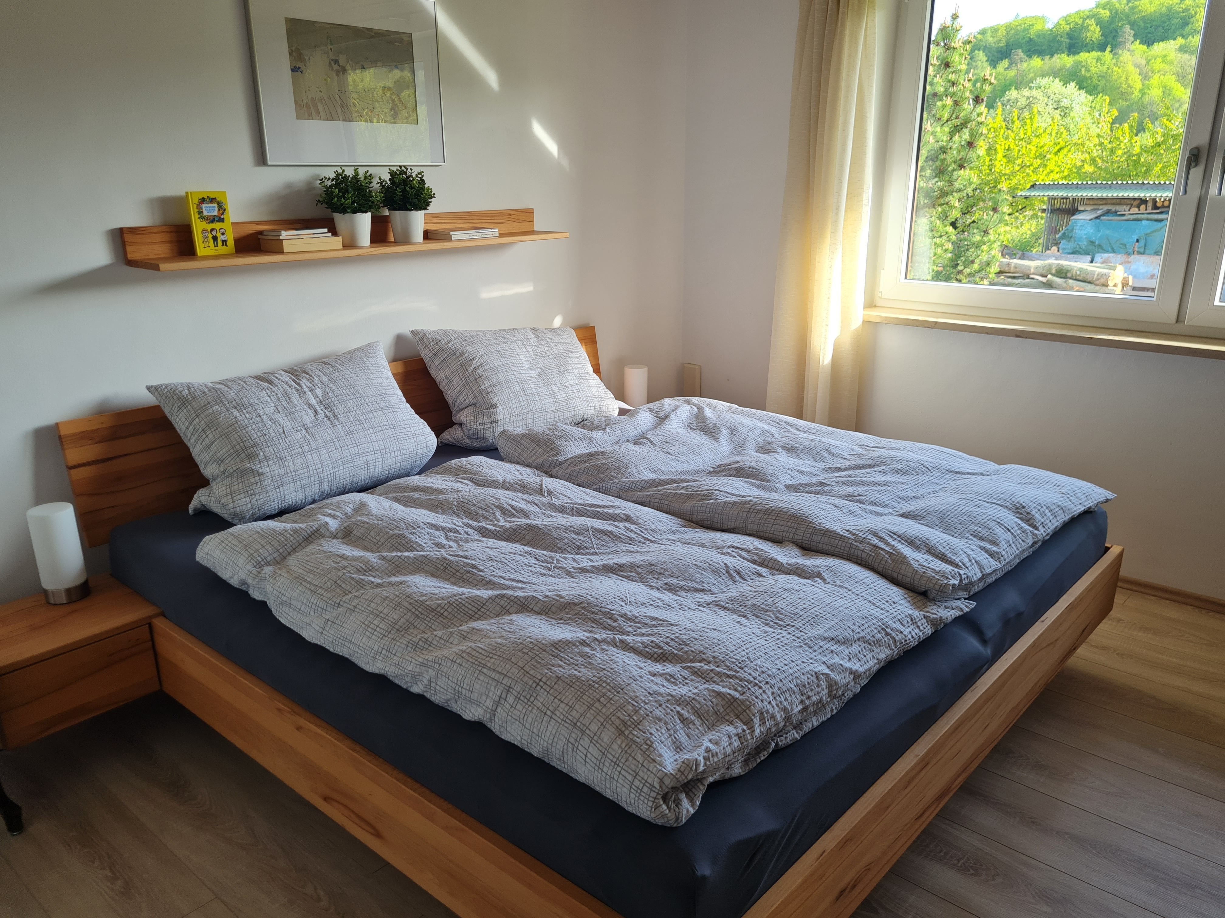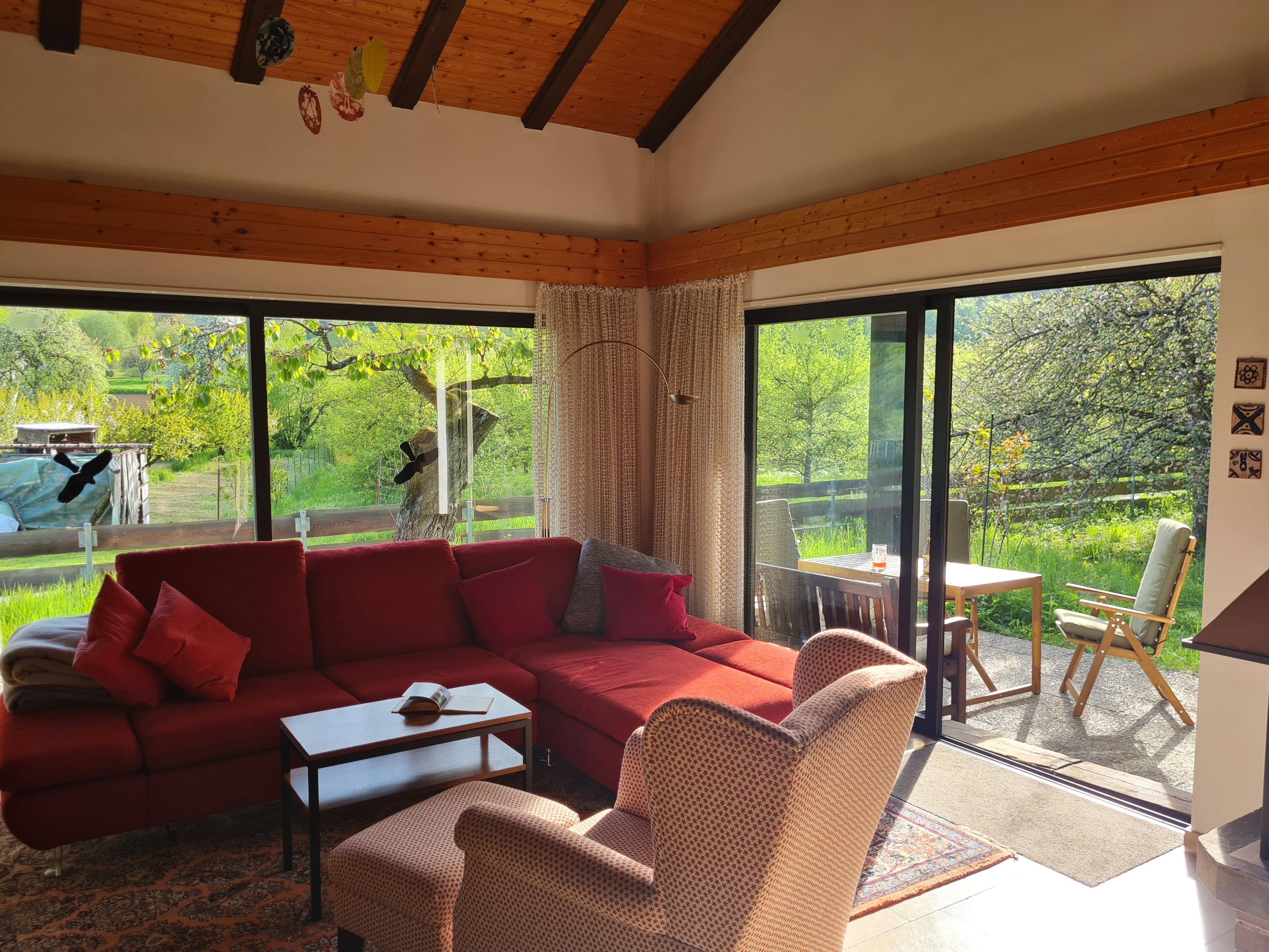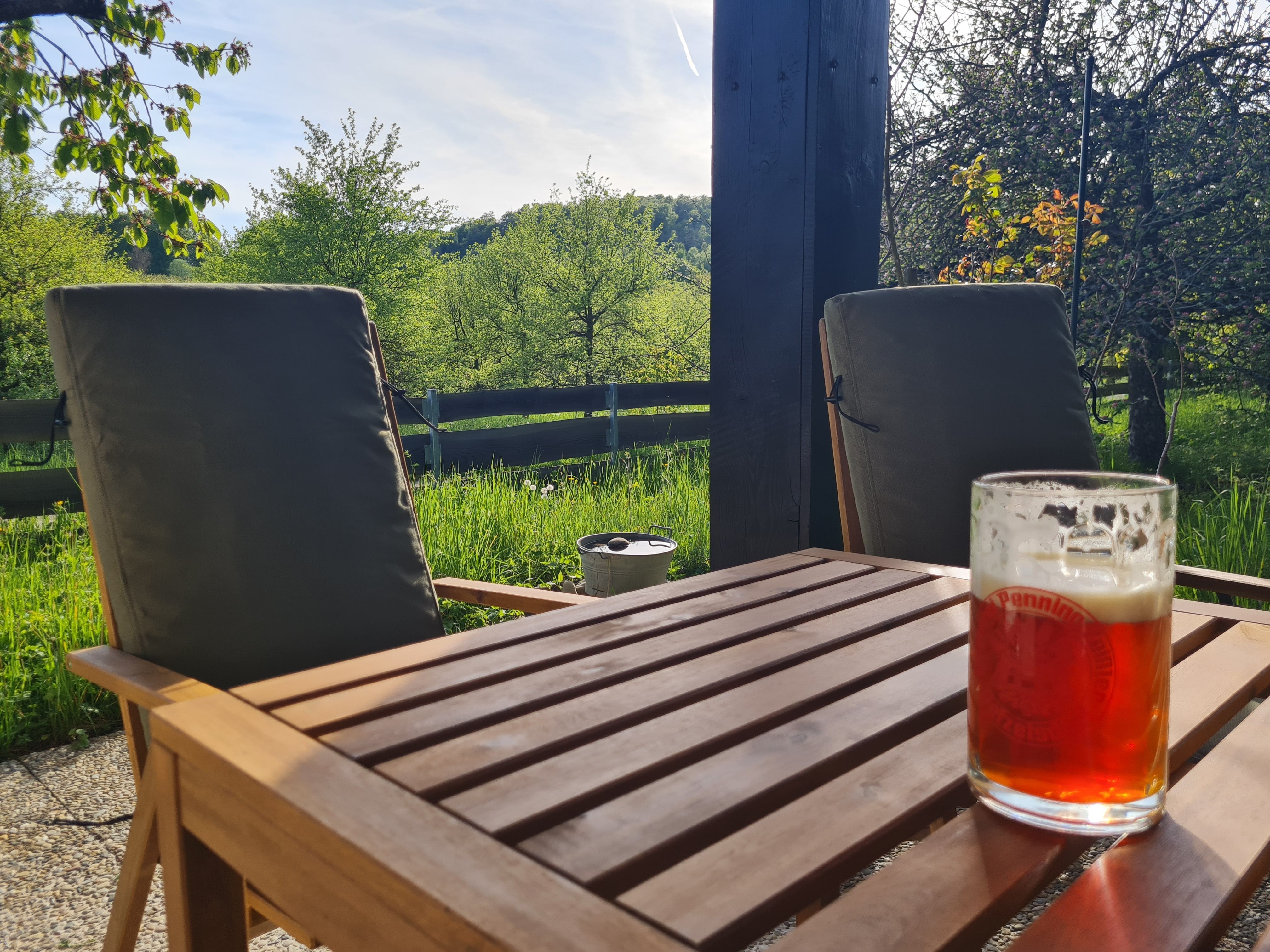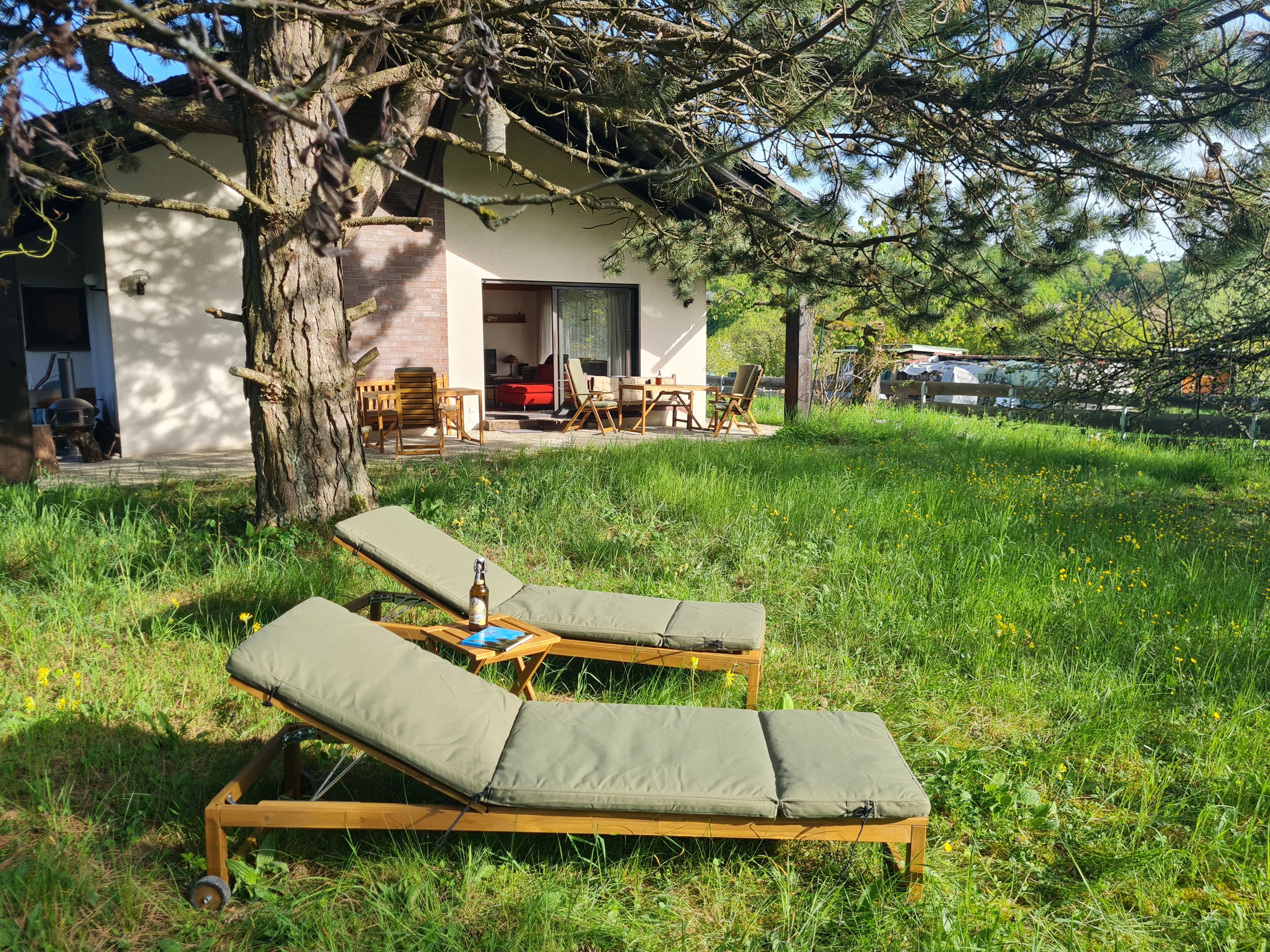 Vom großzügigen Wohnzimmer geht der Blick auf die Streuobstwiesen und Wälder der Fränkischen Schweiz. Auf der großen überdachten West-Terrasse können Sie grillen, gemütlich entspannen und die Natur bei einem fränkischen Seidla Bier genießen. Parkplätze im Einfahrtbereich stehen ausreichend und selbstverständlich kostenlos zur Verfügung, das Grundstück ist komplett umzäunt. Ihre Wanderung kann direkt vor der Haustür beginnen.