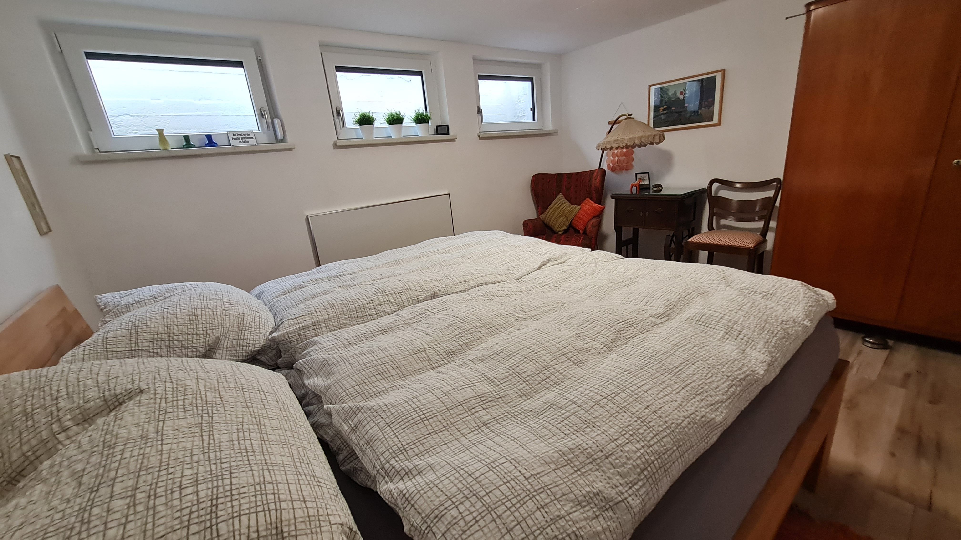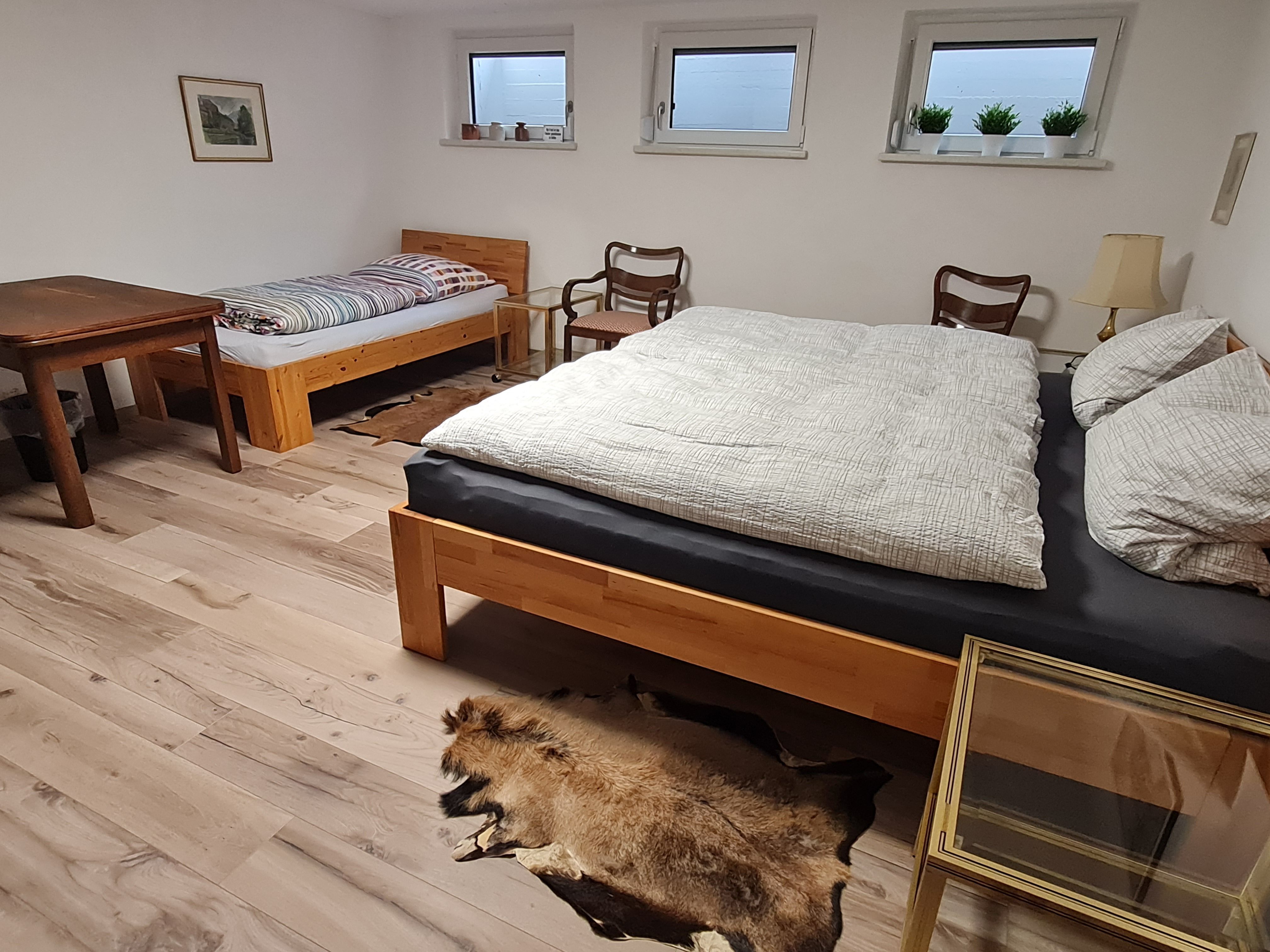 1 Schlafzimmer im Untergeschoss mit Doppelbett (2m x 2m);