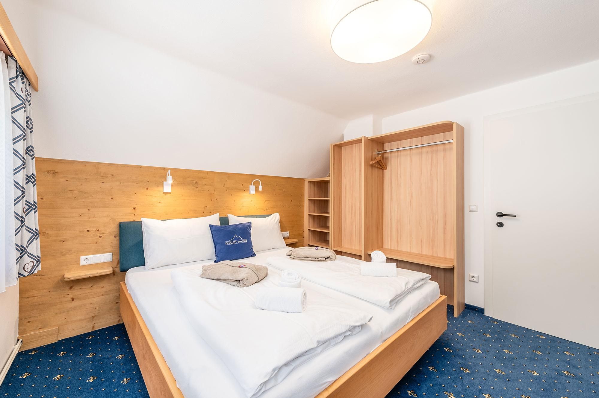 Unser neu renoviertes Chalet am Freizeitsee in Aich bietet auf 100 m² Platz für bis zu 6 Personen. Im Erdgeschoss befindet sich eine vollausgestattete Küche, ein Schlafzimmer für 2 Personen sowie ein Bad mit separatem WC. Im Obergeschoss befinden sich zwei weitere Doppelzimmer sowie ein Badezimmer mit Dusche und WC.