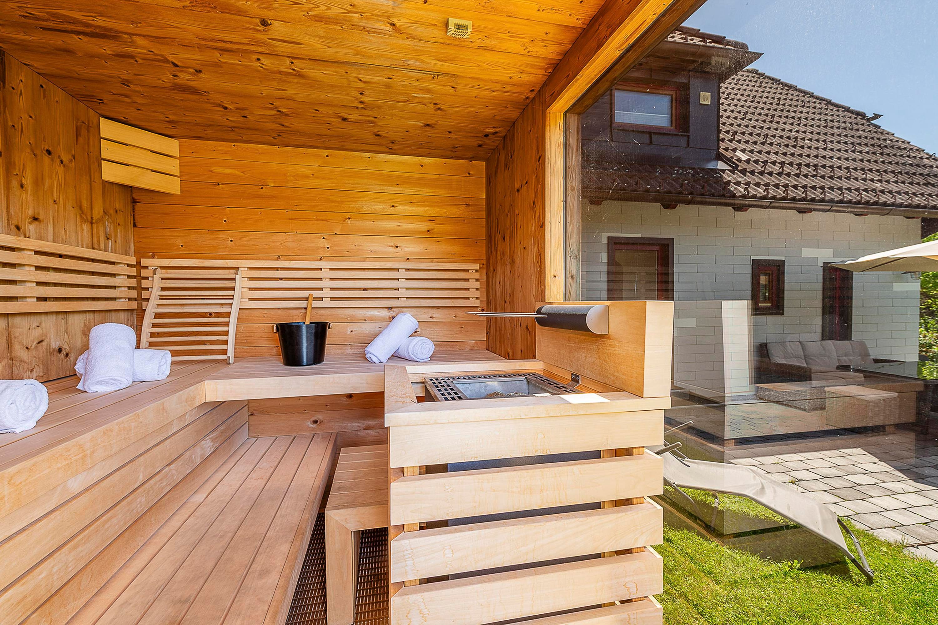 Das Highlight: unsere Gartensauna für bis zu 6 Personen.