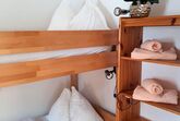 Das Apartment Julius bietet ebenfalls Platz für bis zu 6 Personen, hat 2 Schlafzimmer (1x mit Doppelbett, 1x mit Etagenbett) sowie ein Schlafsofa für zwei weitere Gäste. Das Badezimmer beinhaltet Dusche und Badewanne, das WC ist separat.