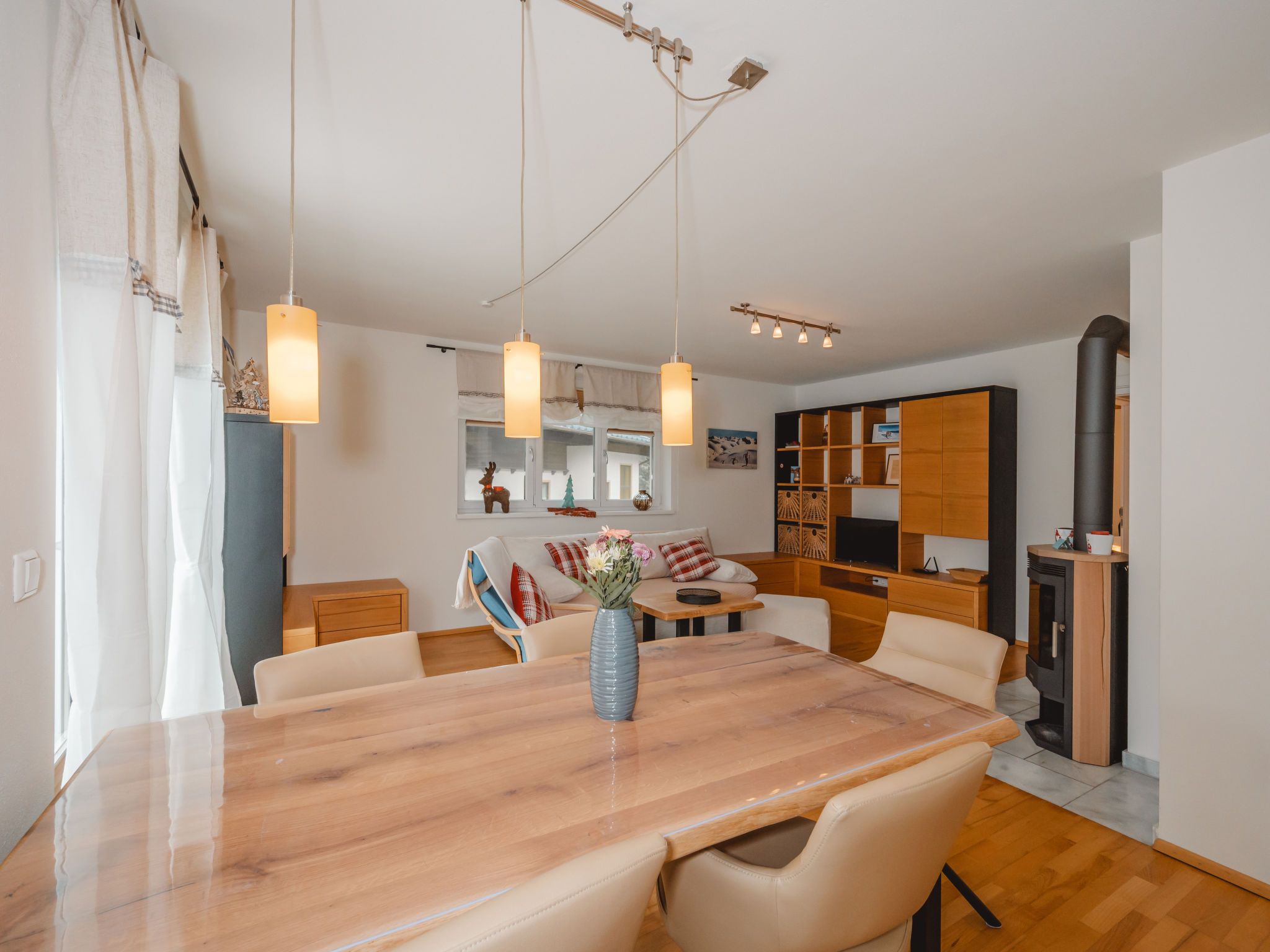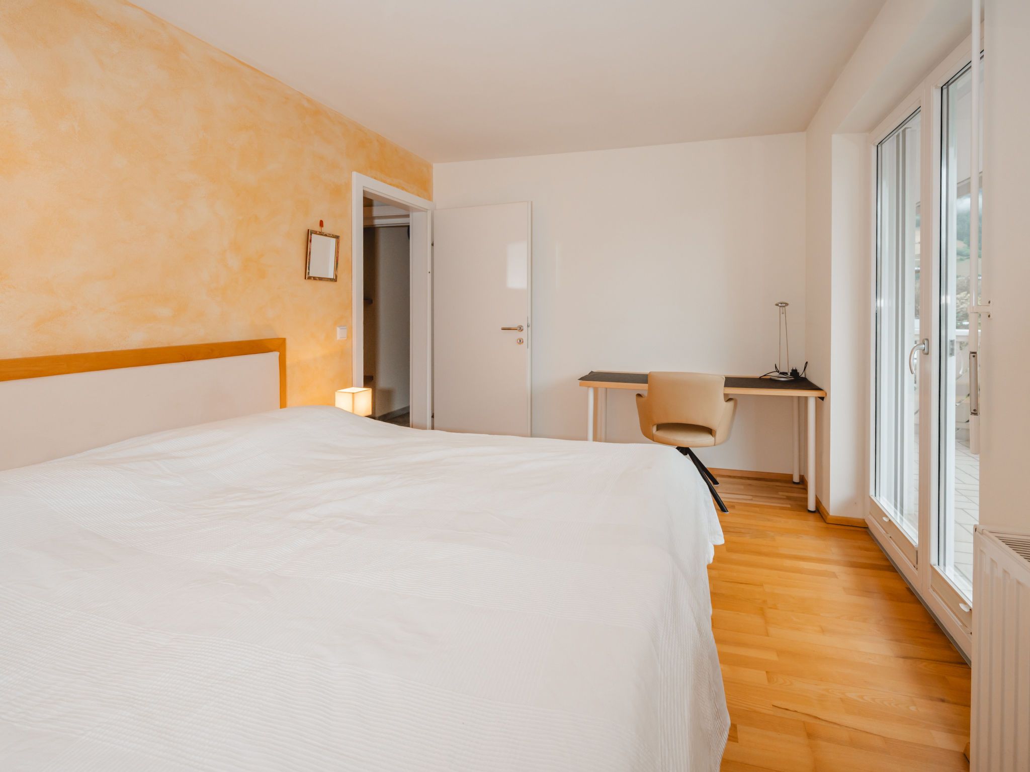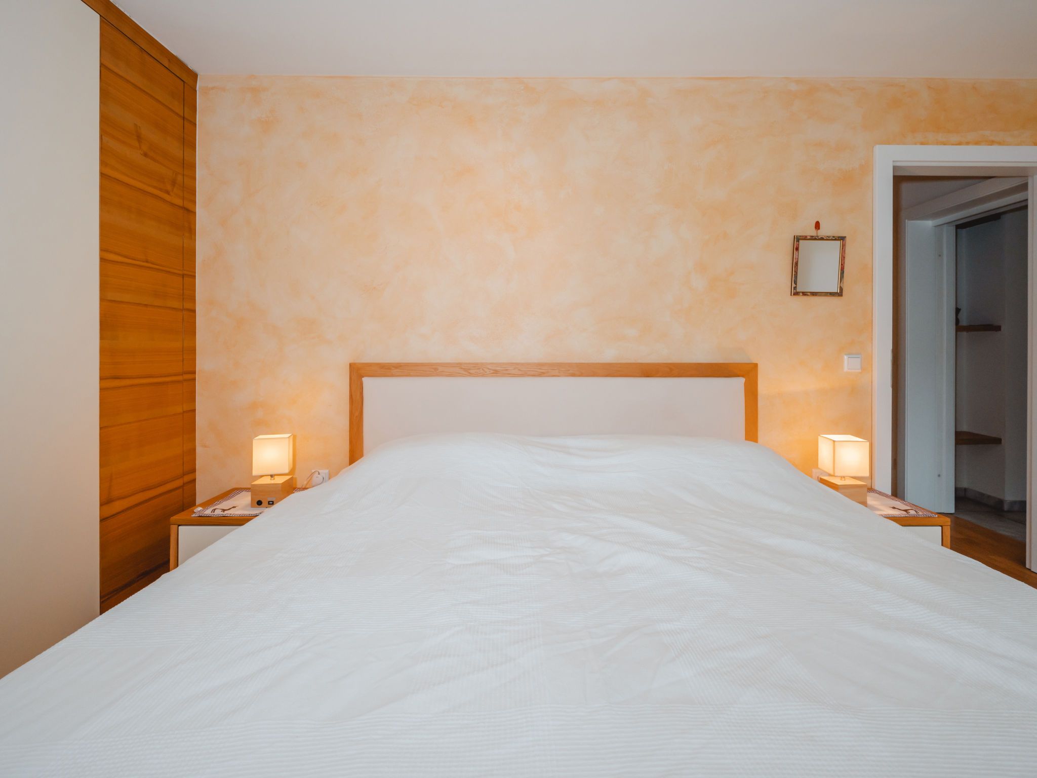 Benny, 2-Zimmer-Wohnung 62 m2. Objekt geeignet für 2 Erwachsene + 2 Kinder. Geräumig und hell, sehr komfortabel und geschmackvoll eingerichtet: Eingang. Wohn-/Esszimmer mit 1 Diwanbett und Schwedenofen (nur Deko), Esstisch und TV (Flachbildschirm). Ausgang zur Terrasse. 1 Doppelzimmer. Ausgang zum Balkon. Offene Küche (Backofen, Geschirrspüler, 4 Glaskeramikplatten, Wasserkocher, elektrische Kaffeemaschine). Dusche, Bidet, sep. WC. Parkettboden. Grosse Terrasse 18 m2. Sehr schöne Sicht auf die Berge. Parkplatz beim Haus. Bitte beachten: geeignet für Familien. Nichtraucher-Haus. 50402-000834-2025