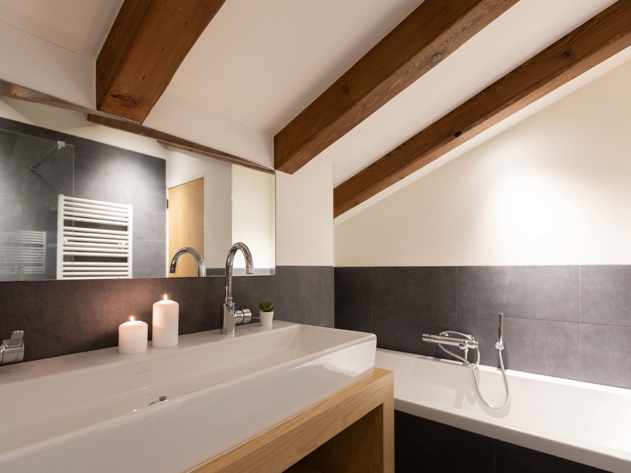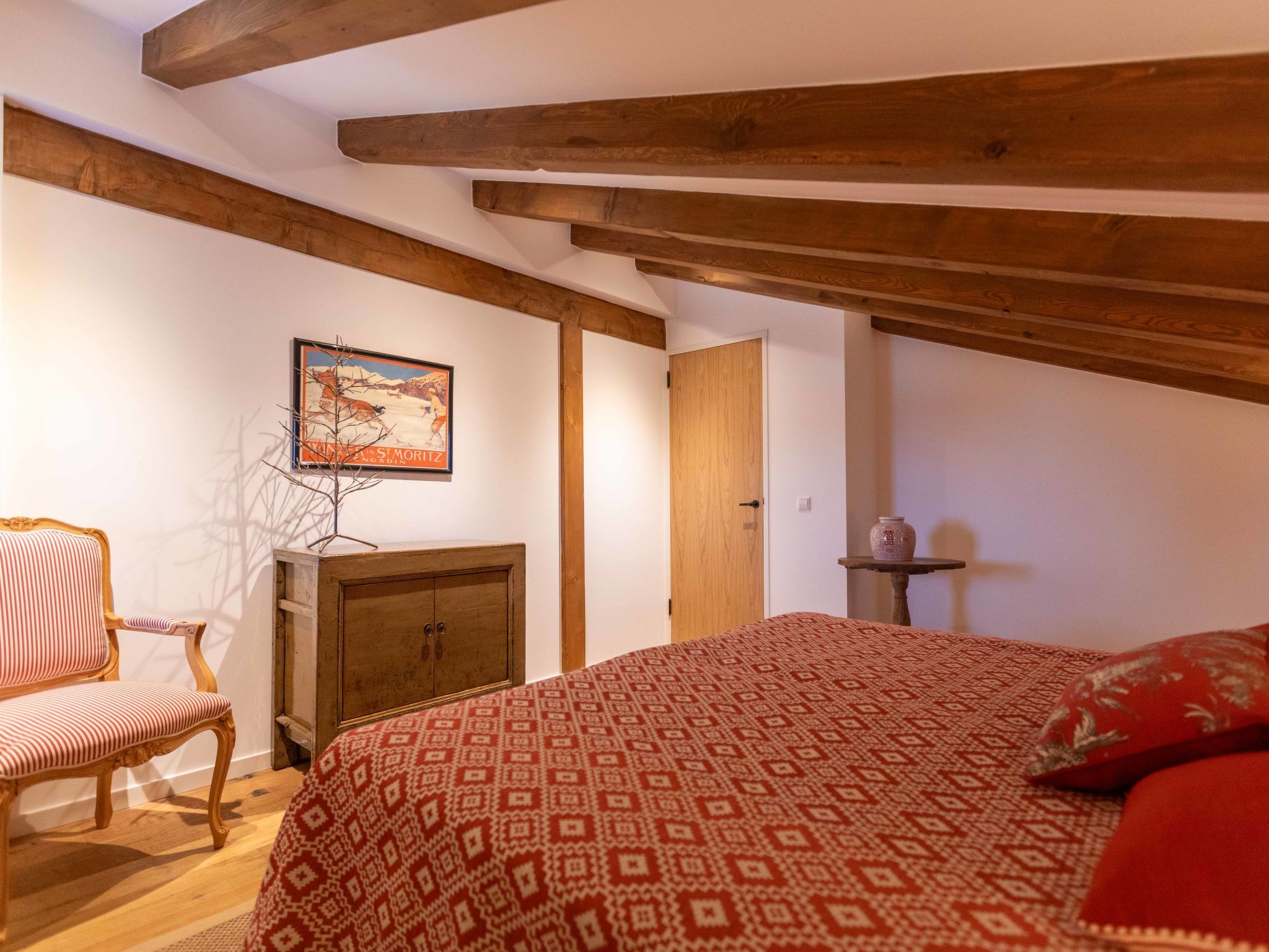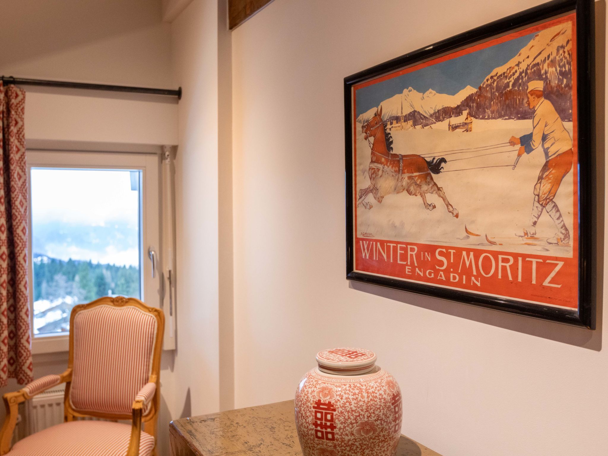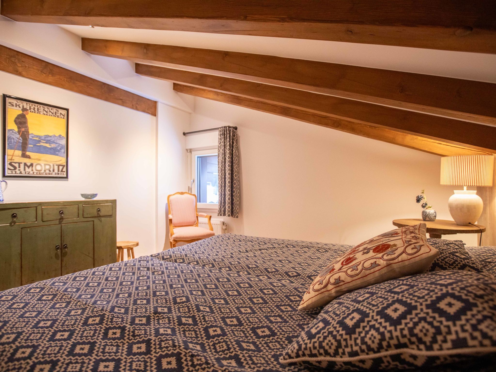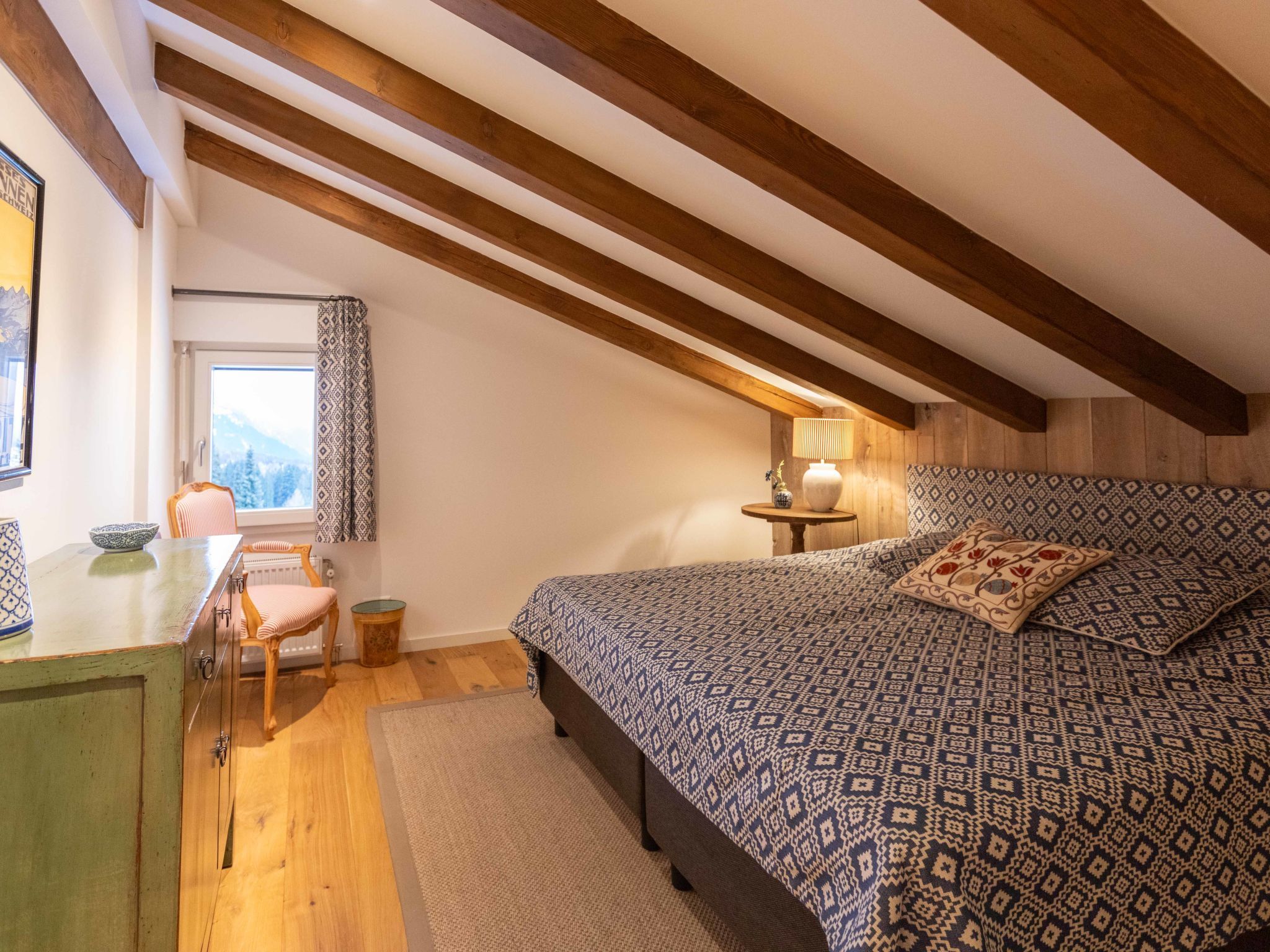 Christina 9, 4-Zimmer-Attikawohnung 127 m2 im 2. Stock, Südlage. Objekt geeignet für 6 Erwachsene + 1 Kind. Vollständig renoviert, komfortabel und modern eingerichtet: Wohn-/Esszimmer mit offenem Kamin (nur Deko), Esstisch, Essecke und TV (Flachbildschirm). Ausgang zum Balkon, Richtung Süden. 1 Zimmer mit 2 Betten (90 cm, Länge 200 cm), Dusche. Ausgang zum Balkon, Richtung Süden. Offene Küche (Backofen, Geschirrspüler, 4 Induktionskochplatten, Toaster, Wasserkocher, Mikrowelle, Tiefkühler, elektrische Kaffeemaschine, Kapseln für die Kaffeemaschine (Nespresso) extra, Racletteofen, Fondue Set (Käse)) mit Bar. Sep. WC. Obergeschoss: 1 abgeschrägtes Zimmer, ohne Schrank mit 2 Betten (90 cm, Länge 200 cm), 1 Schlafmöglichkeit (1 x 80 cm, Länge 170 cm). 1 abgeschrägtes Zimmer, ohne Schrank mit 2 Betten (90 cm, Länge 200 cm). Bad/Dusche/WC. 2 kleine Balkone, Südlage. Terrassenmöbel. Sehr schöne Panoramasicht auf die Berge. Zur Verfügung: Haartrockner. Garage Nr. 9 (1 Auto), Höhe 190 cm. Bitte beachten: Nichtraucher-Unterkunft. Kein Fahrstuhl.