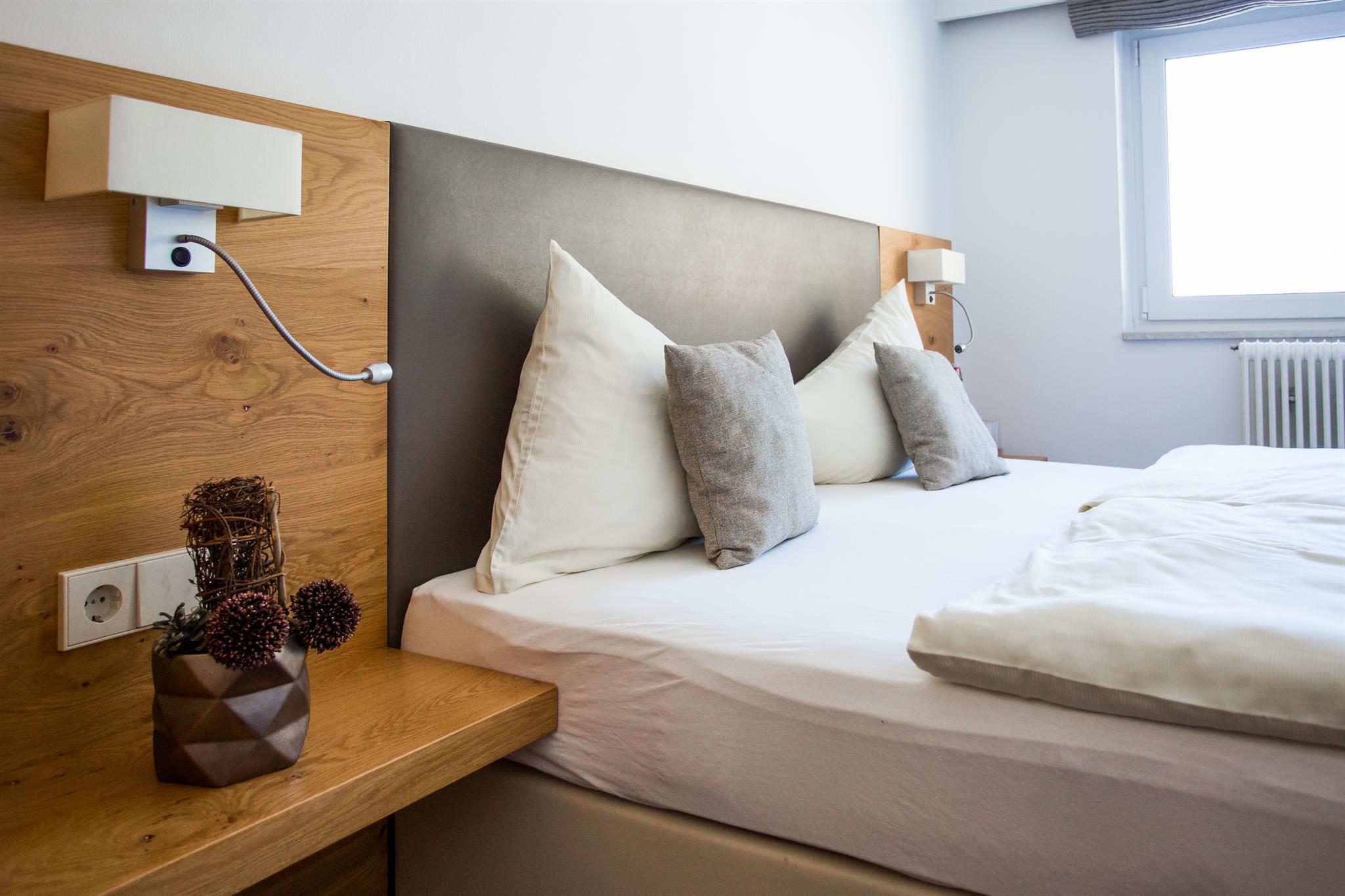 Doppelzimmer mit Dusche, WC und teilweise Balkon. Kabel-TV,Haarföhn,Zimmersafe und Radiowecker. Bademantel u. Badepantoffel