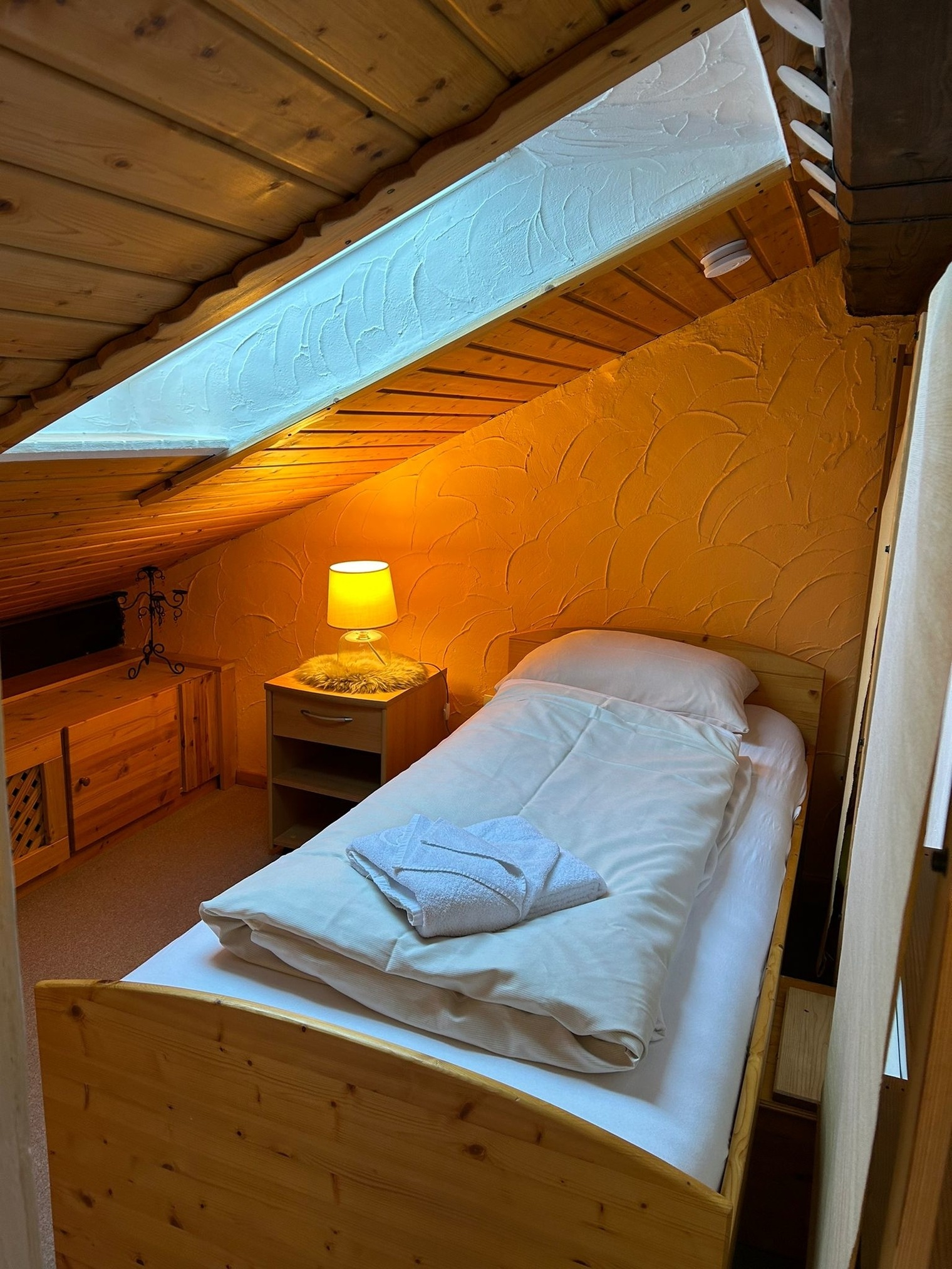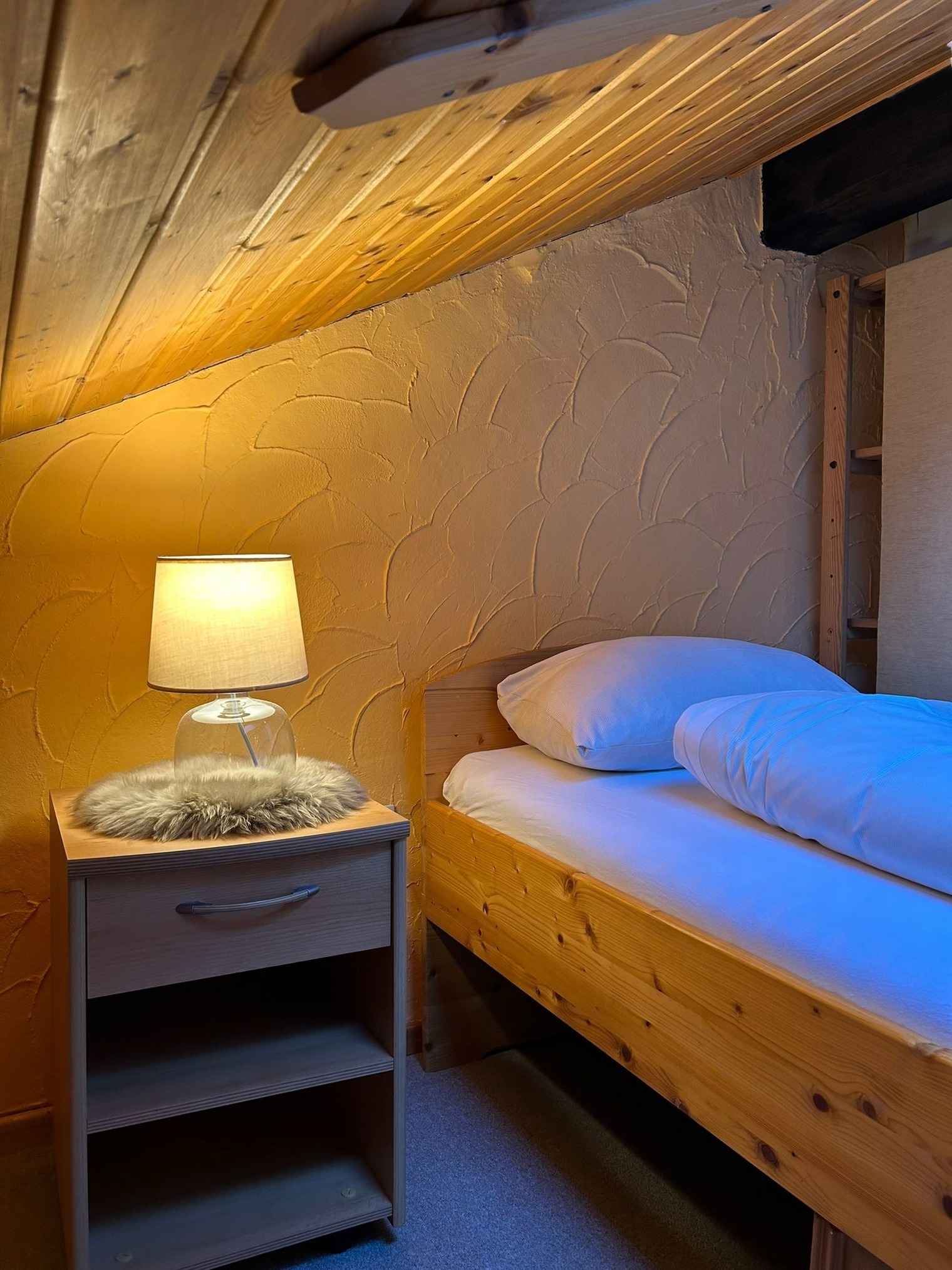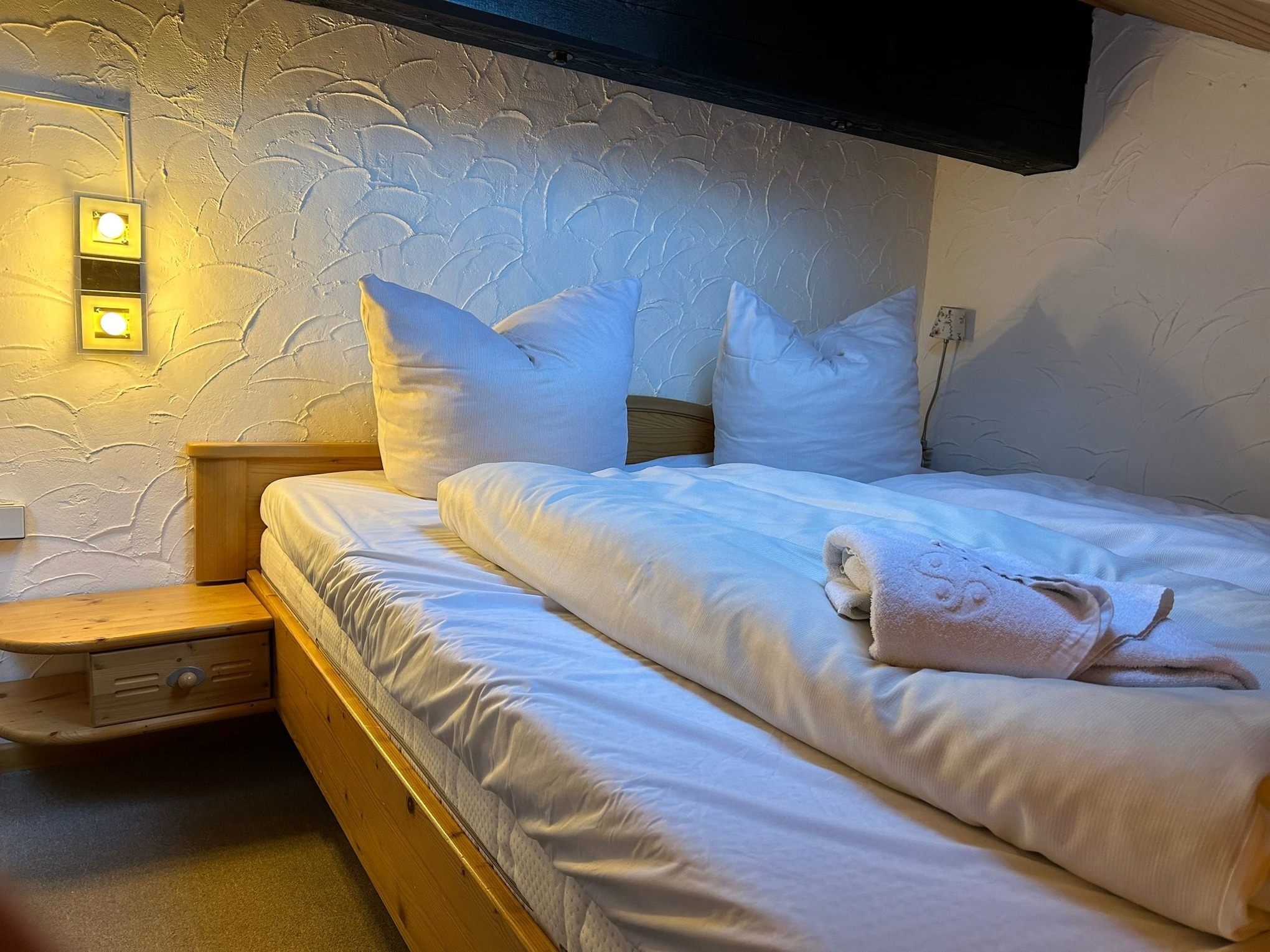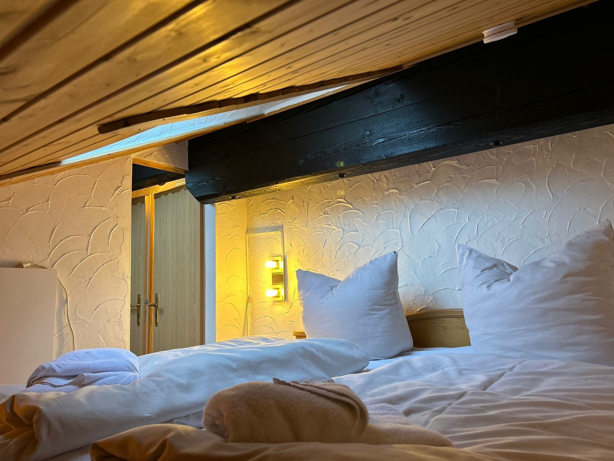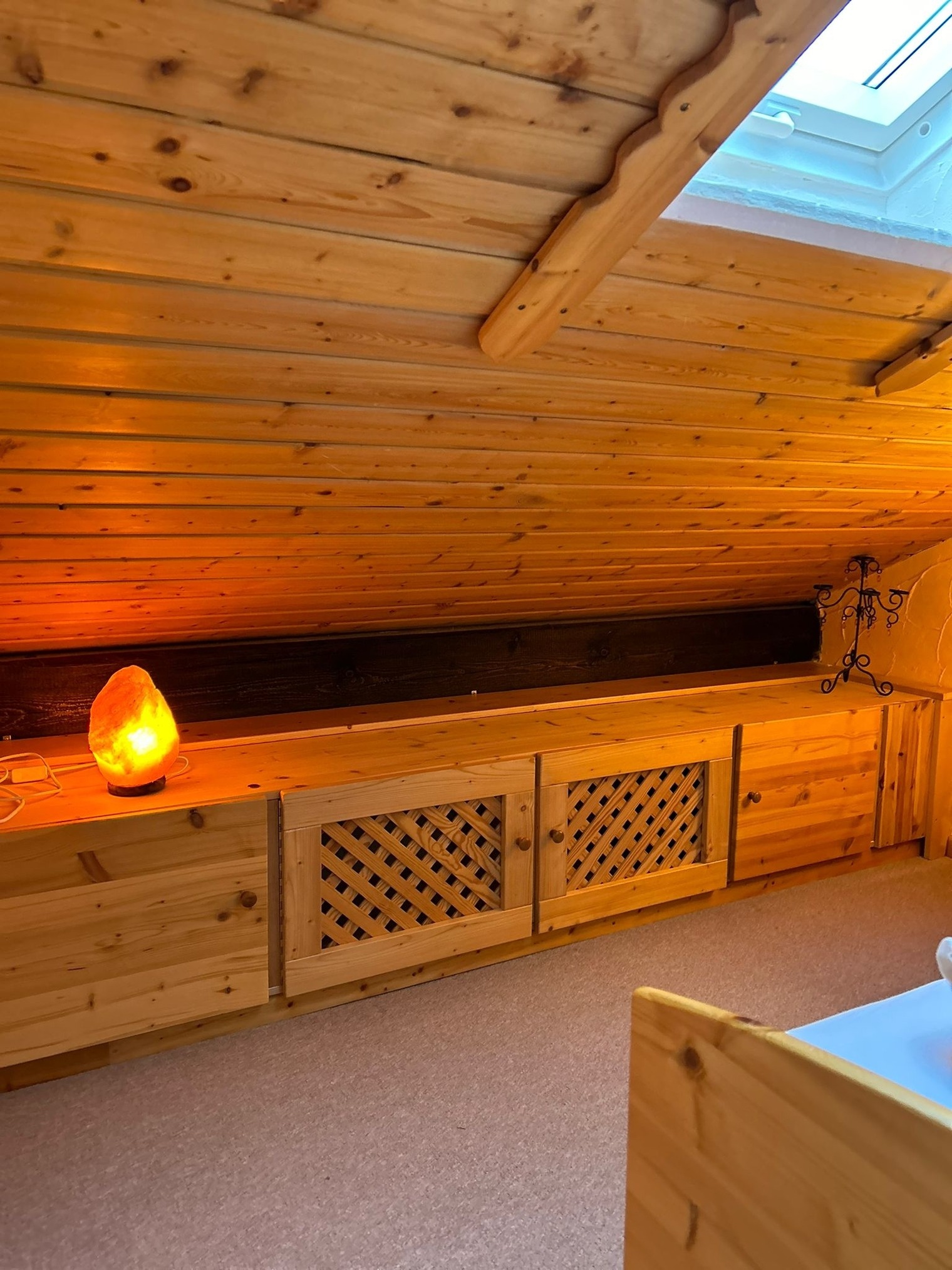 ⚠️ Hinweis & Sicherheitsanweisung: Das Doppelschlafzimmer befindet sich unter einer ausgeprägten Dachschräge (Mansarde). Die Stehhöhe ist dort stark eingeschränkt – aufrechtes Stehen ist nicht möglich, und auch der Durchgang ist niedriger als üblich. Bitte achten Sie beim Betreten und Verlassen des Schlafbereichs besonders auf Ihren Kopf, um Verletzungen zu vermeiden. Für gemütliche Nächte ist der Raum dennoch bestens geeignet!
