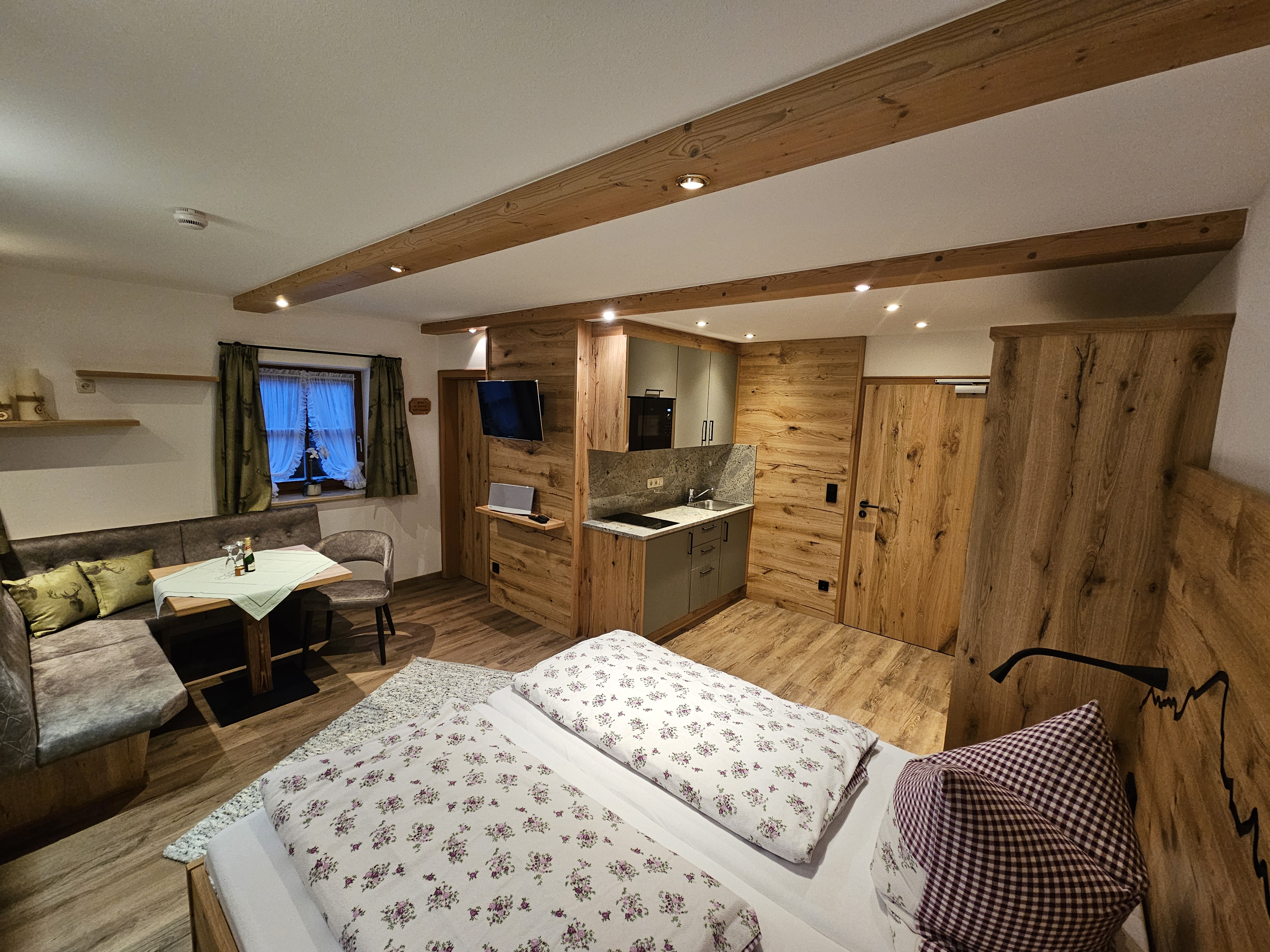 Das im Dezember 2024 neu renovierte und modern eingerichtete Appartement Salzberg befindet sich im Erdgeschoss unseres Hauses und bietet Ihnen jeglichen Komfort. Das Appartement bietet auf 30 qm Platz für 2 Personen und bietet auch eine eigene Sitzmöglichkeit draußen am Haus.