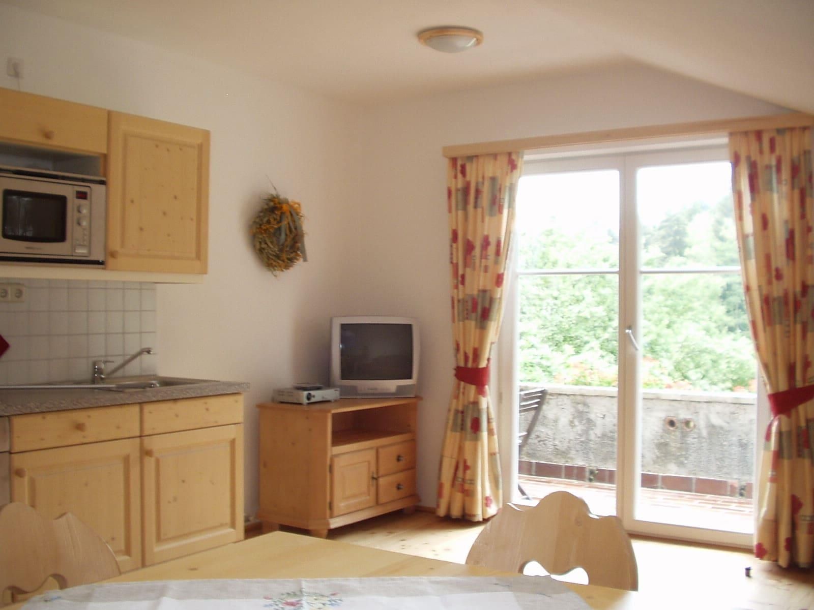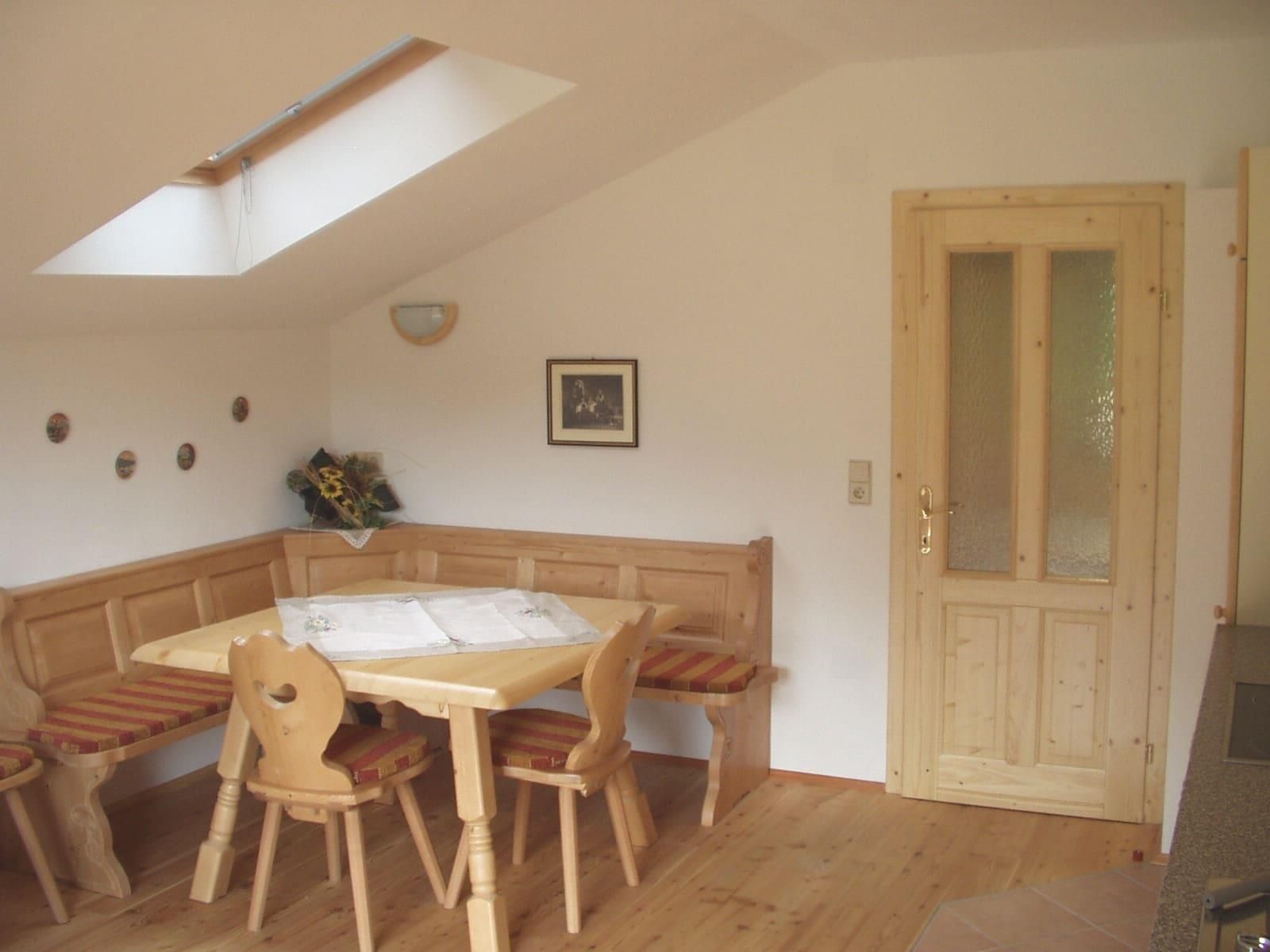 Wenig Jahre alte - geräumige, natürlich eingerichtete Ferienwohnung im 1. Stock. Eine große Wohnküche mit Terrasse, zwei Schlafzimmer, WC - Bad separat; großer Vorraum