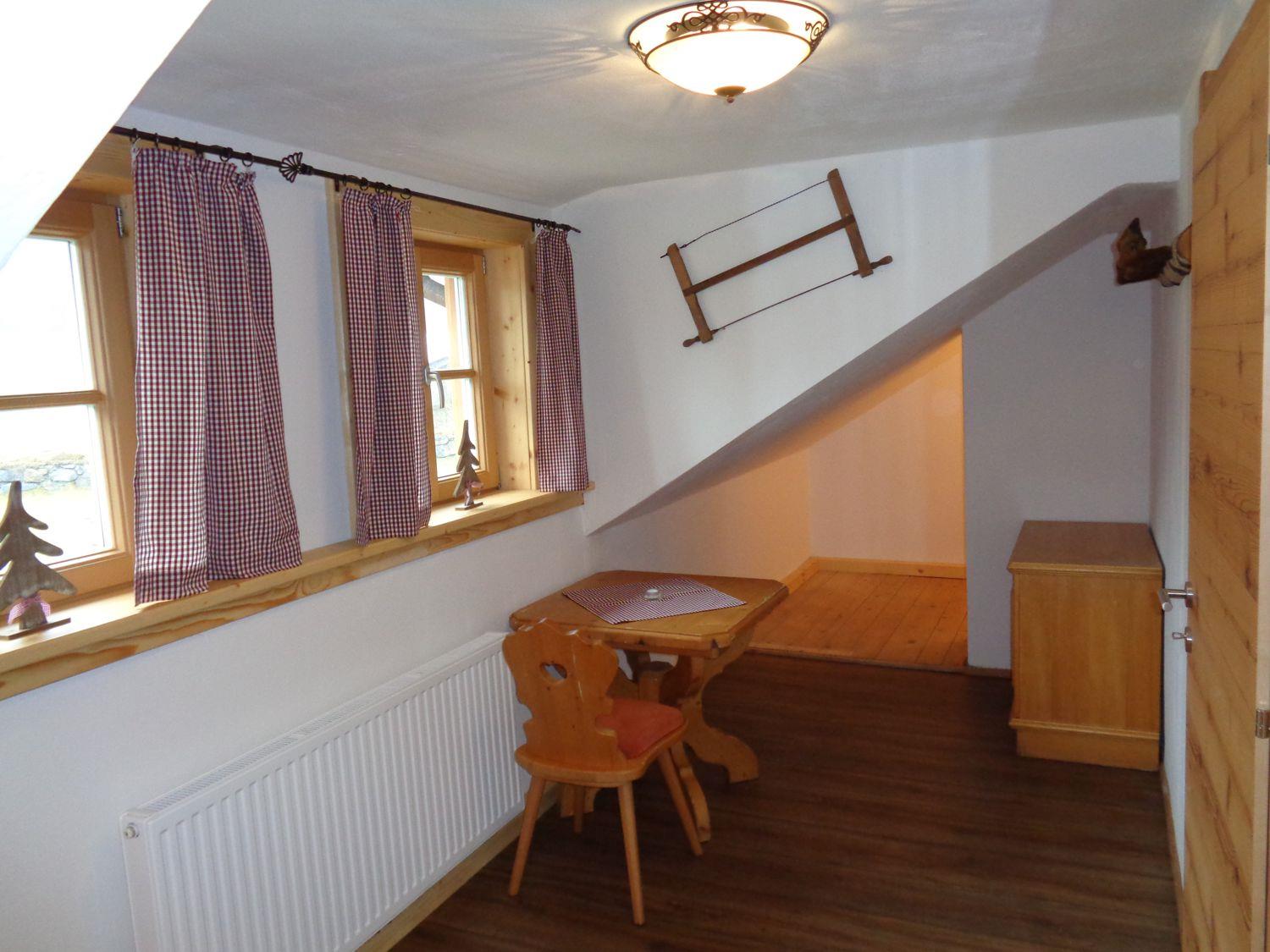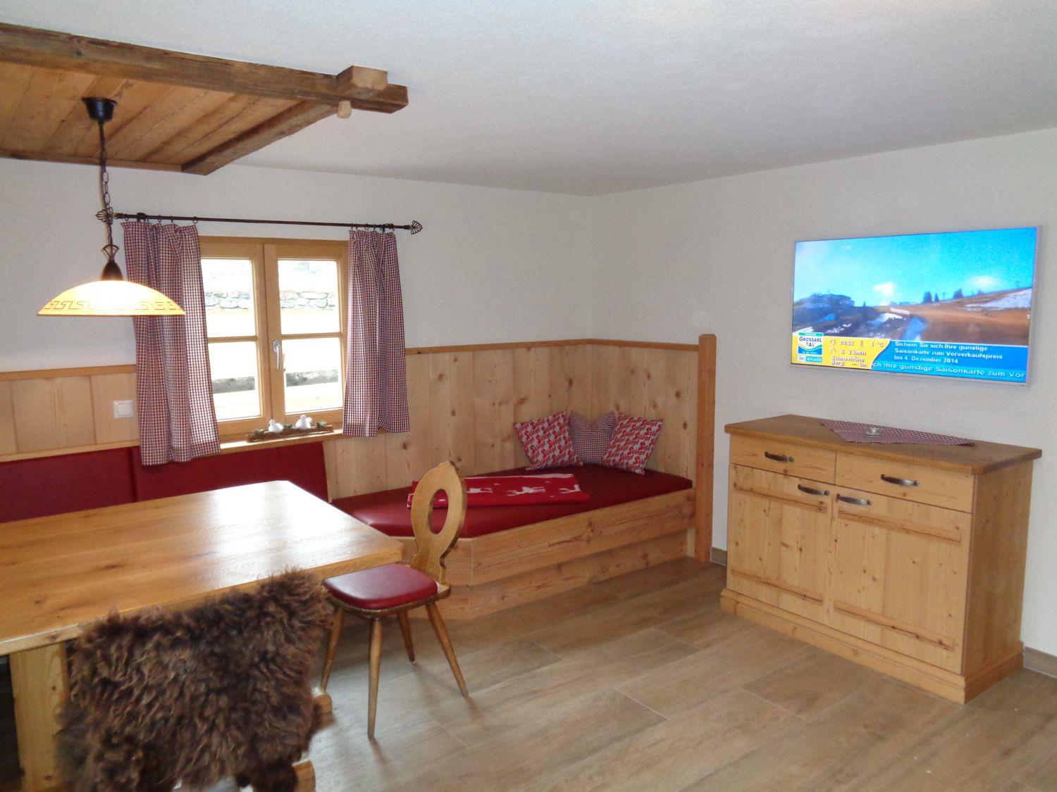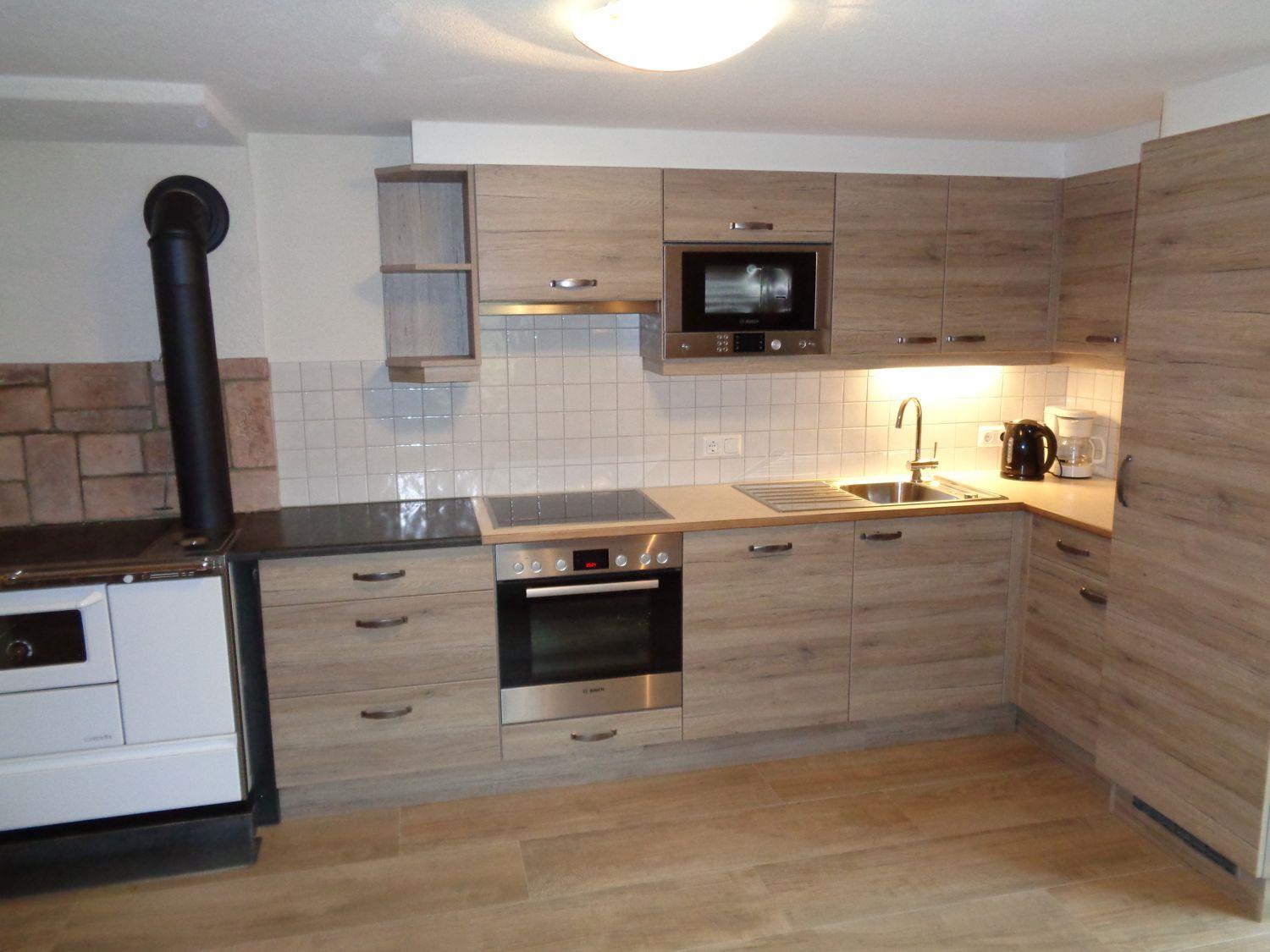 Voll ausgestattete Wohnküche mit Holzherd, Wohnbereich mit ausziehbarem Sofa, fünf Schlafzimmer (3 Doppel-, 1 Dreibett-, 1 Einzelzimmer) und zwei Bäder mit WC.