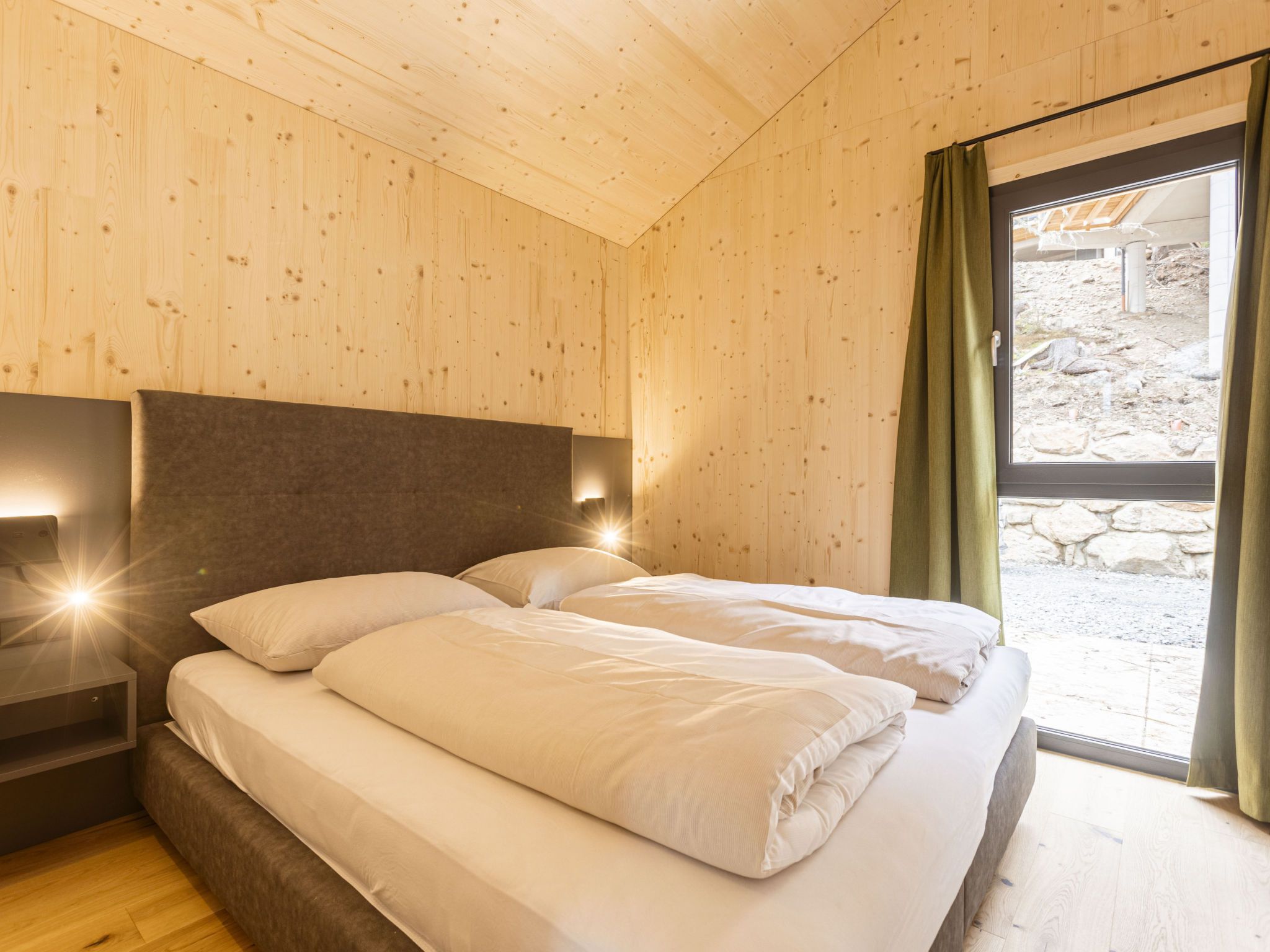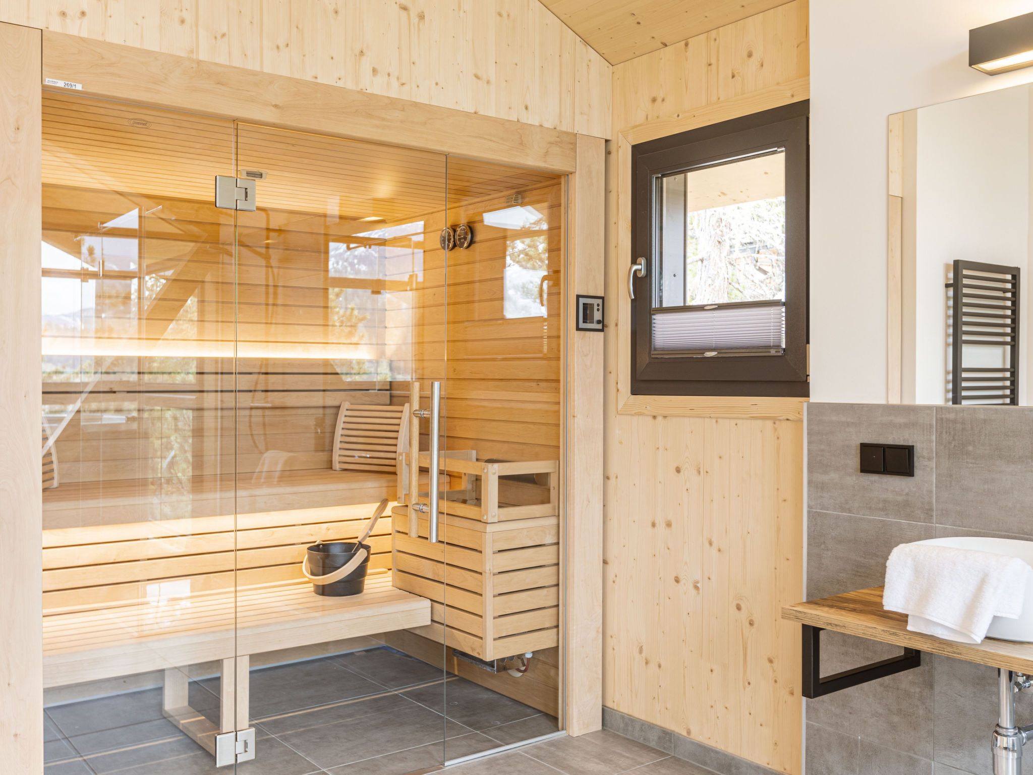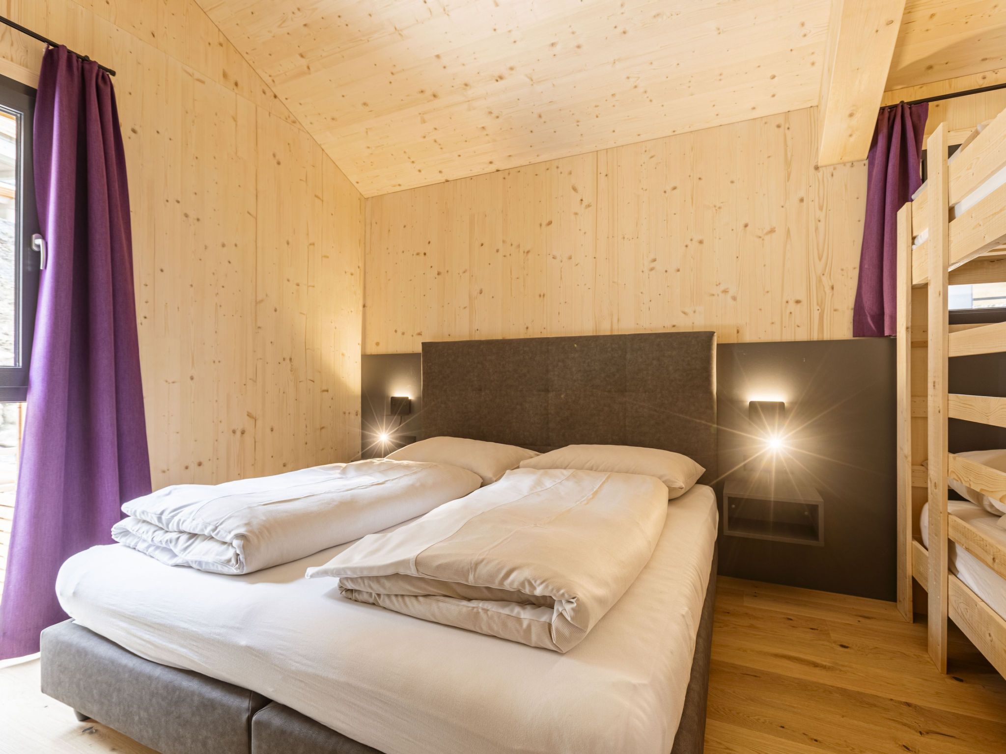 Superior 17 mit Sauna & Hot Tub, 5-Zimmer-Chalet 135 m2 auf 3 Stockwerken. Modern und geschmackvoll eingerichtet: Wohnzimmer mit Esstisch und Sat-TV (Flachbildschirm). 2 Doppelzimmer, jedes Zimmer mit Dusche/WC. 2 Doppelzimmer. Offene Küche (Backofen, Geschirrspüler, 4 Glaskeramikplatten, Toaster, Wasserkocher, Mikrowelle, elektrische Kaffeemaschine). Dusche/WC, Sauna. Heizung. Balkon Terrasse. Terrassenmöbel. Schöne Sicht auf die Landschaft. Zur Verfügung: Haartrockner. Internet (Wireless LAN, gratis). Bitte beachten: Nichtraucher-Unterkunft. Das Chalet verfügt über ein Hot-Tub auf der Terrasse (ohne Sprudelfunktion).