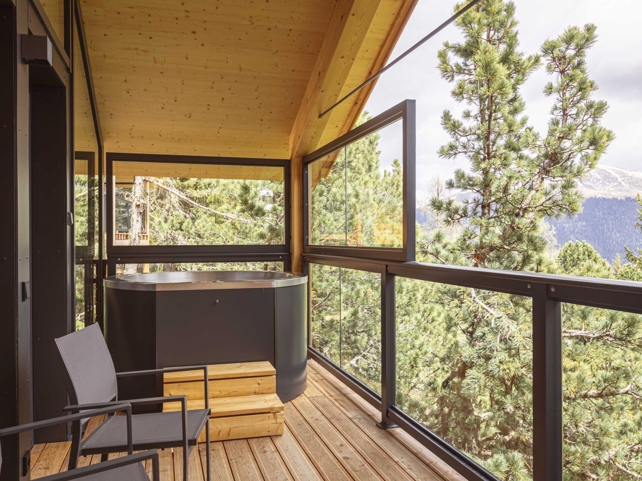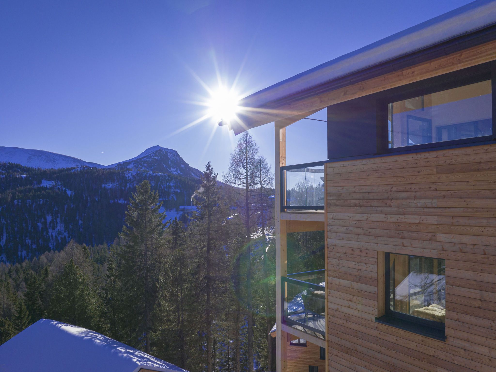 Turracher Höhe: Moderne, komfortable Ferienanlage Naturchalets Turracher Höhe by Alps, 1'700 m.ü.M.. 10 km vom Zentrum von Ebene Reichenau, ruhige, sonnige Lage am Hang, 2 km vom Skigebiet. Im Winter bitte Schneeketten mitbringen. Parkplatz beim Haus. Supermarkt 8 km, Bushaltestelle Predlitz 20 km, Bahnstation Predlitz 20 km. Skisportanlagen 2 km, Skiverleih 2 km, Skischule 2 km, Langlaufloipe 2 km. Bekannte Skigebiete sind gut erreichbar: Turracher Höhe.