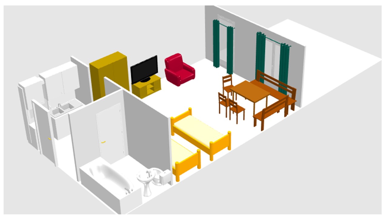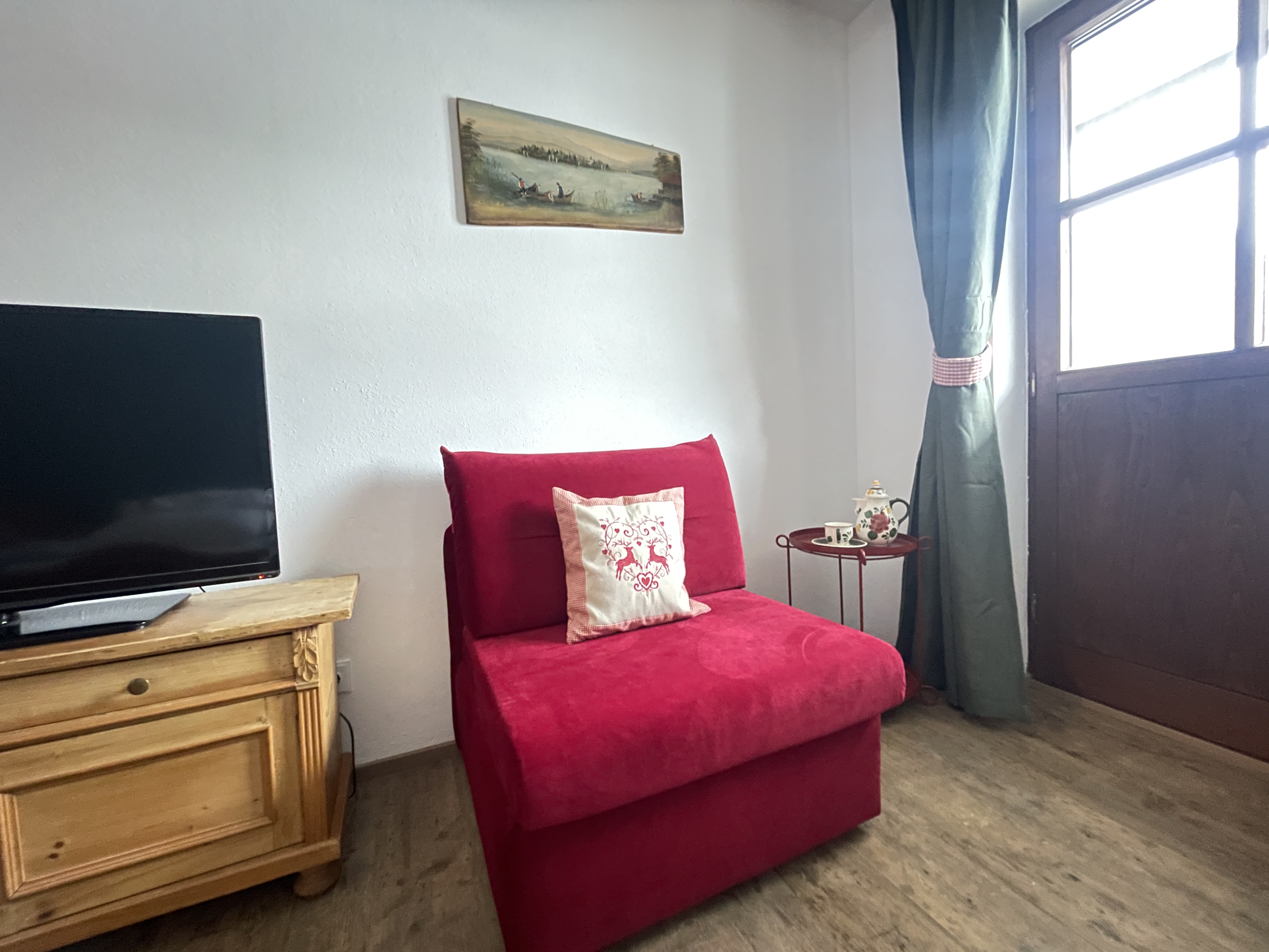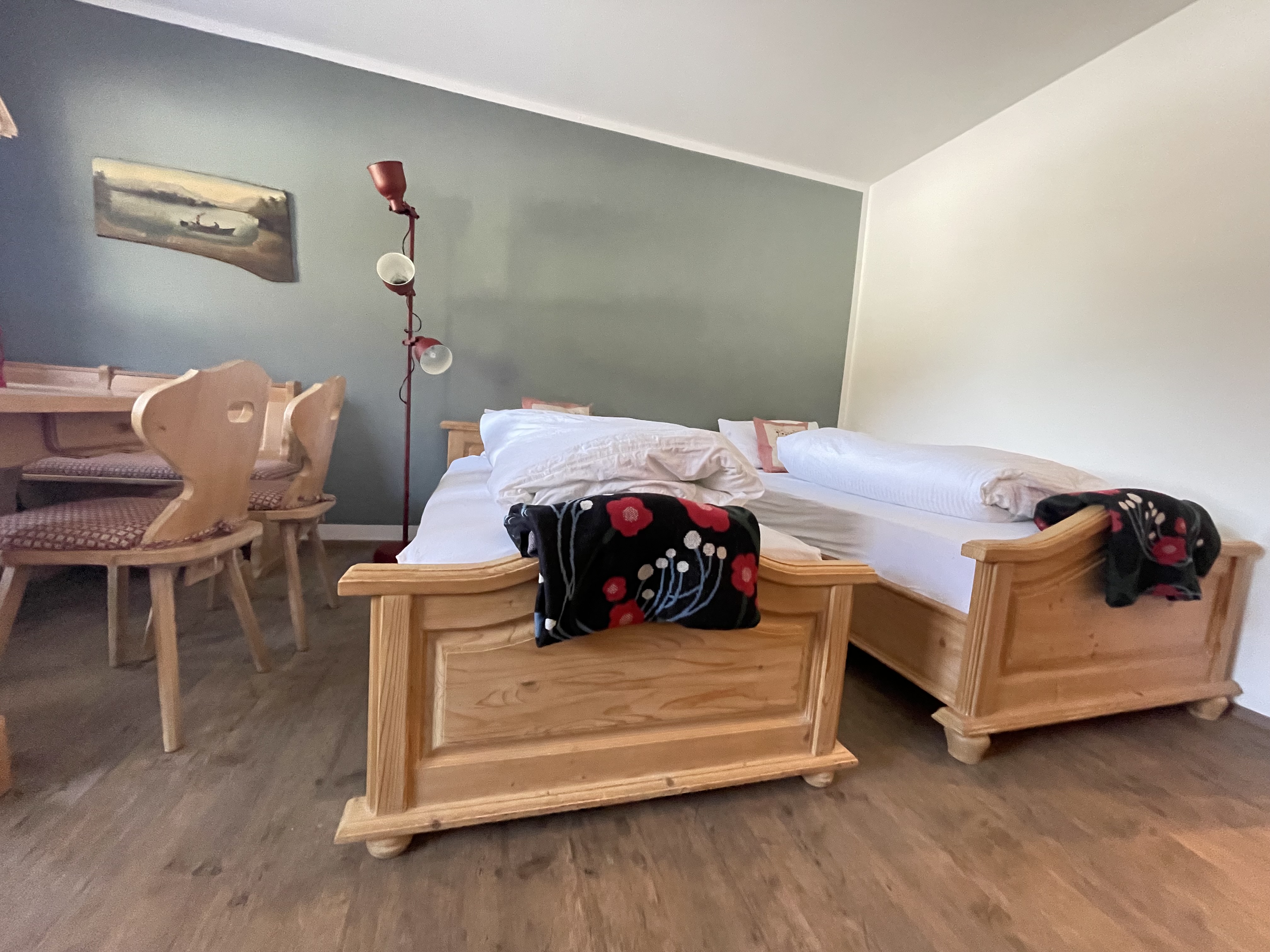 Der großzügige Wohn- und Schlafraum ist mit zwei Einzelbetten (90x200cm, 100x200cm), einem ausziehbaren Schlafsessel (80x195cm, empfohlen für leichte Personen), einem Kleiderschrank und einem Esstisch mit Eckbank (bis zu 6 Personen) ausgestattet. Badezimmer mit Dusch-/Badewanne, WC, Fön. Bettwäsche und Handtücher vorhanden. Kostenloses WLAN ist im gesamten Haus verfügbar. Keine Haustiere erlaubt.