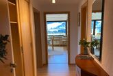 Die gesamte, neu renovierte Wohnung ist an drei Seiten von einem umlaufenden Balkon umgeben, der von Küche, Wohnzimmer und Schlafzimmer zugänglich ist und einen fantastischen Blick auf das Bergpanorama bietet.